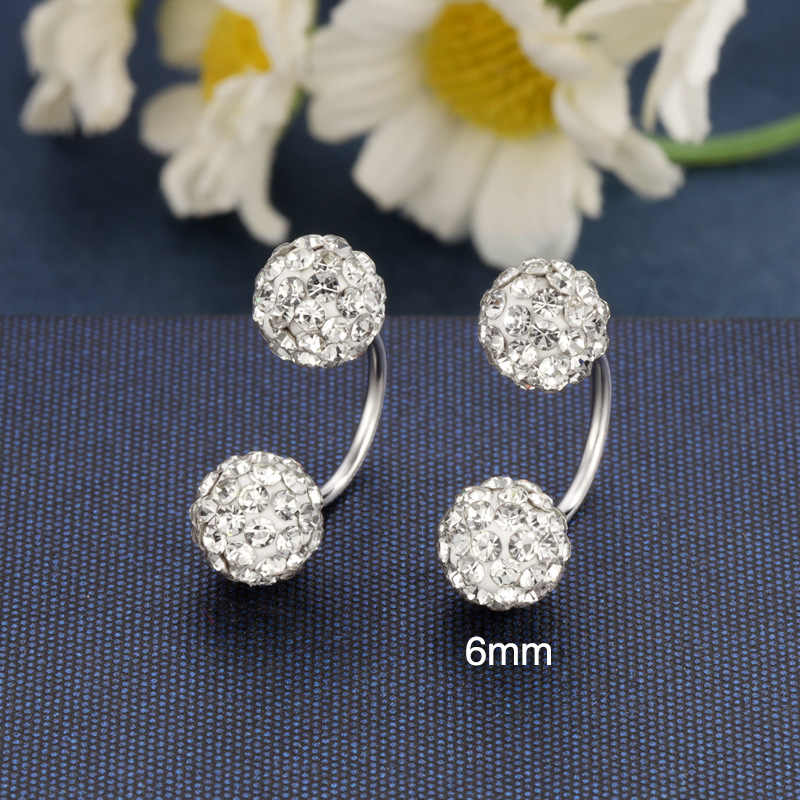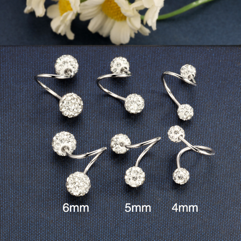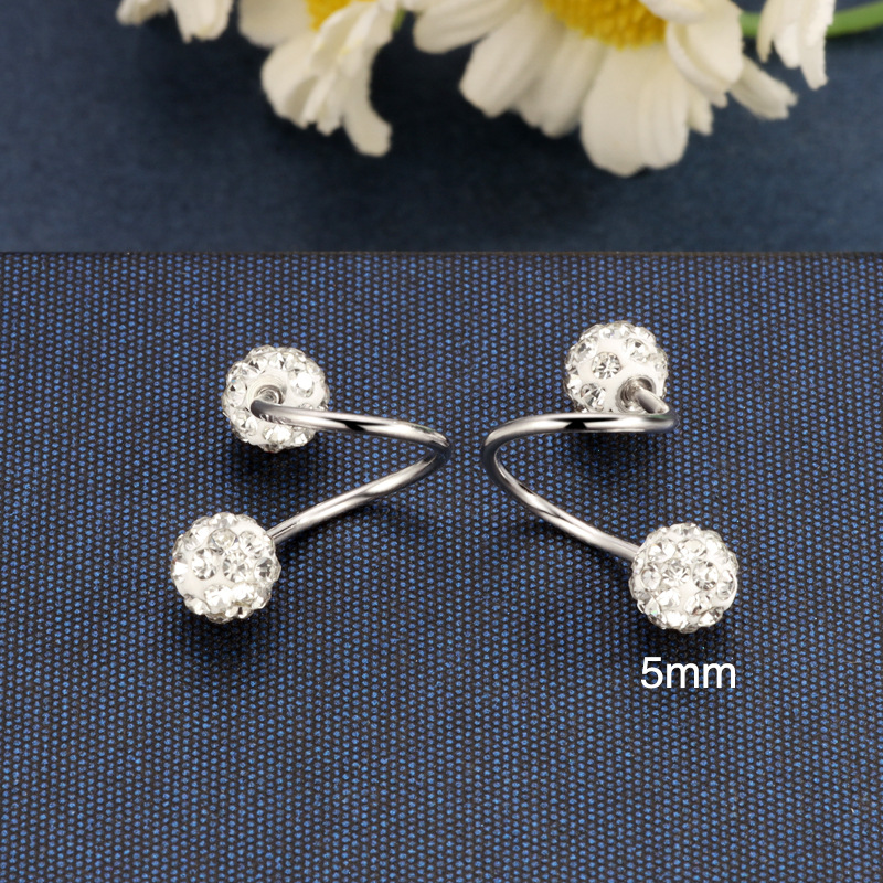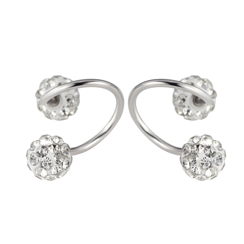 契爱S925银S形钻球螺丝耳钉香巴拉满钻C形耳环高级感圆球耳饰跨境