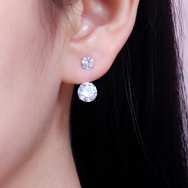 契爱 S925银韩版双锆石耳钉轻奢后挂式水晶耳环超仙双戴耳饰跨境