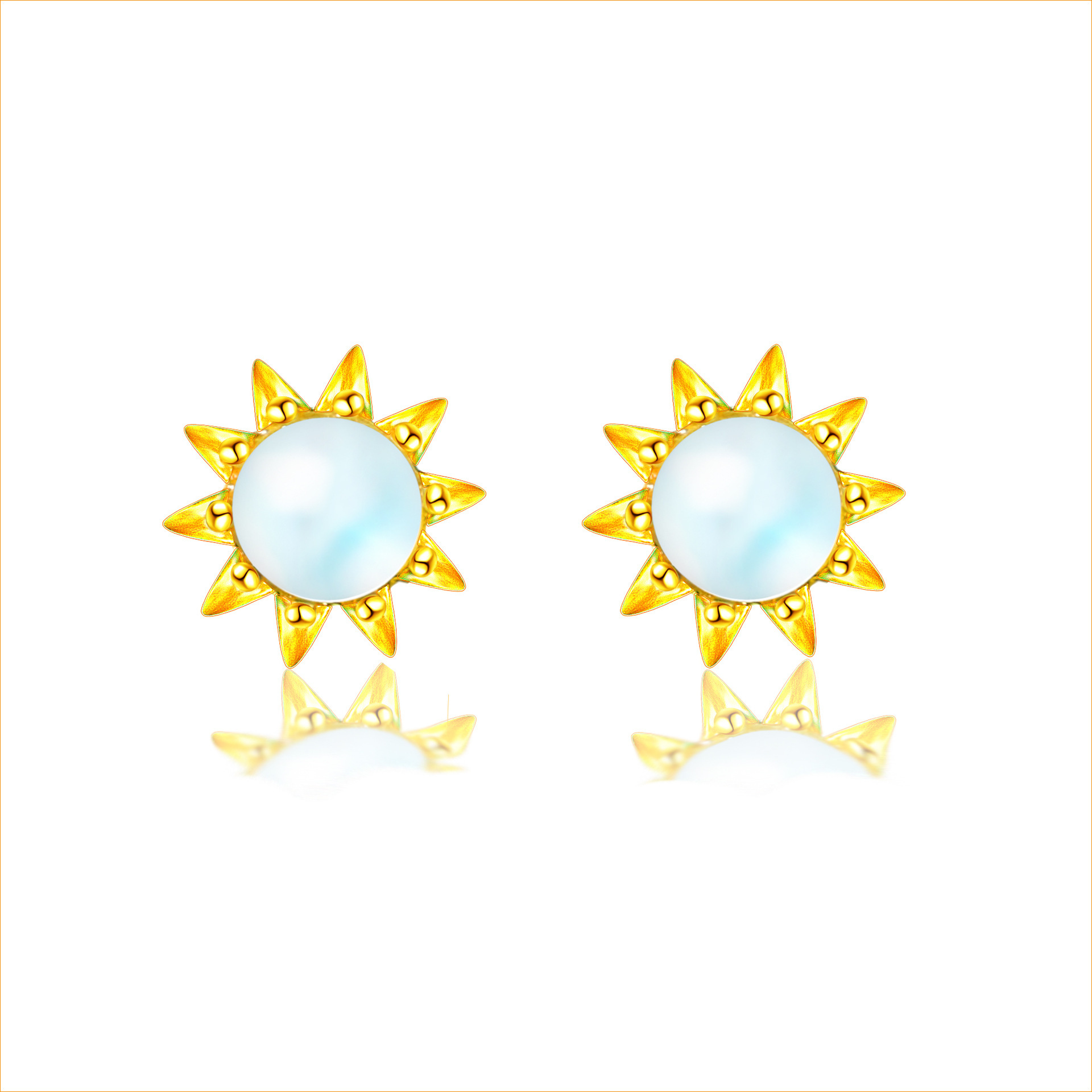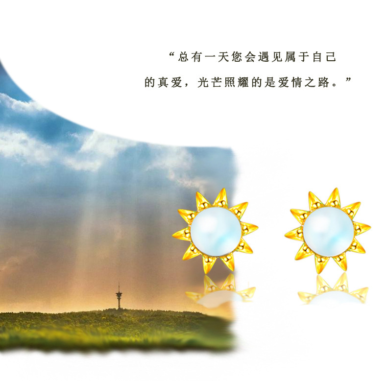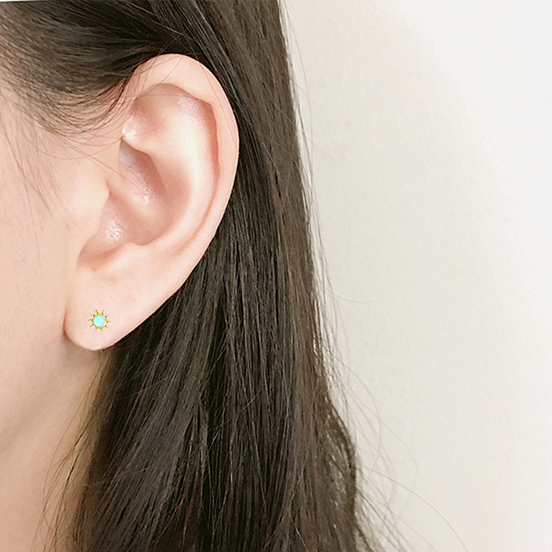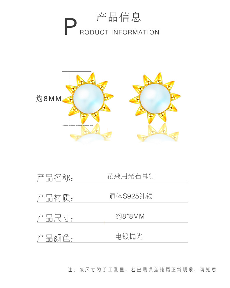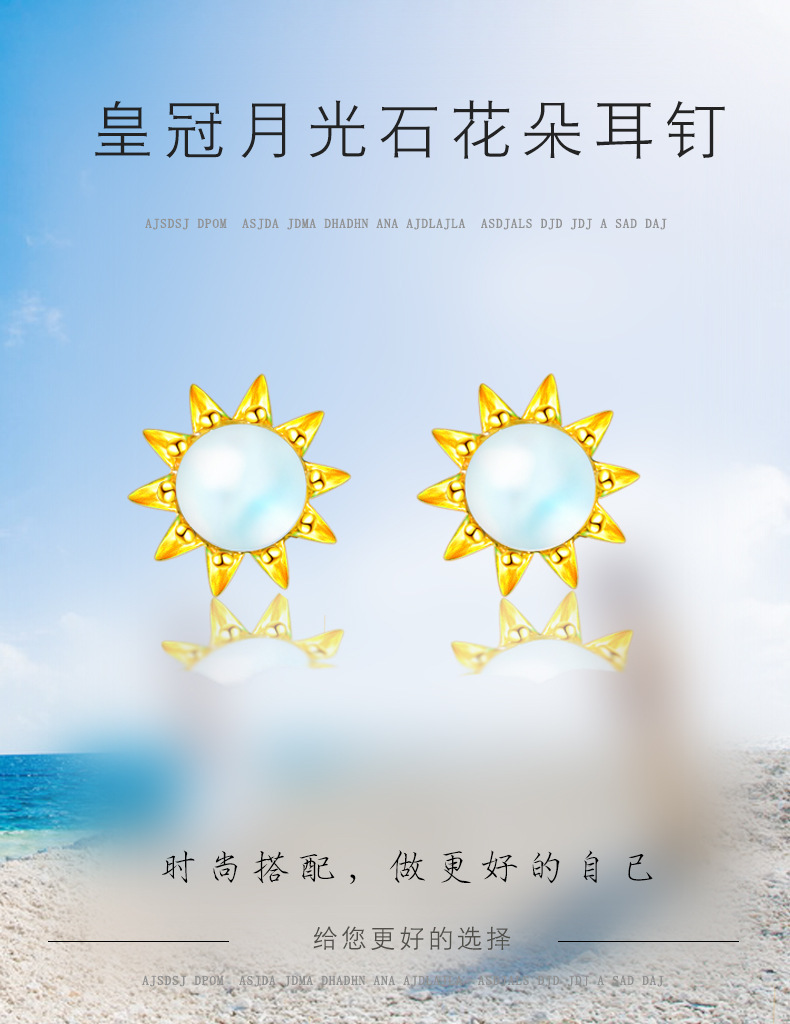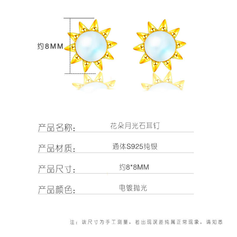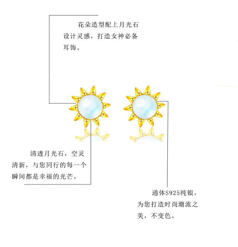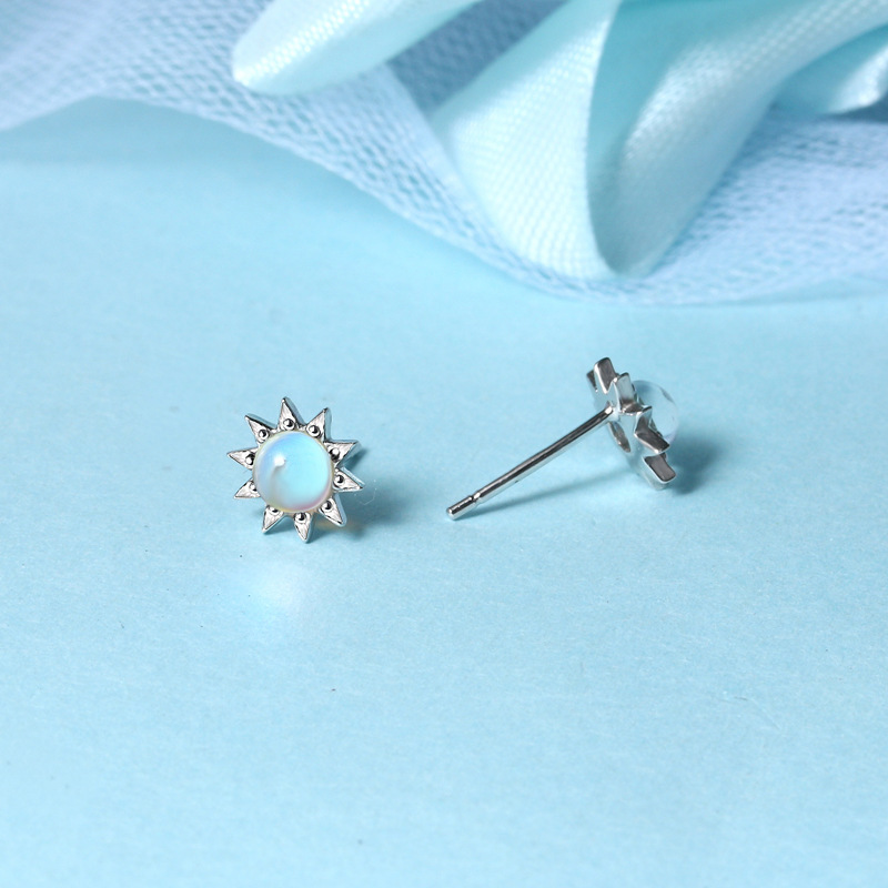 契爱 S925银月光石太阳花耳钉韩版气质皇冠耳环渐变蓝光花朵耳饰
