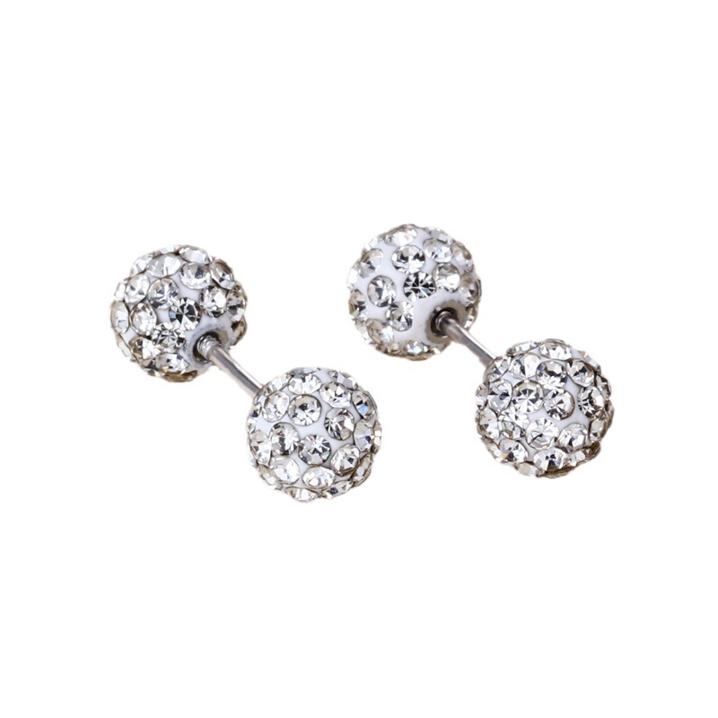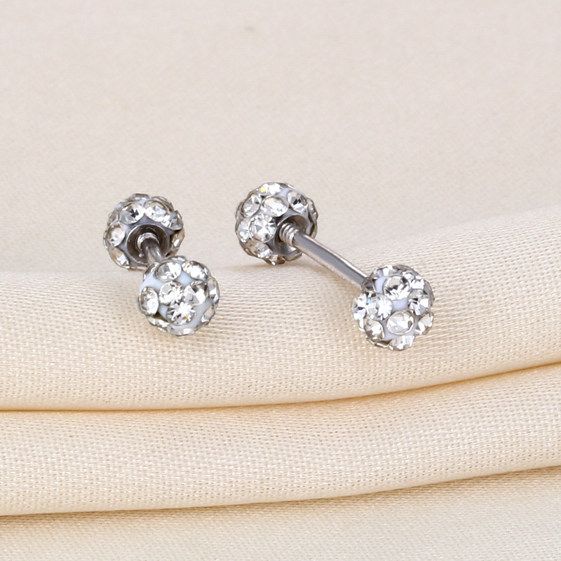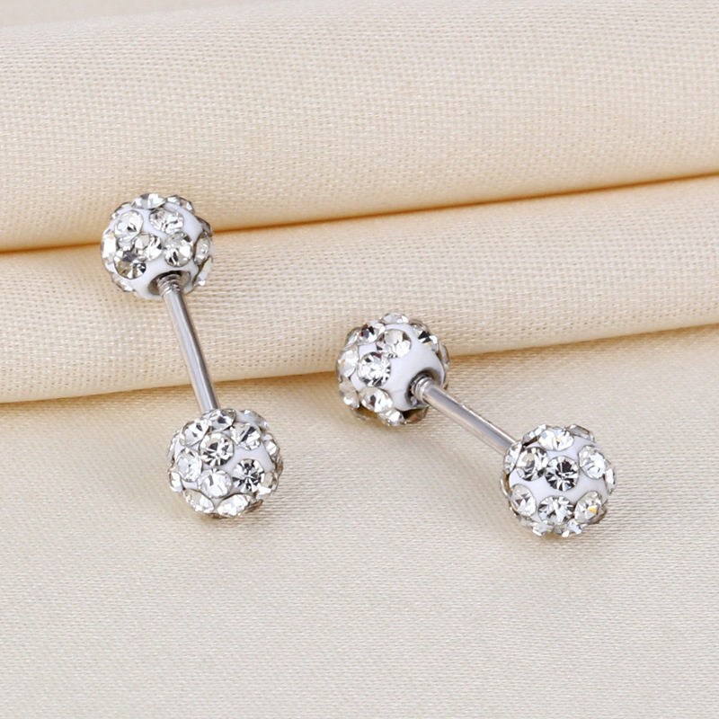 契爱 S925银钻球耳钉香巴拉满钻耳环螺纹设计感哑铃耳骨钉跨境