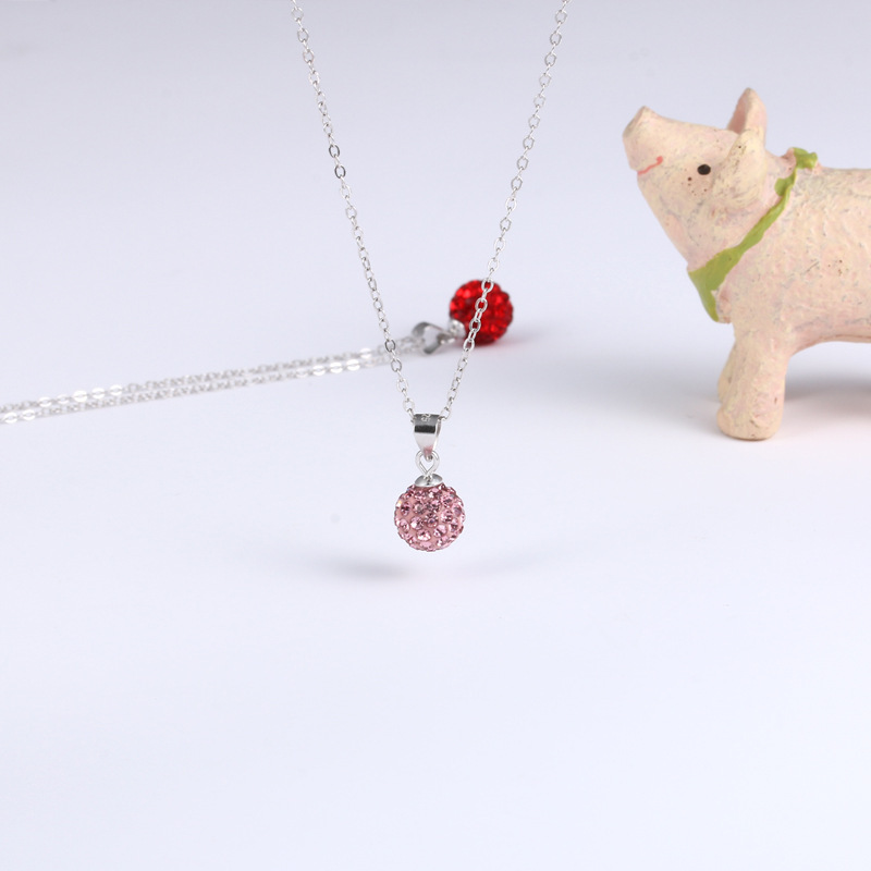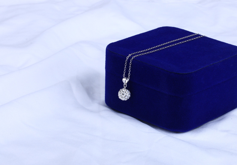 契爱 S925银香巴拉钻球吊坠水晶球满钻森系项坠锁骨项链饰品批发