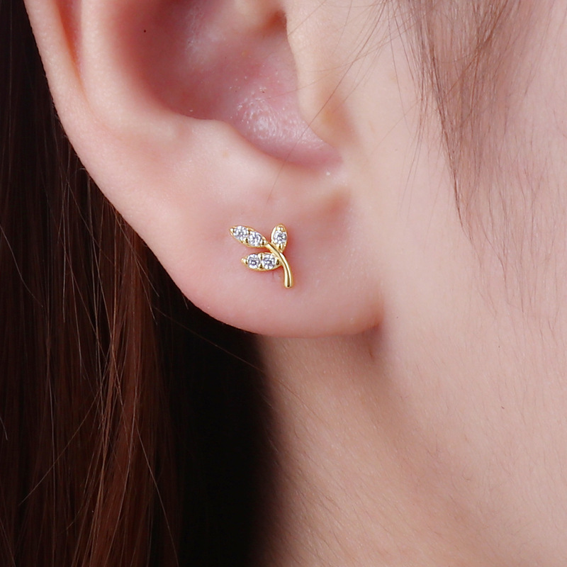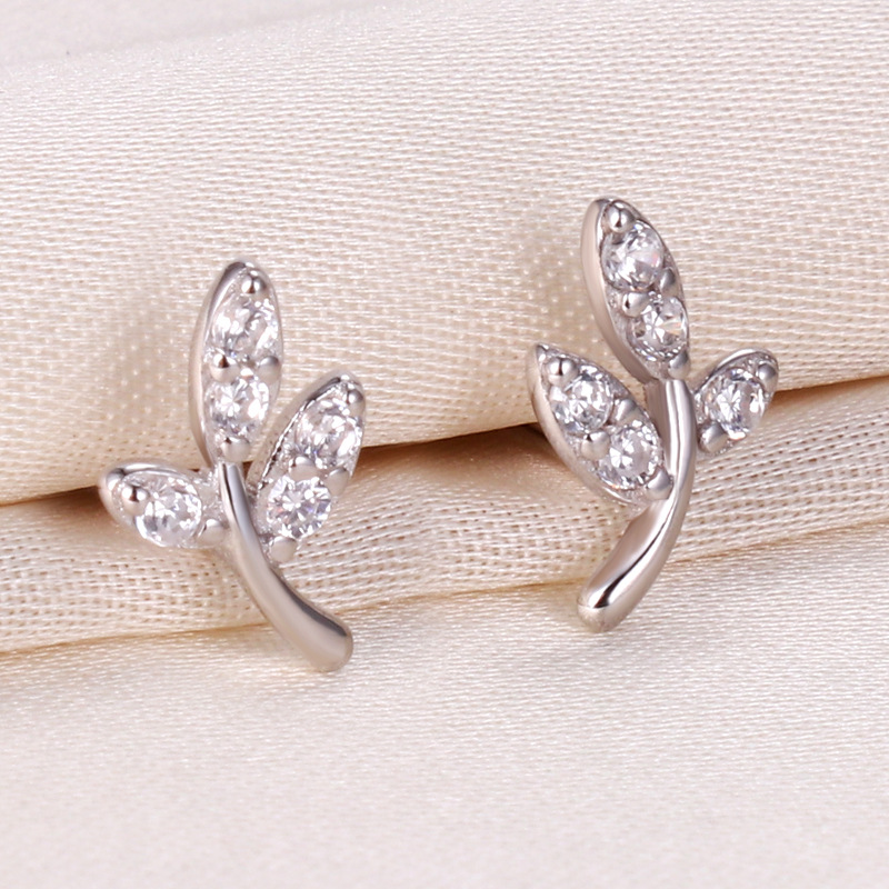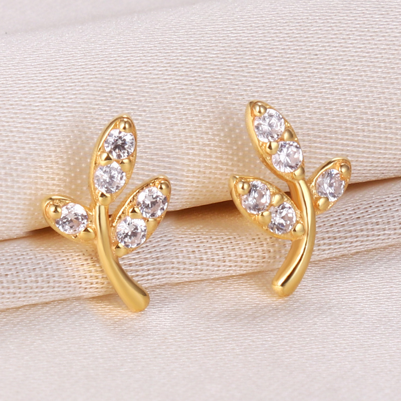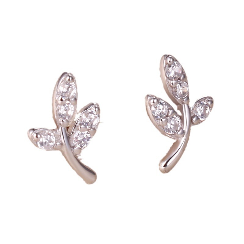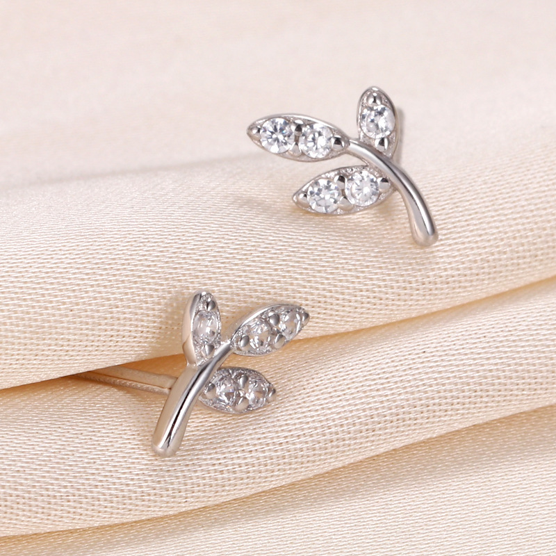 契爱 S925银新款嫩芽叶子耳钉女 气质森系嫩叶镶钻耳饰轻奢风耳环