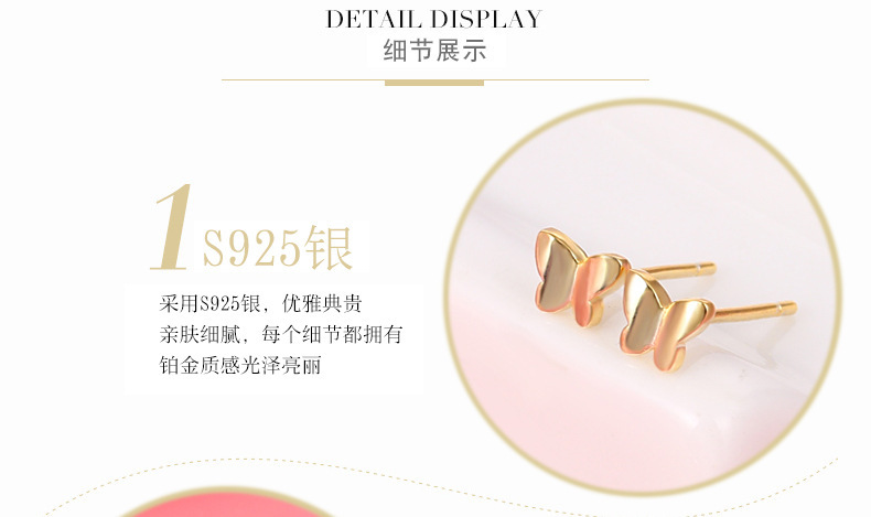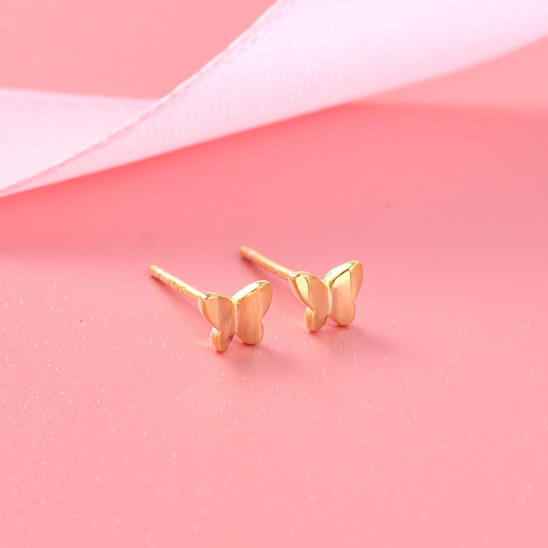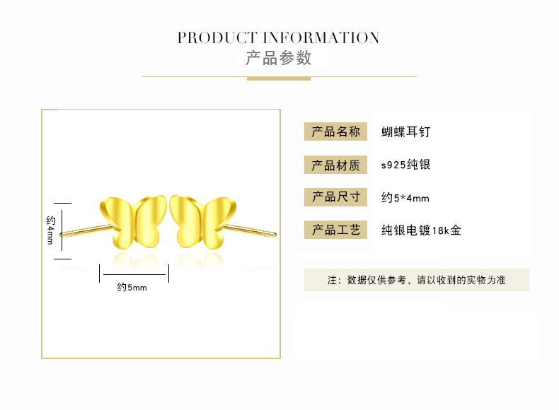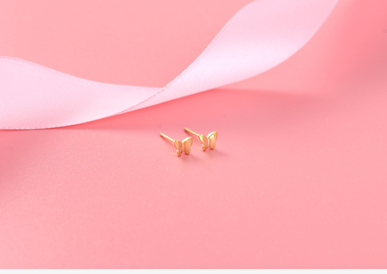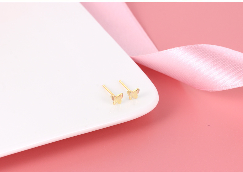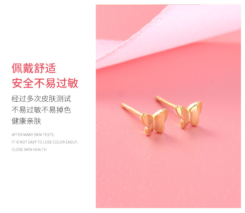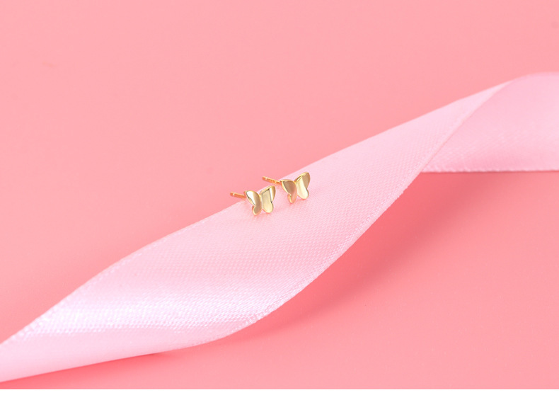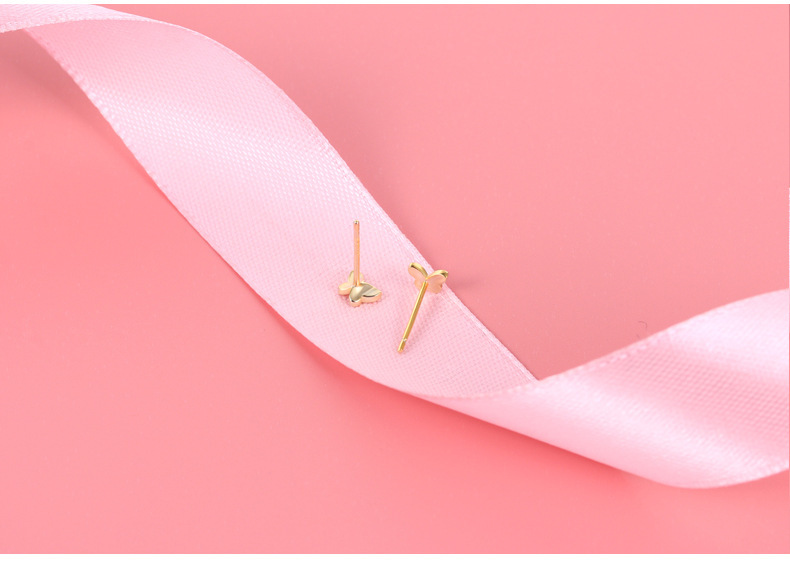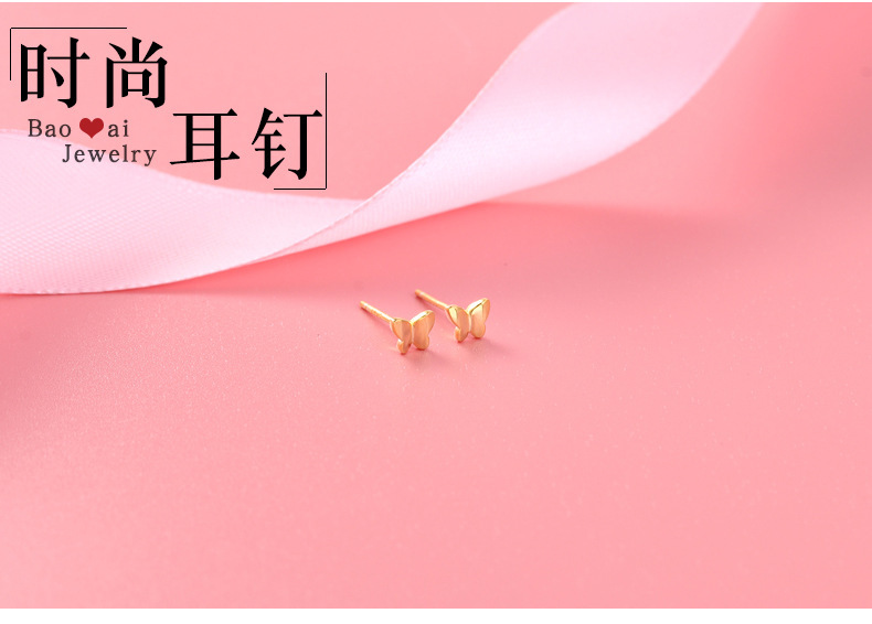 契爱 S925银蝴蝶耳钉甜美超仙设计感耳环小巧可爱蝴蝶结耳饰跨境