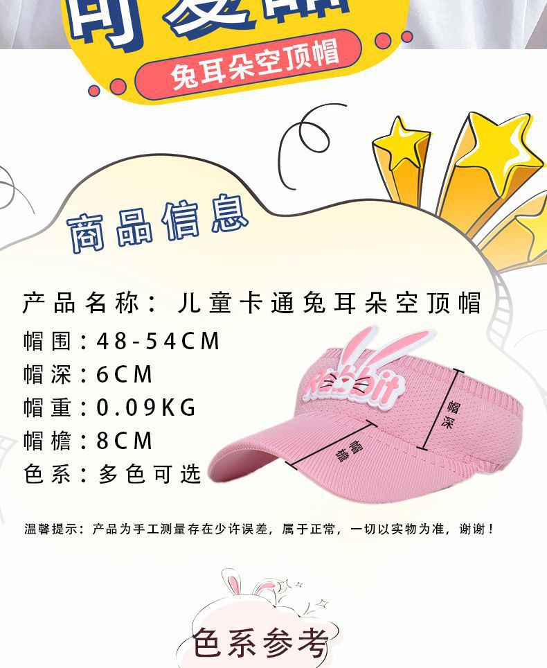 夏季儿童卡通可爱帽子男空顶遮阳帽夏宝宝户外防晒太阳帽女针织