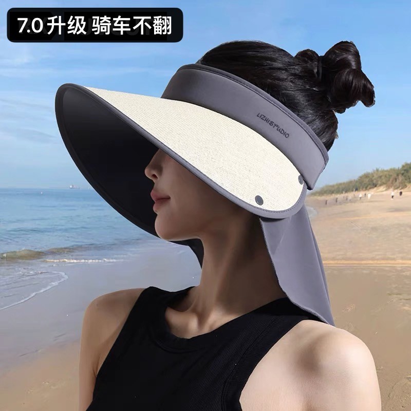 【5.0升级加大帽檐带护颈设计】可折叠防晒空顶帽女夏遮脸遮阳帽