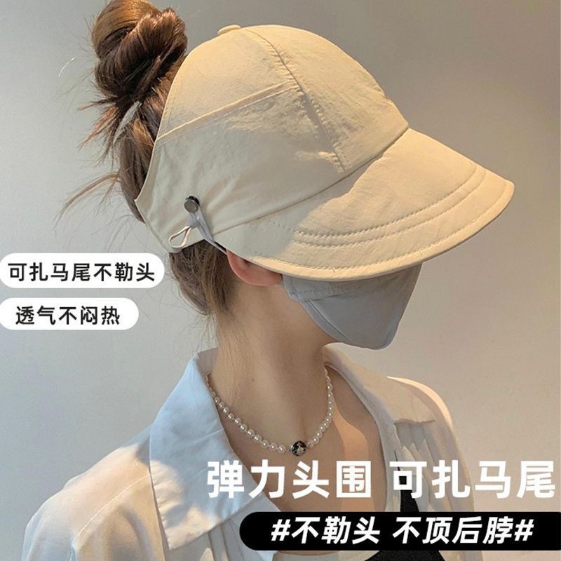 帽子薄款透气速干鸭舌帽可扎马尾防晒帽女空顶遮阳太阳帽休闲百搭