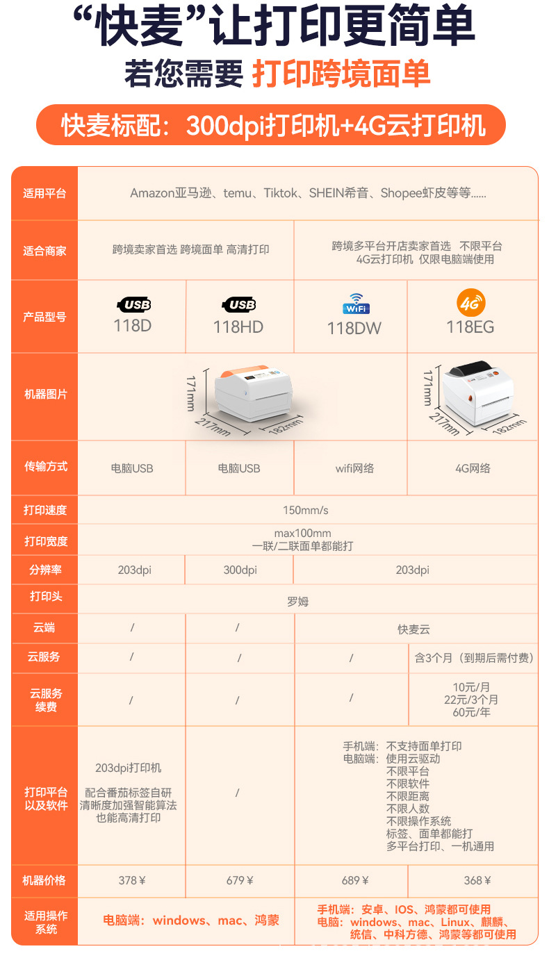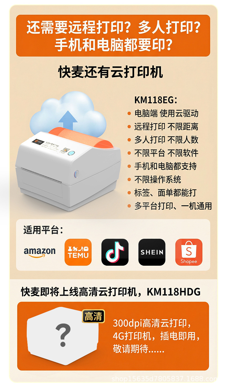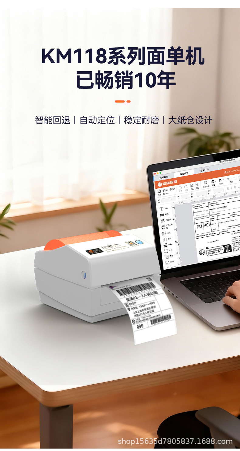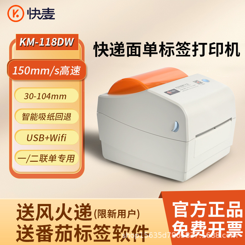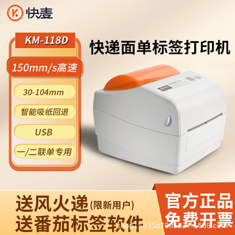 快麦KM118M /KM118/118D快递单打印机跨境快递电子面单标签打印机