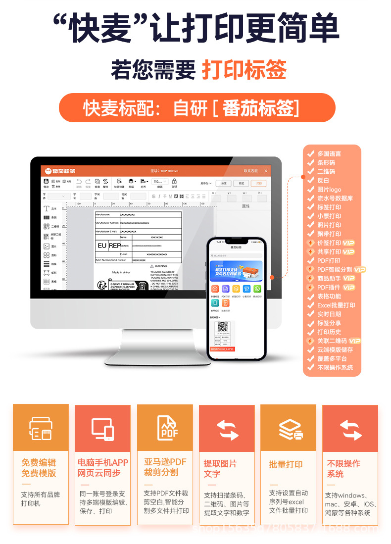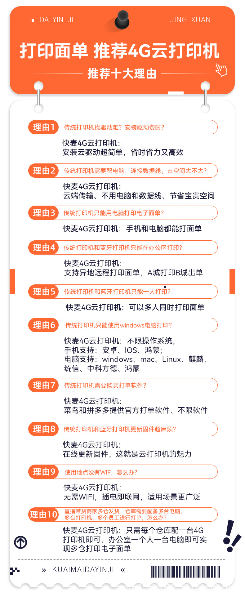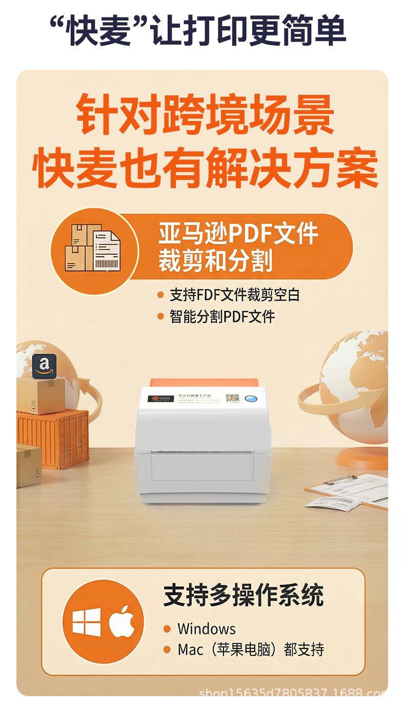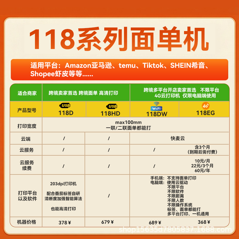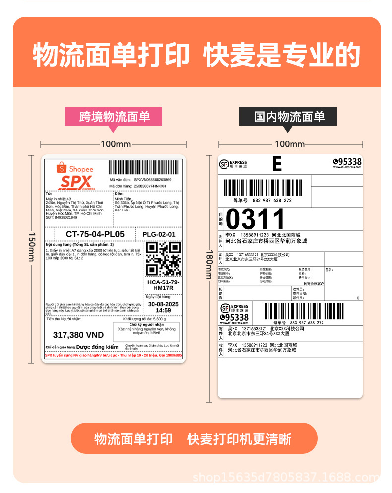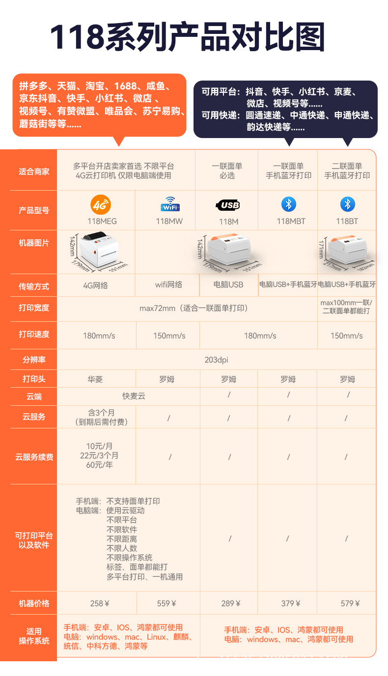 快麦KM118M /KM118/118D快递单打印机跨境快递电子面单标签打印机