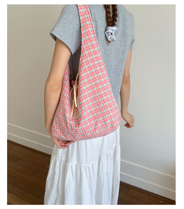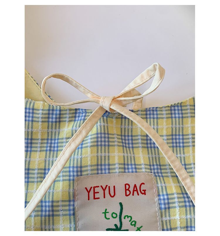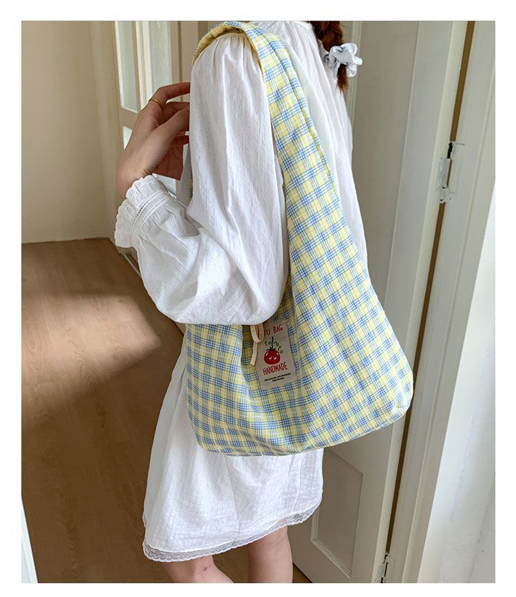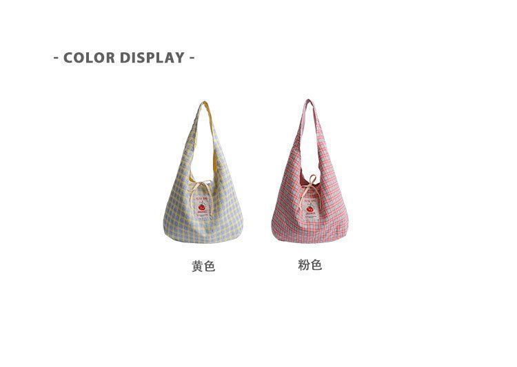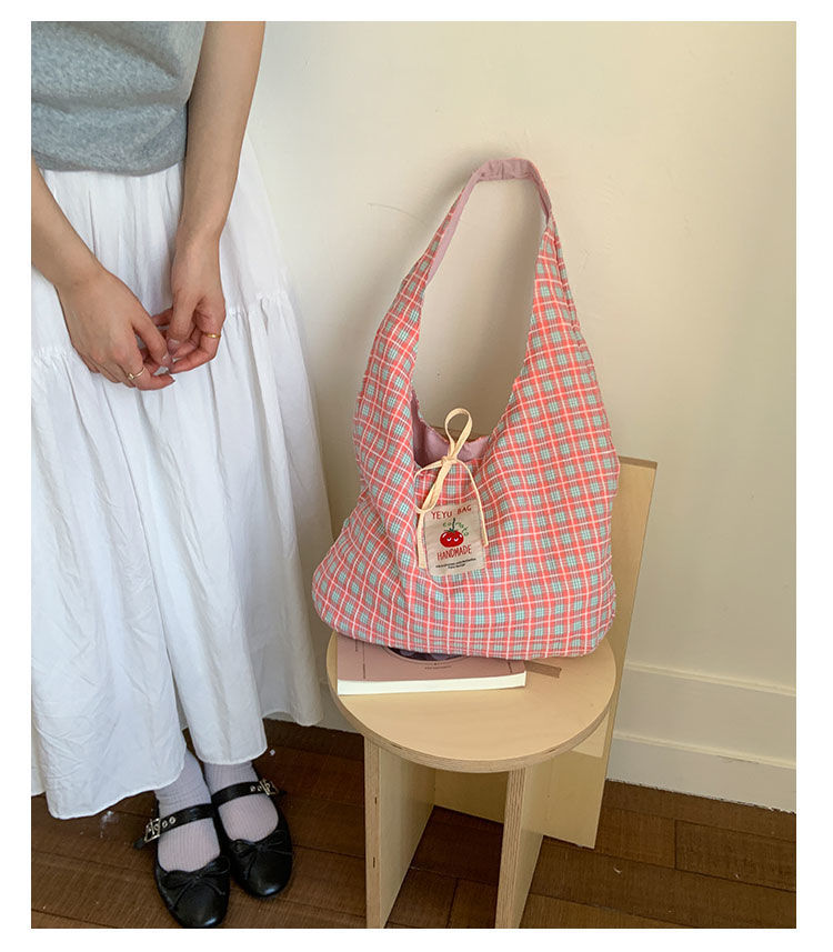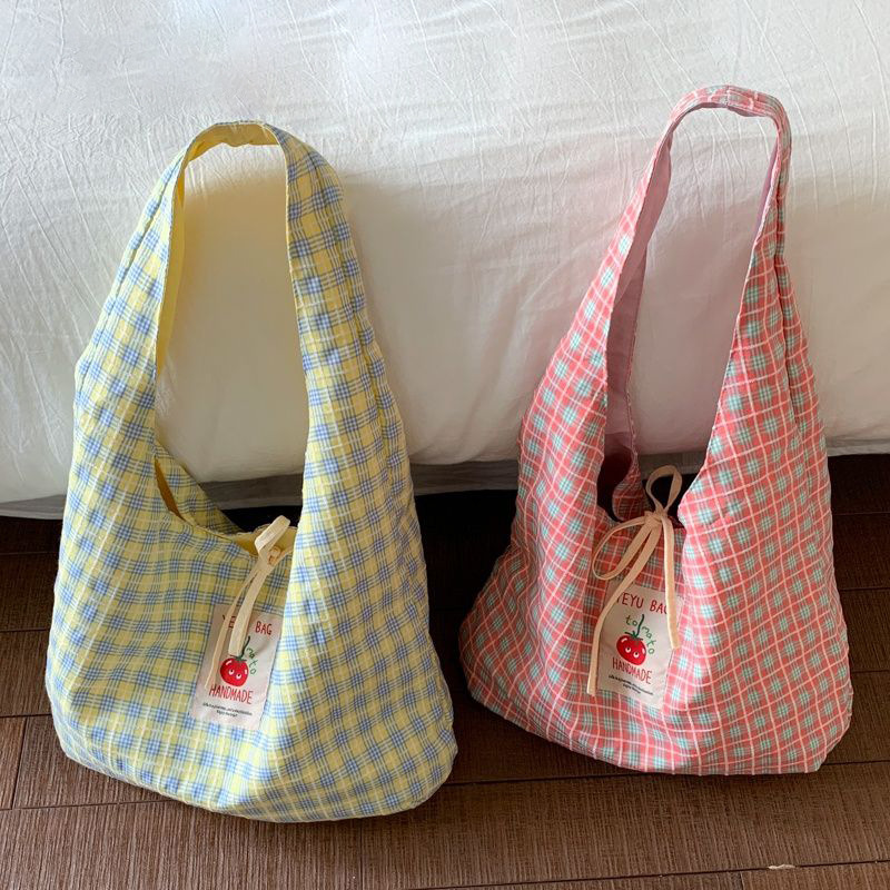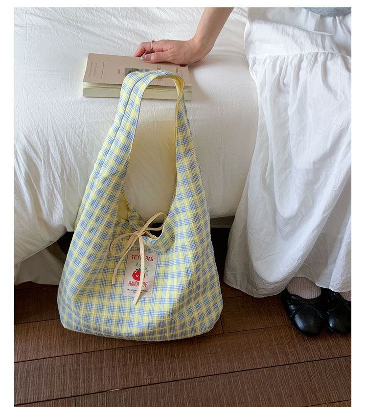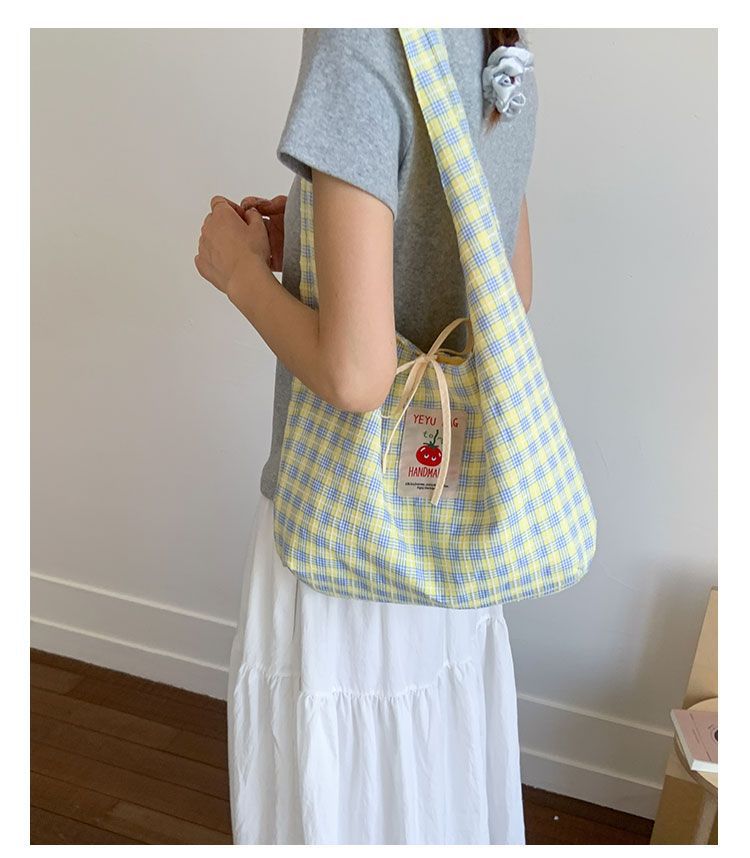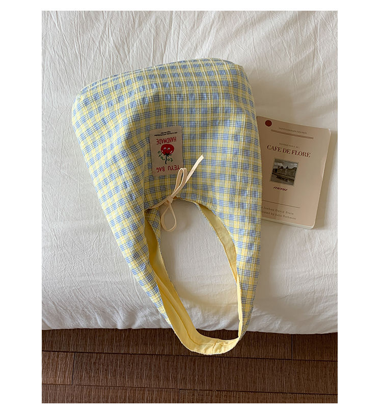 新款日系小清新格子时尚手提包学生大容量上课帆布包女便当包