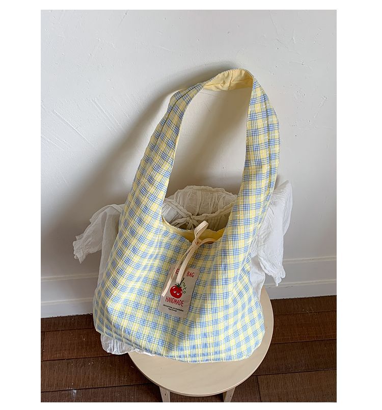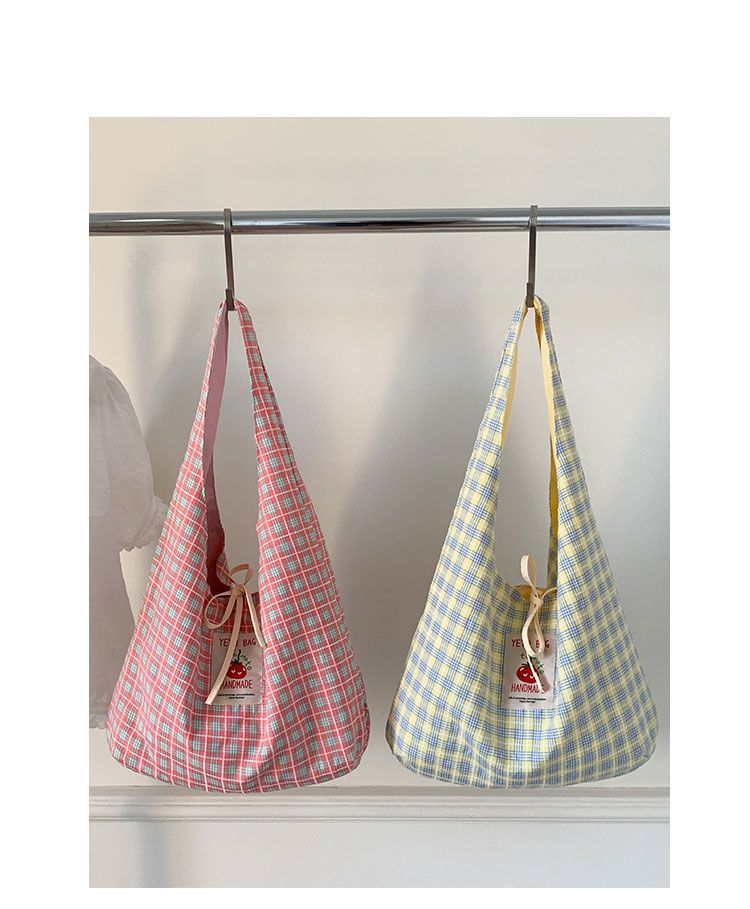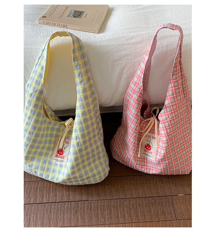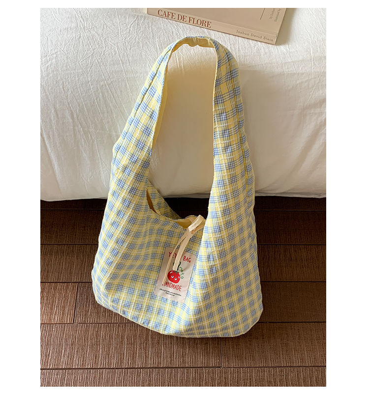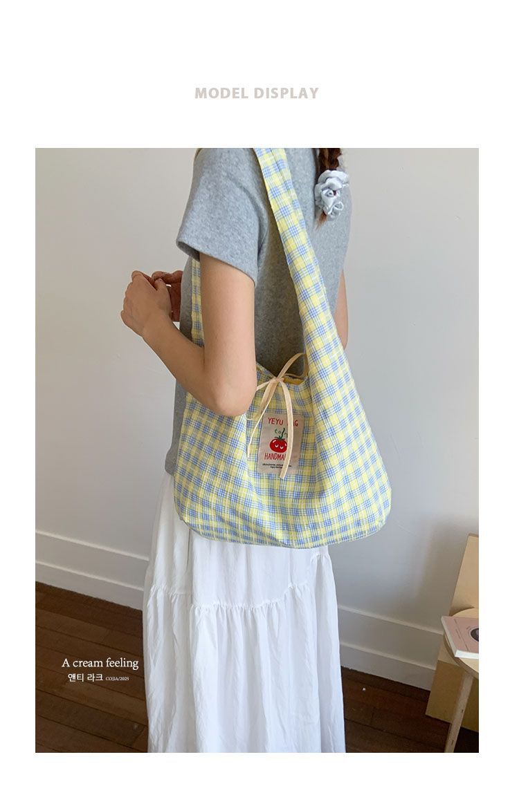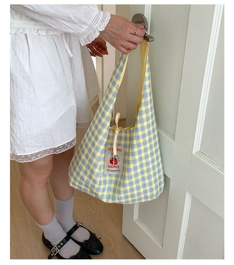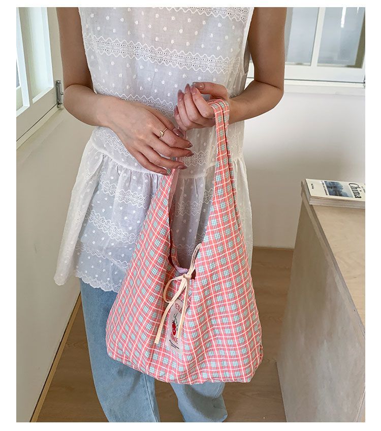 新款日系小清新格子时尚手提包学生大容量上课帆布包女便当包