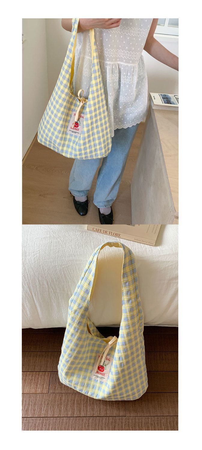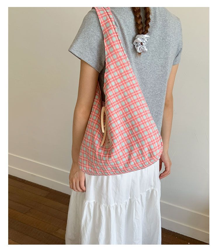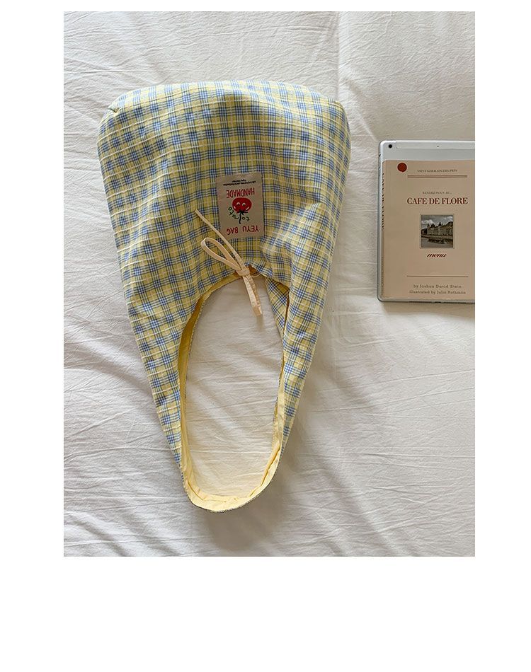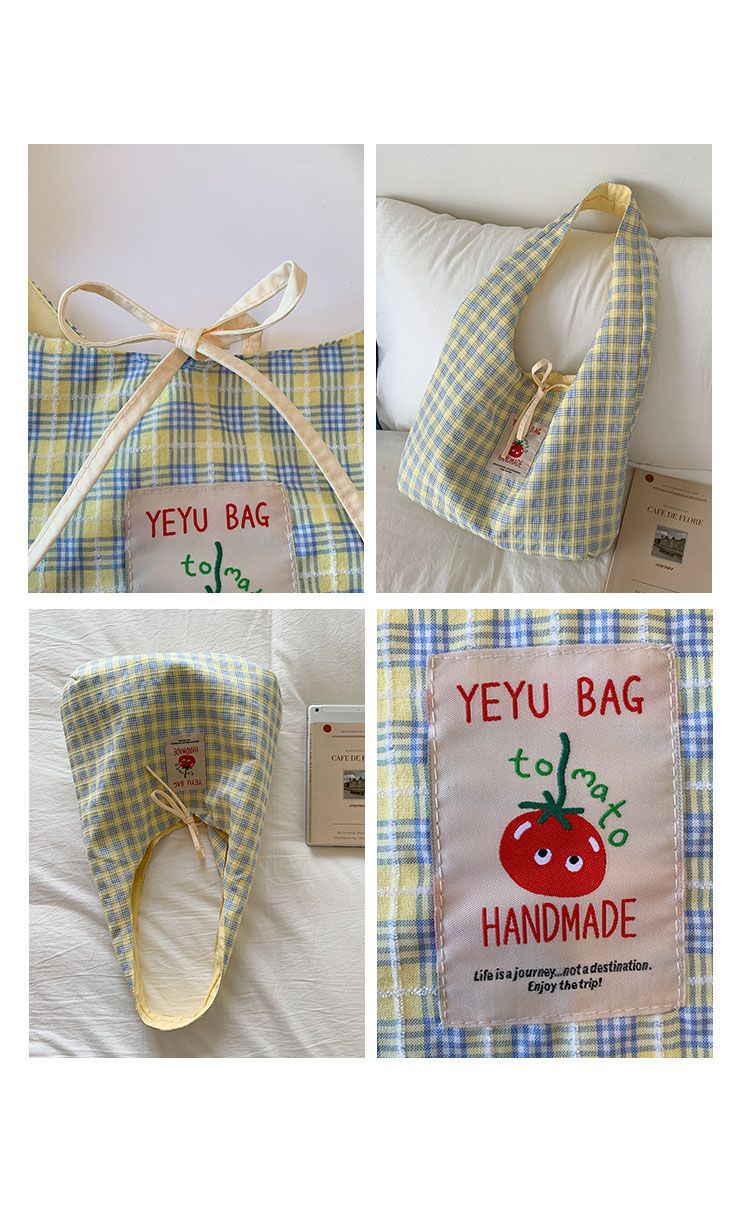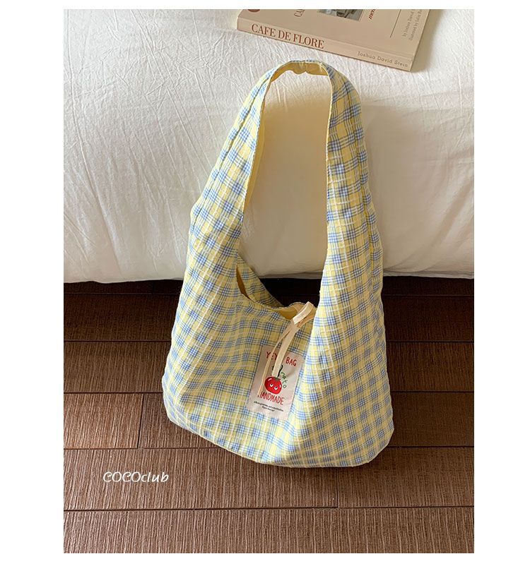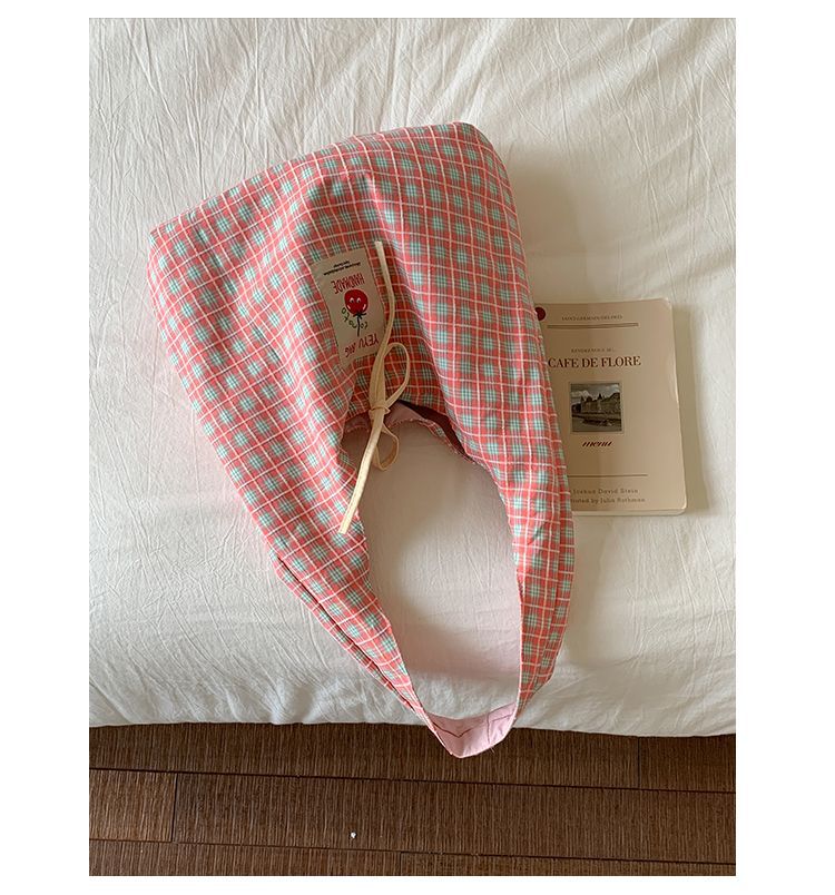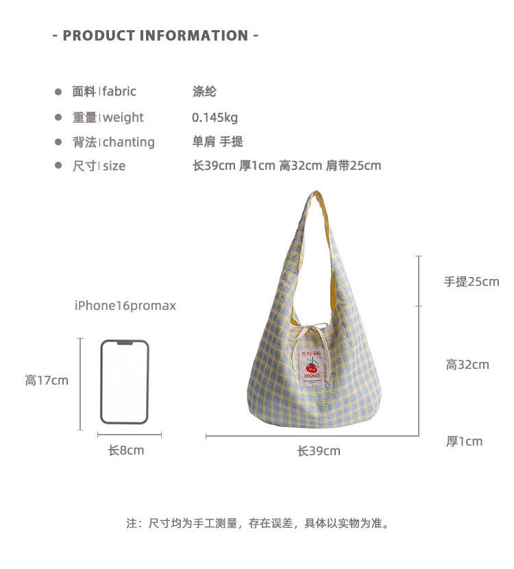 新款日系小清新格子时尚手提包学生大容量上课帆布包女便当包