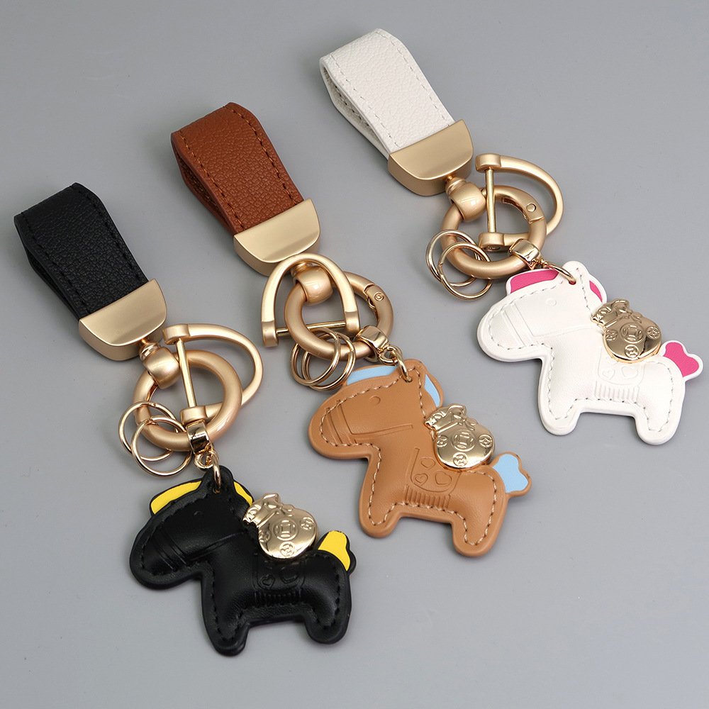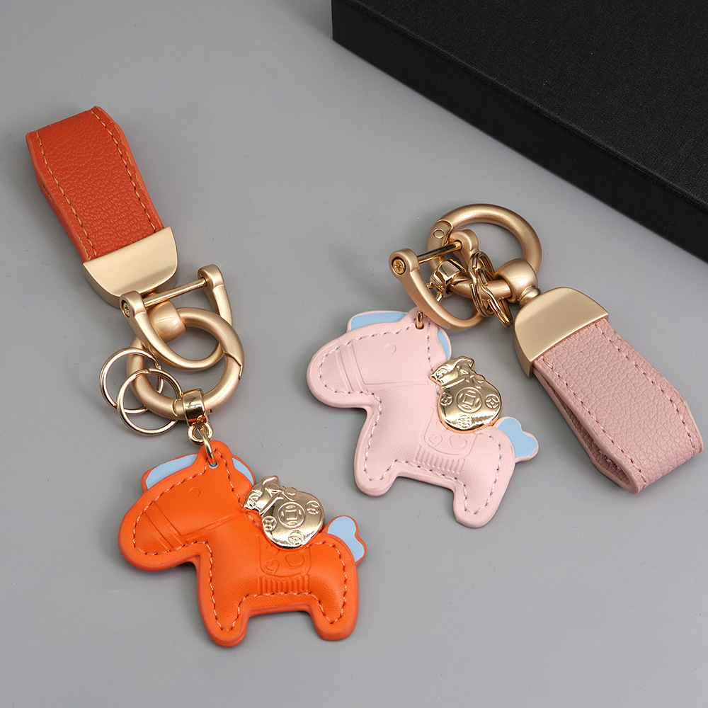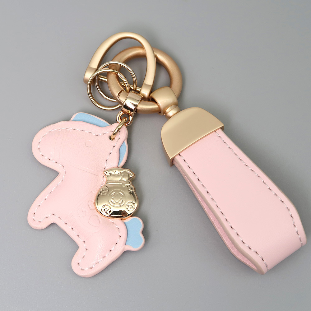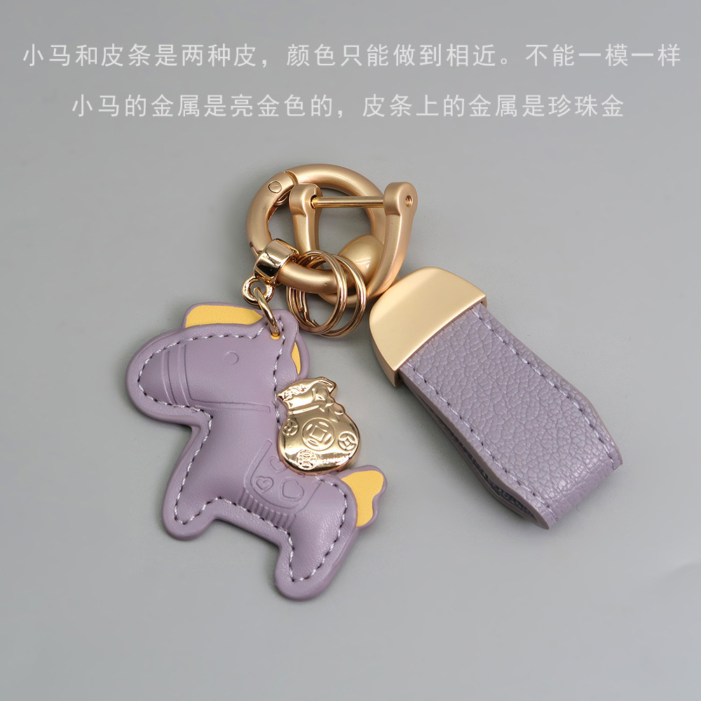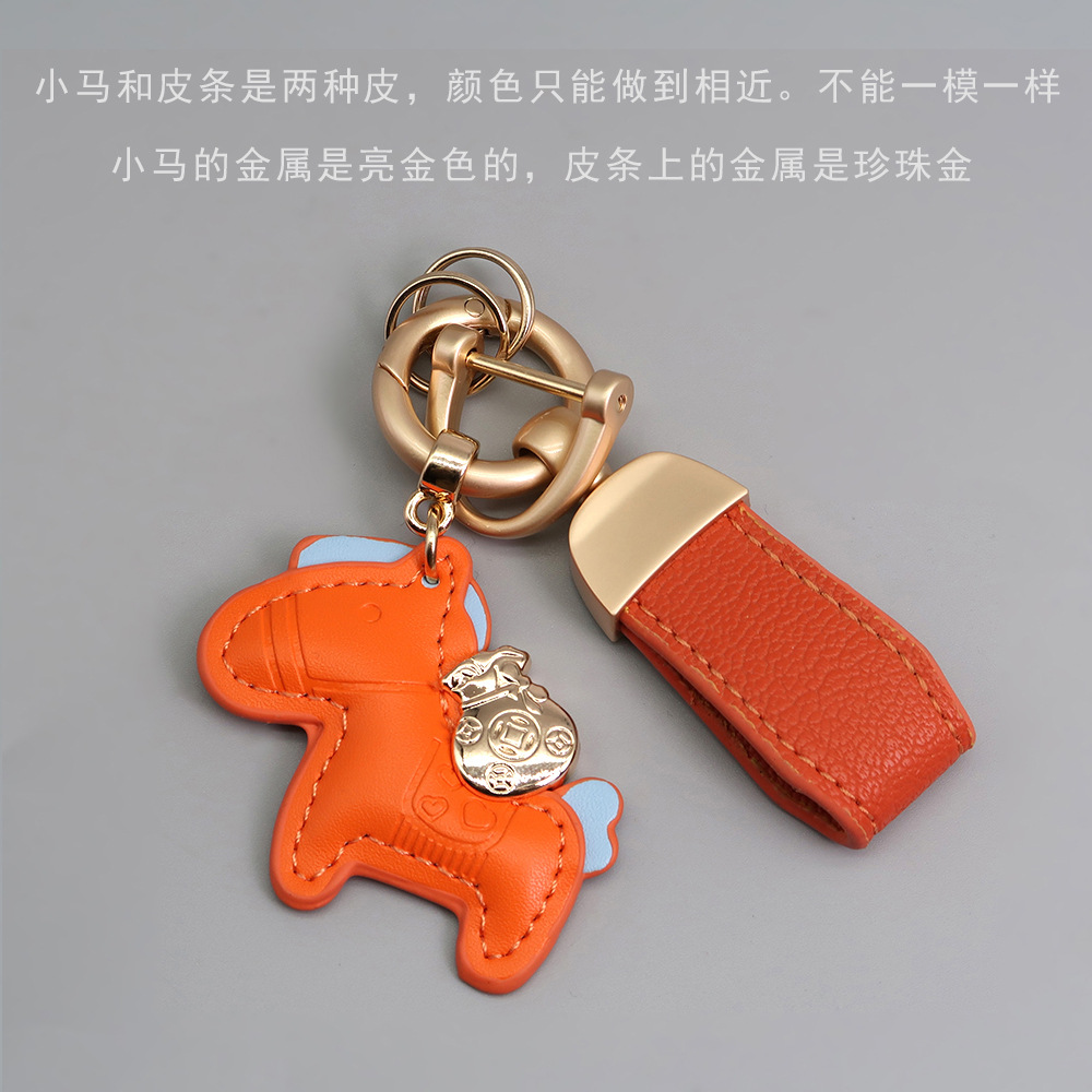 马上有钱小羊纹汽车钥匙扣 皮革小马挂件网红情侣珍珠金钥匙扣