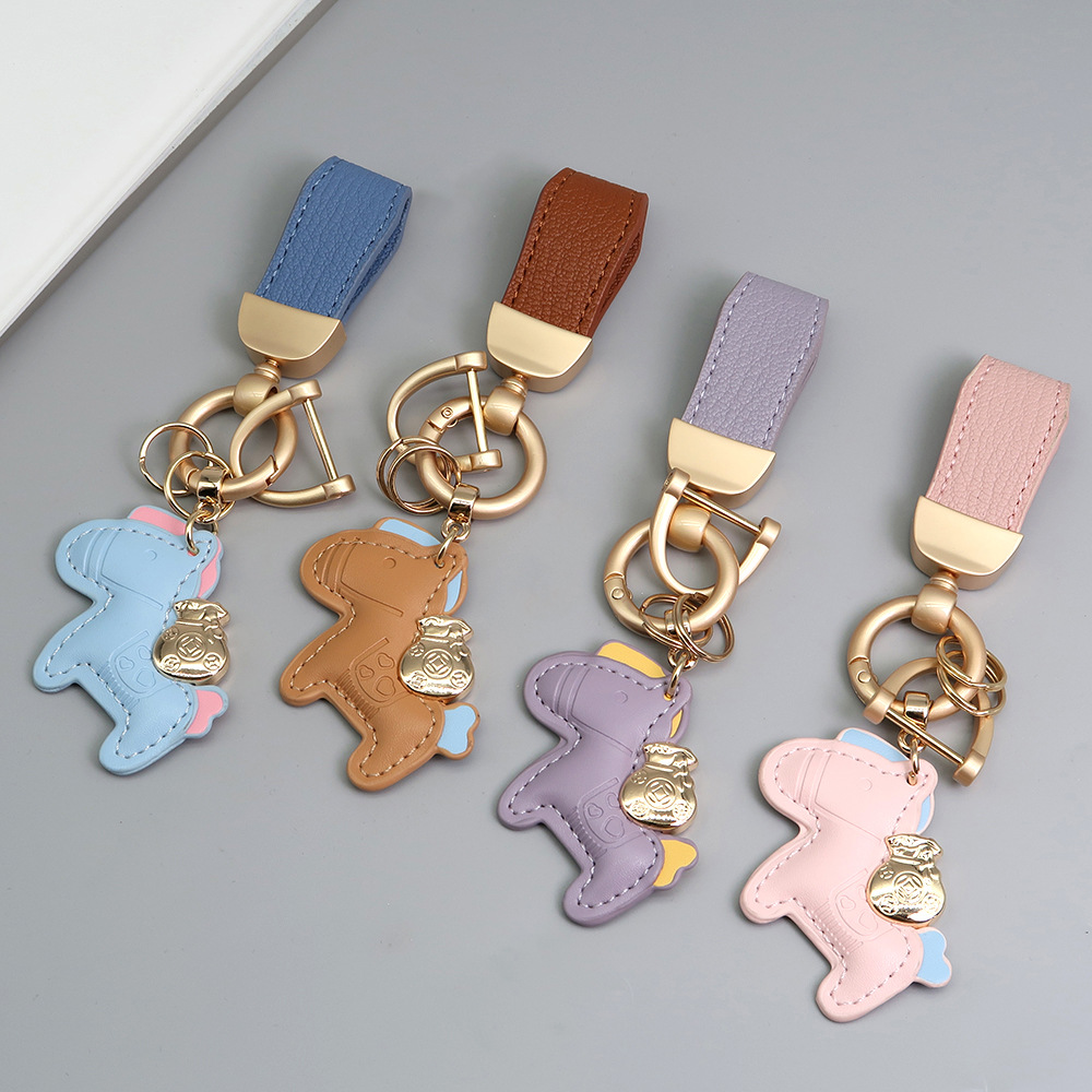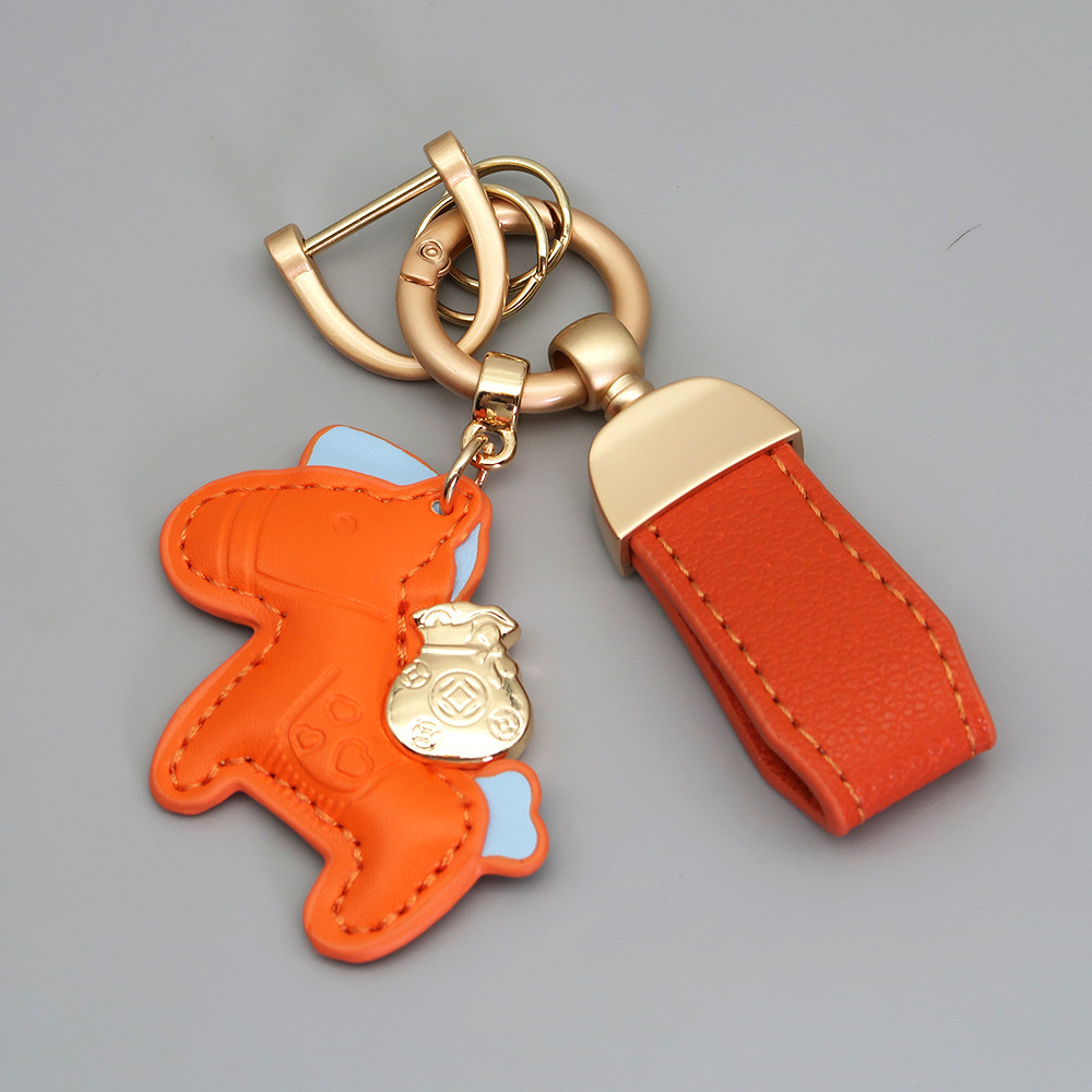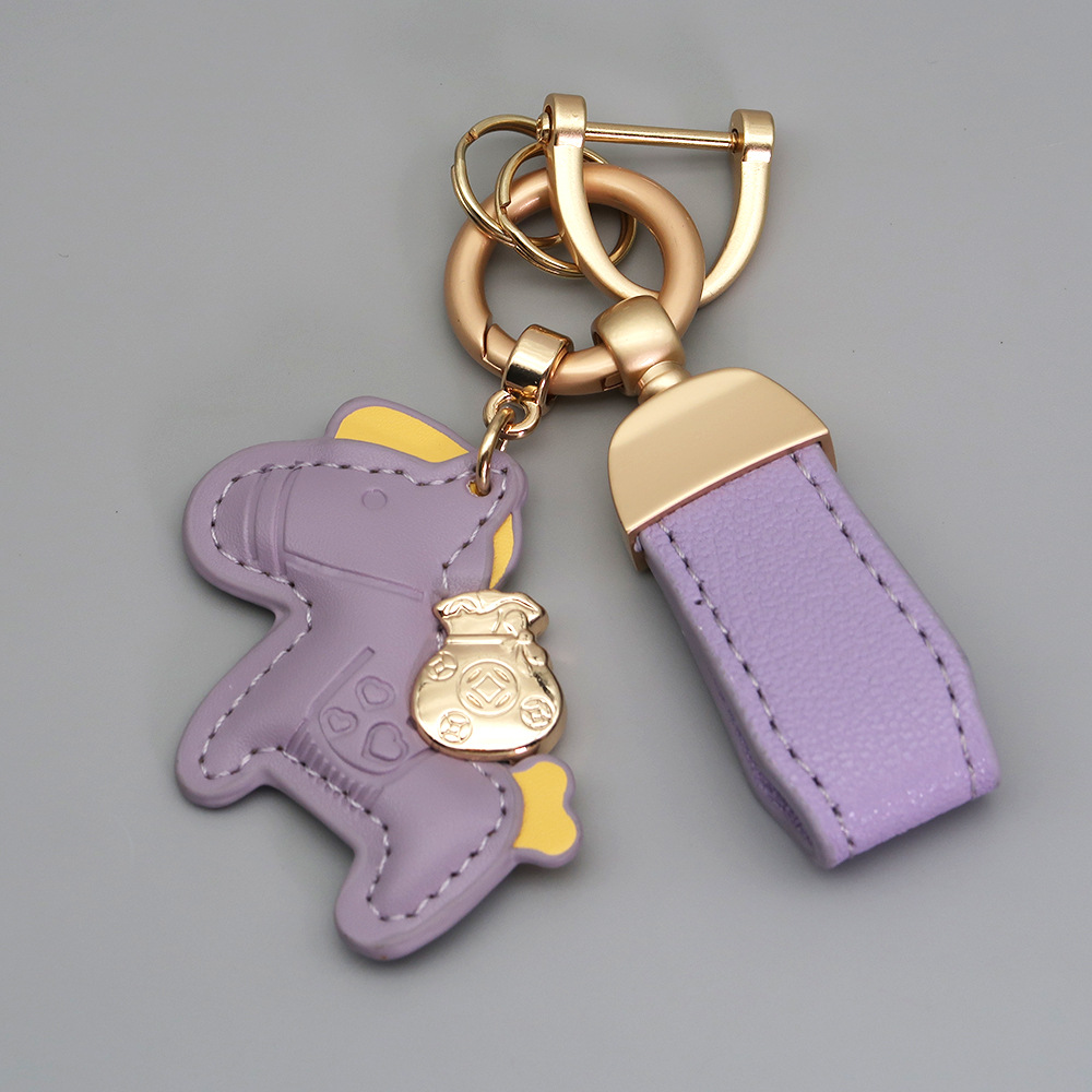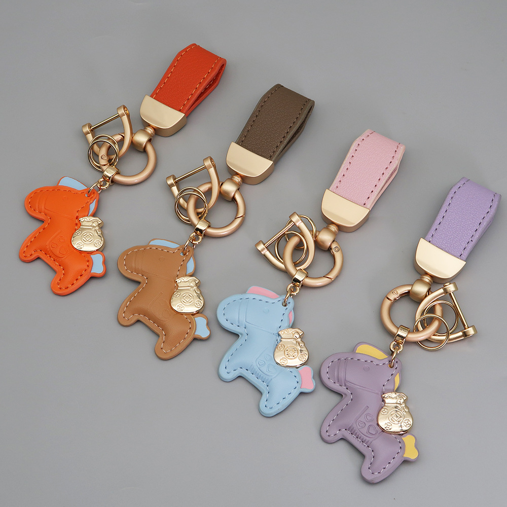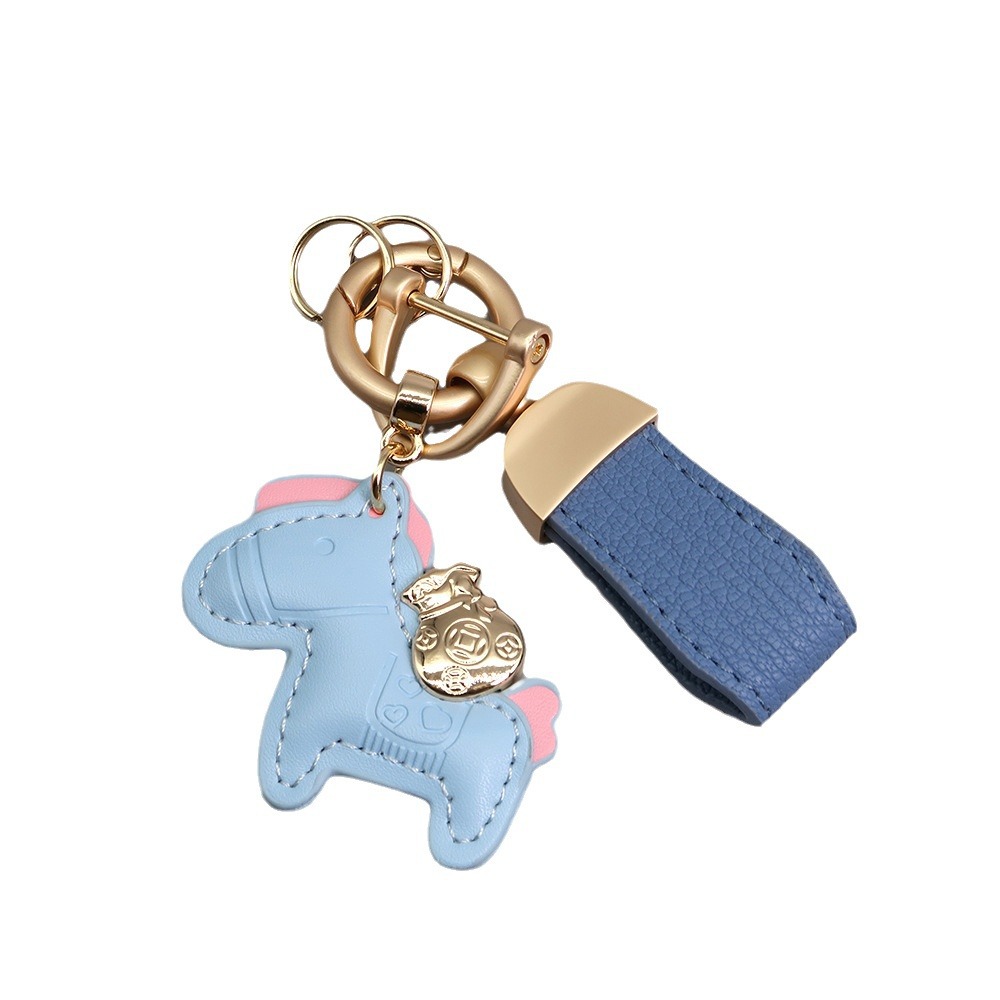 马上有钱小羊纹汽车钥匙扣 皮革小马挂件网红情侣珍珠金钥匙扣