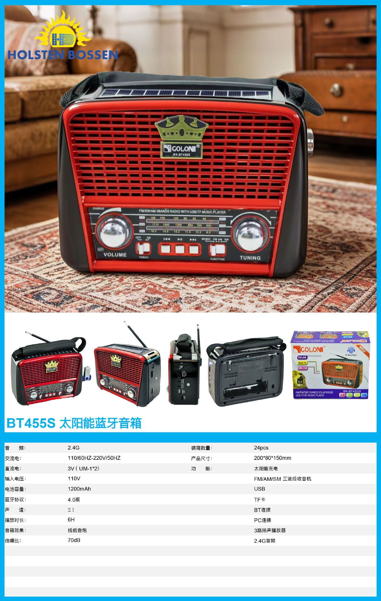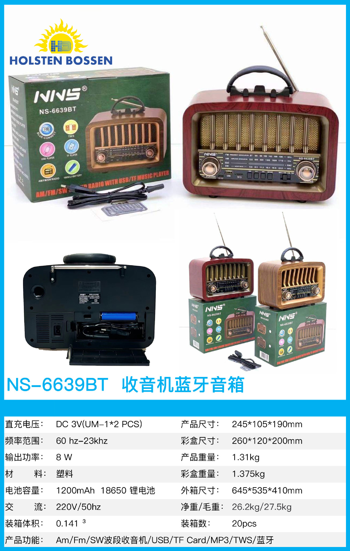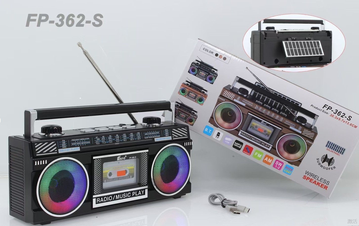太阳能收音机音响 便携式高音质低音炮外贸笔记本子复古蓝牙音箱