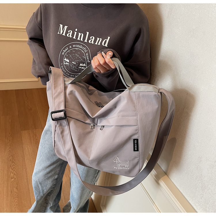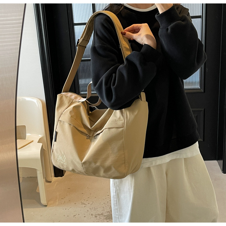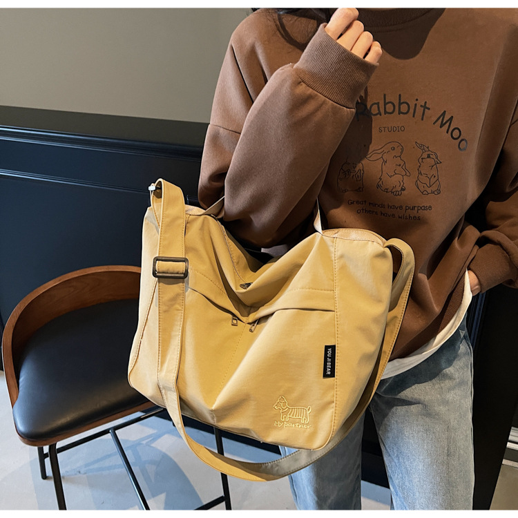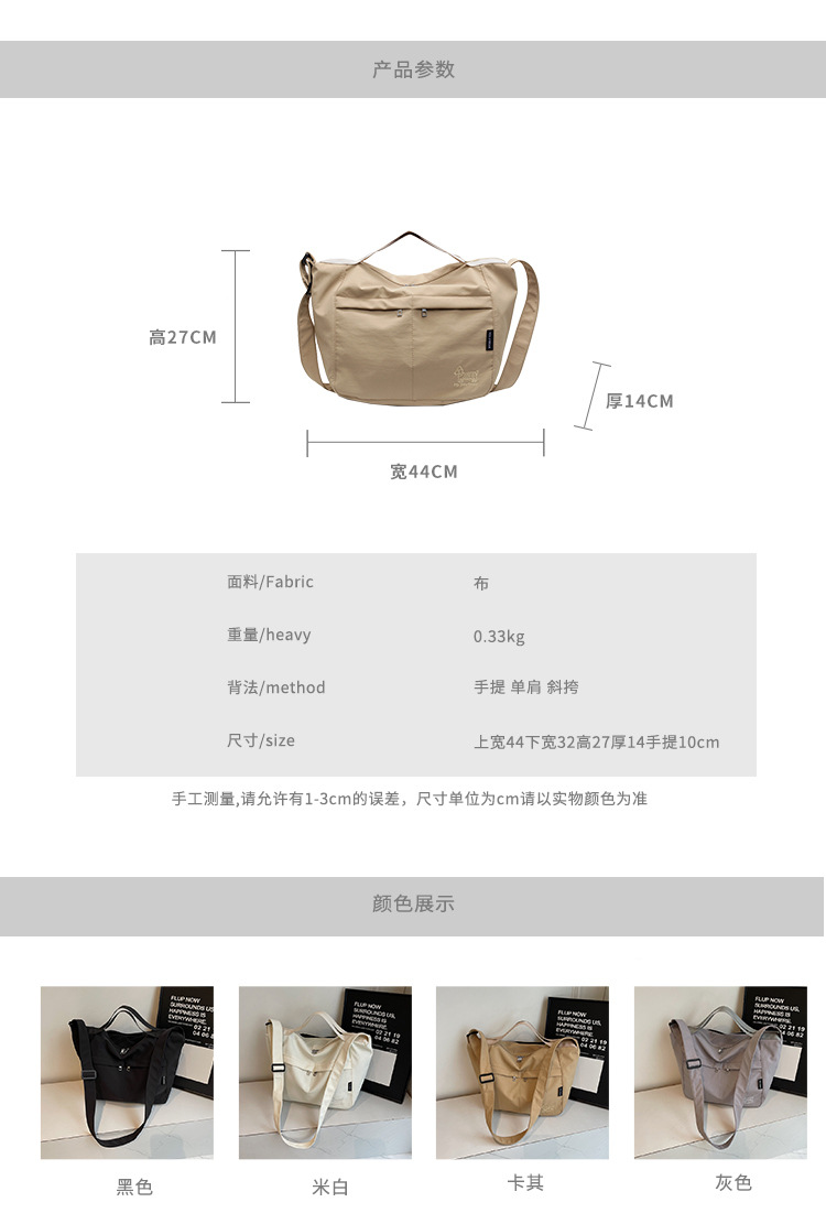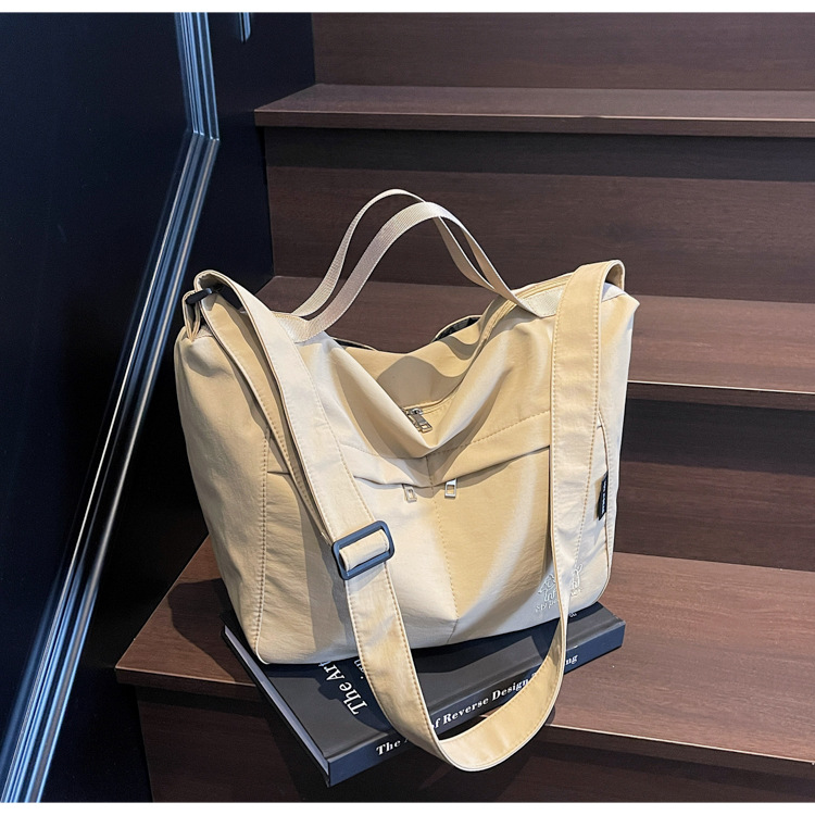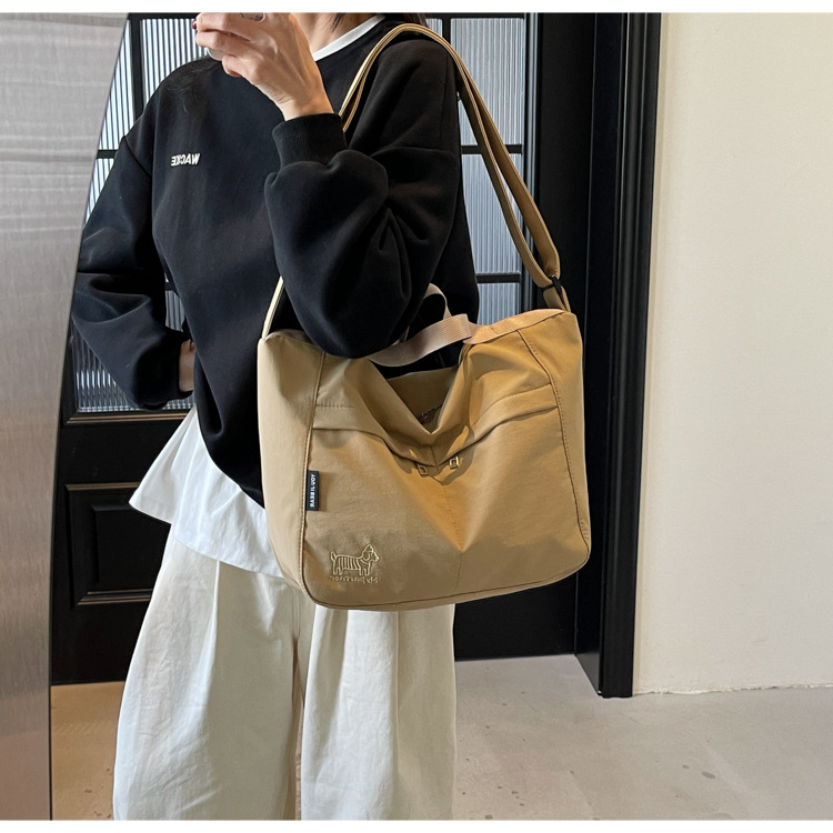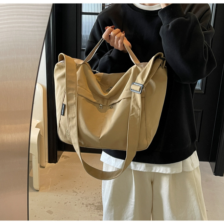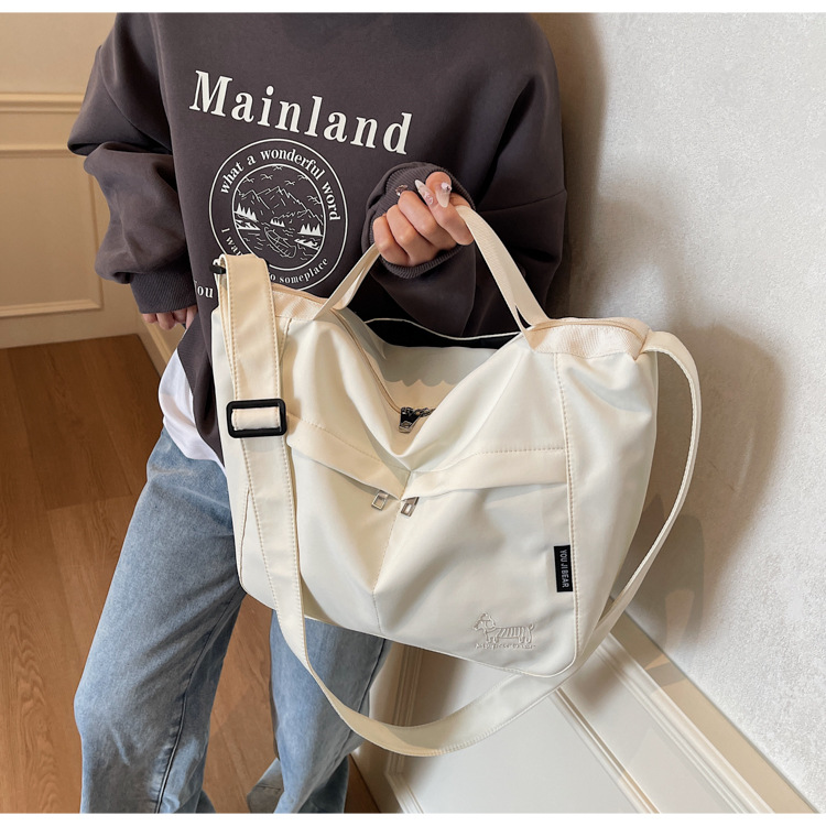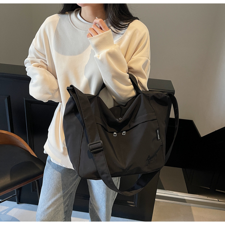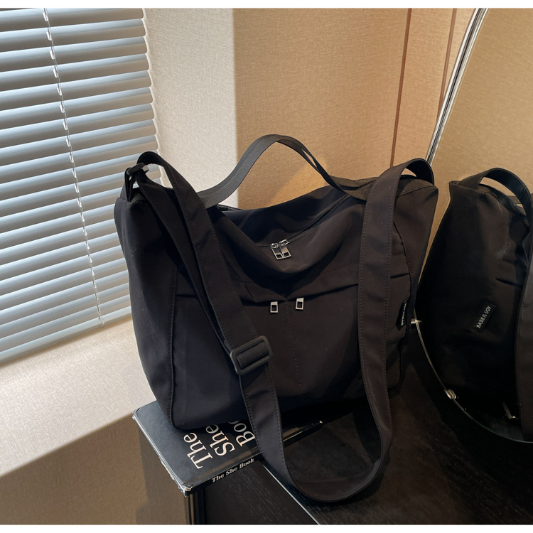 新款尼龙布包百搭通勤大容量托特包休闲简约学生上课跨境单肩包潮