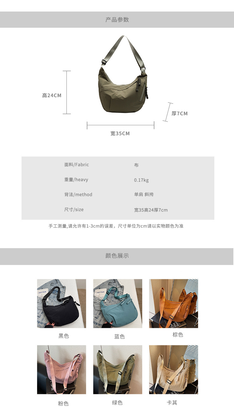 外贸饺子包新款日系复古尼龙布包百搭上班通勤单肩包休闲外出斜挎