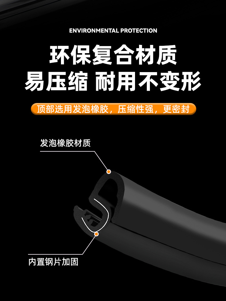汽车B柱密封条车门隔音条通用型门缝密封条防尘降噪改装静音胶条