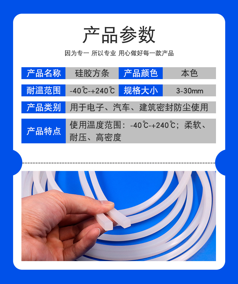 白色硅胶条实心方条耐高温防撞防水硅胶密封条扁条4/6/8/10/12/15
