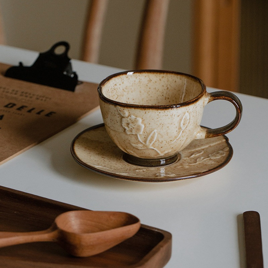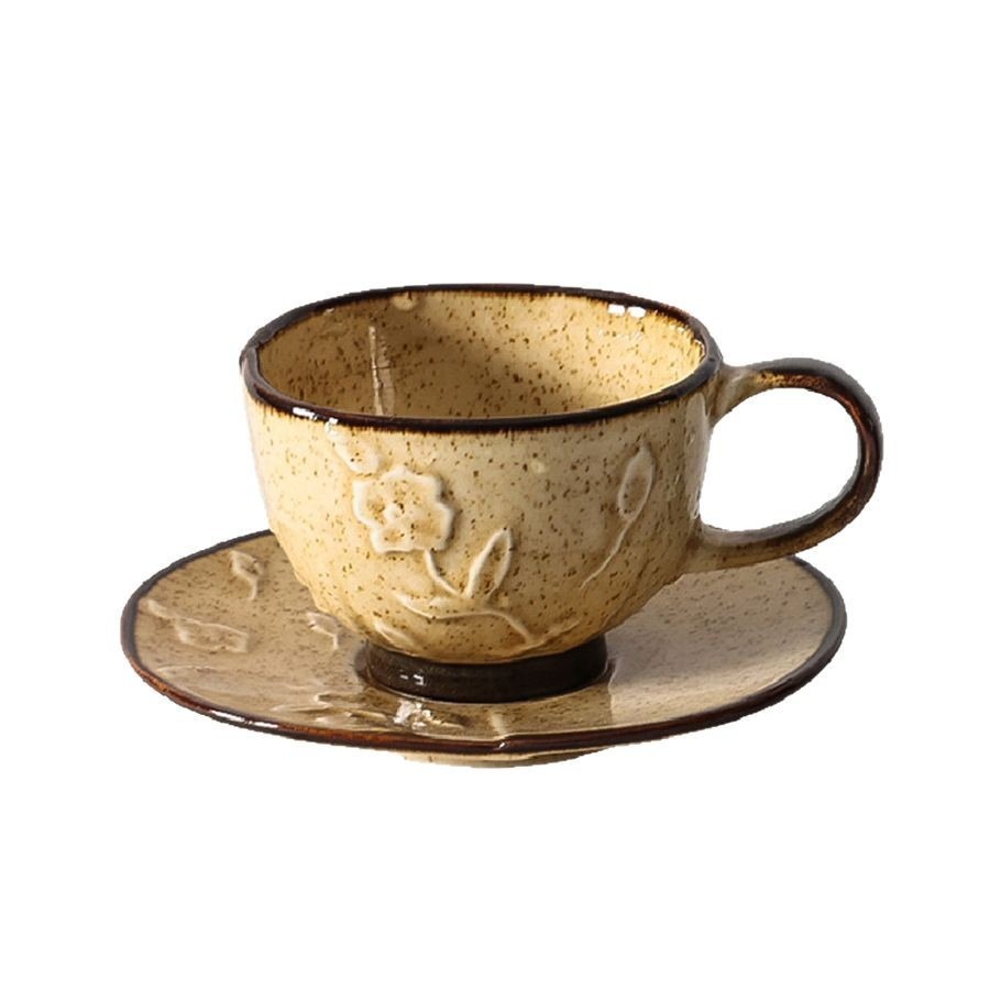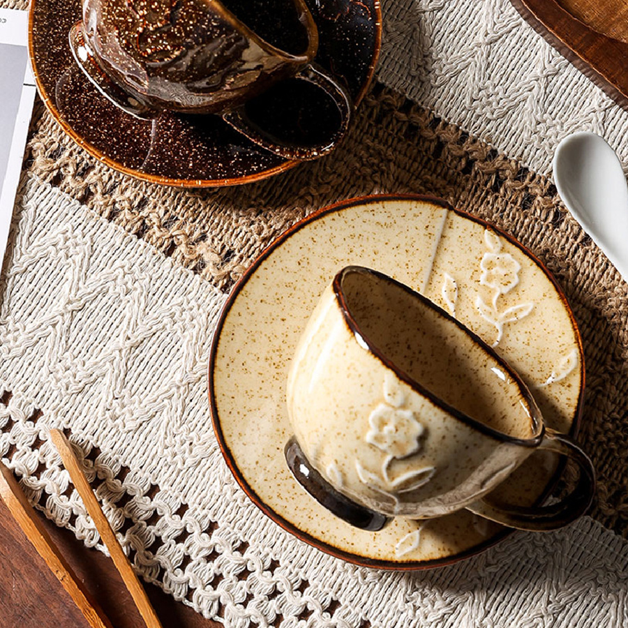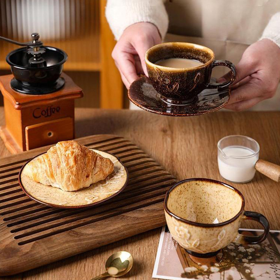 家用陶瓷茶杯下午茶杯碟套装手绘繁花谷苏咖啡杯碟窑变釉水杯