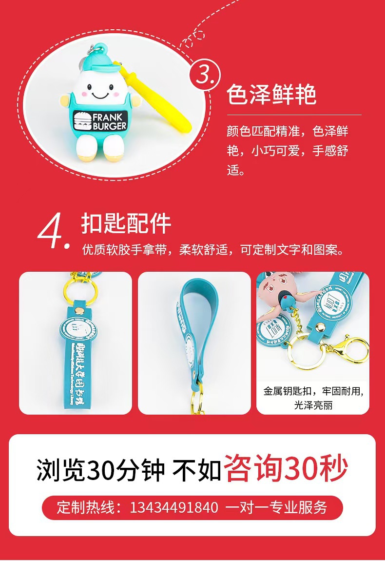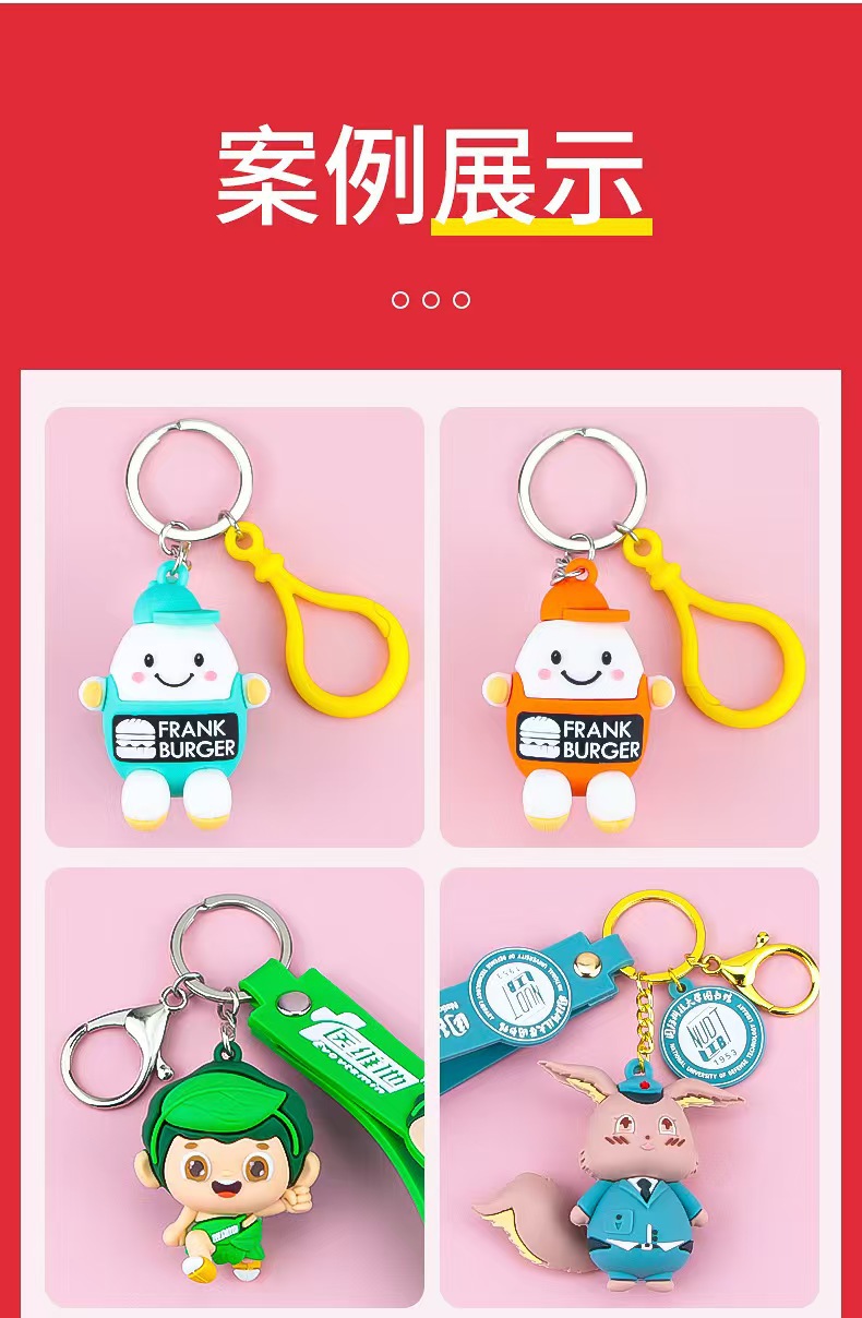 PVC钥匙扣定制软胶金属挂件3D立体橡胶卡通创意吉祥物盲盒公仔