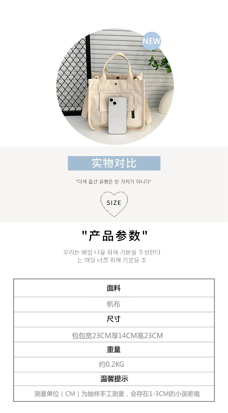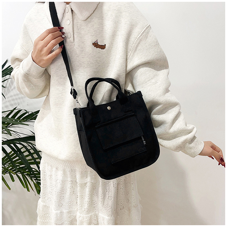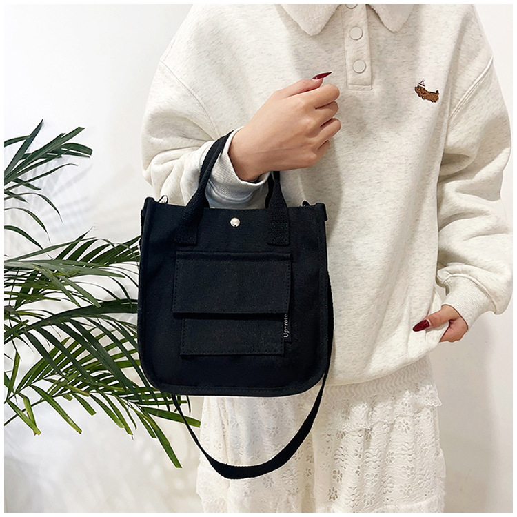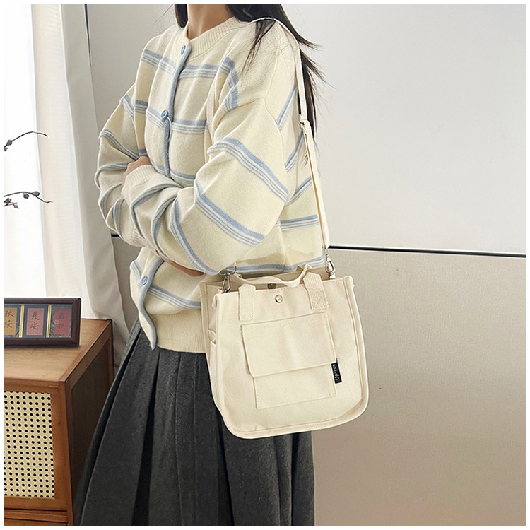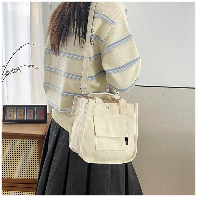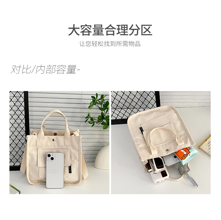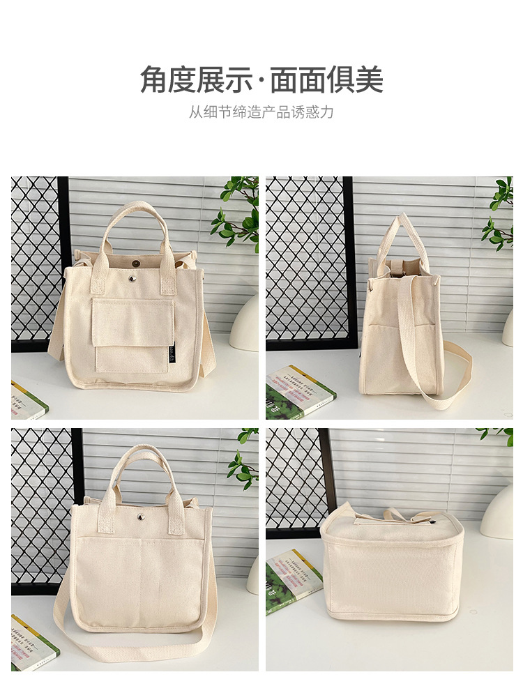 跨境热销立体多口袋托特帆布包手拎斜挎包简约百搭手提便当餐盒包