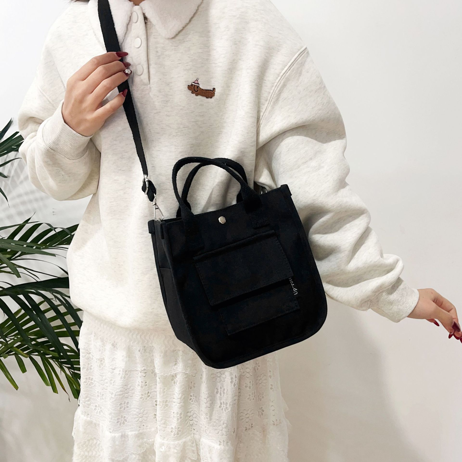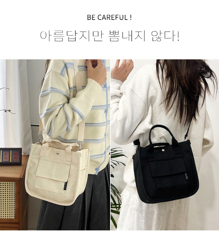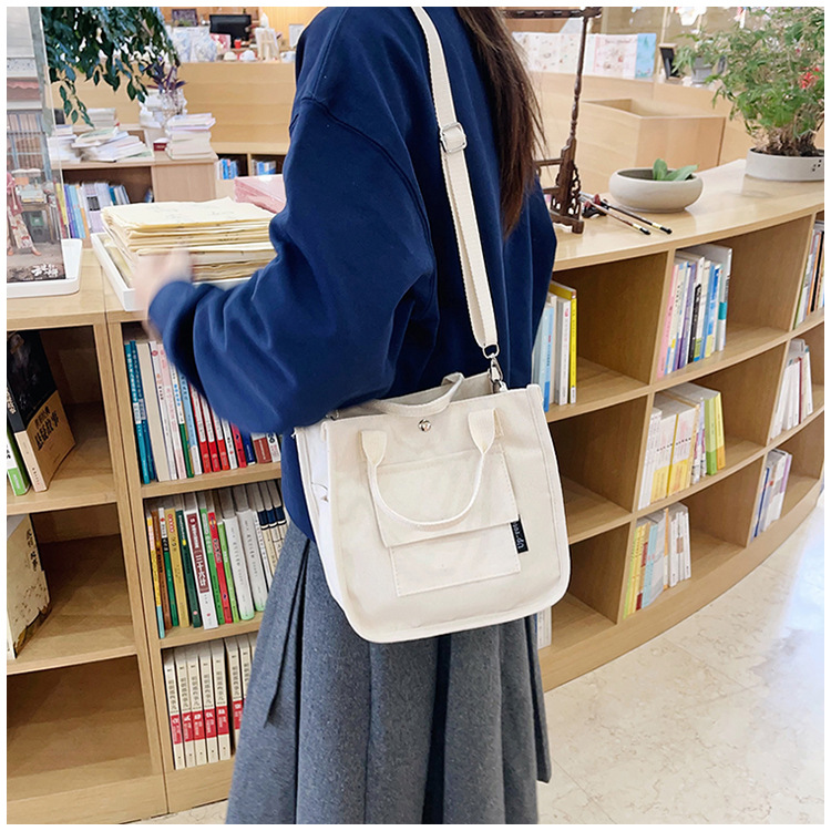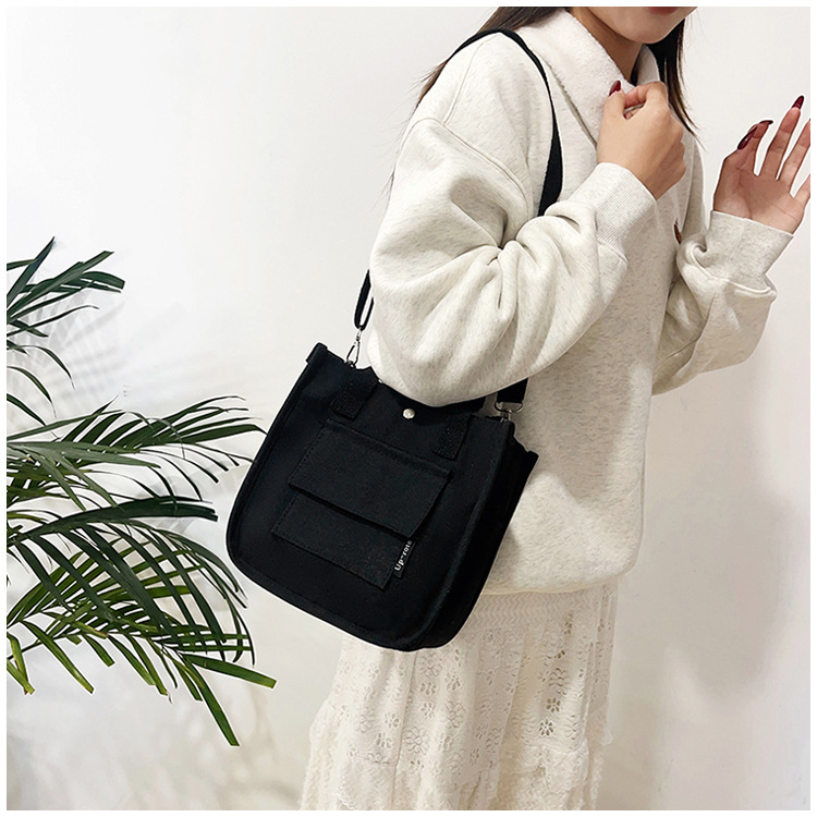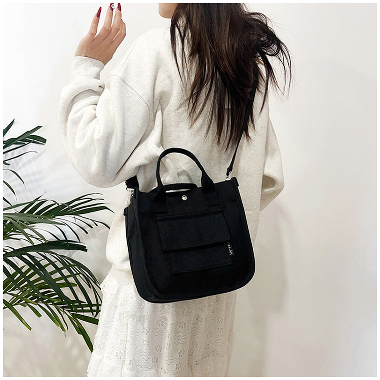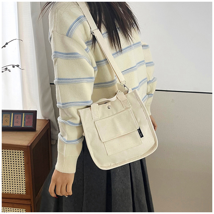 跨境热销立体多口袋托特帆布包手拎斜挎包简约百搭手提便当餐盒包