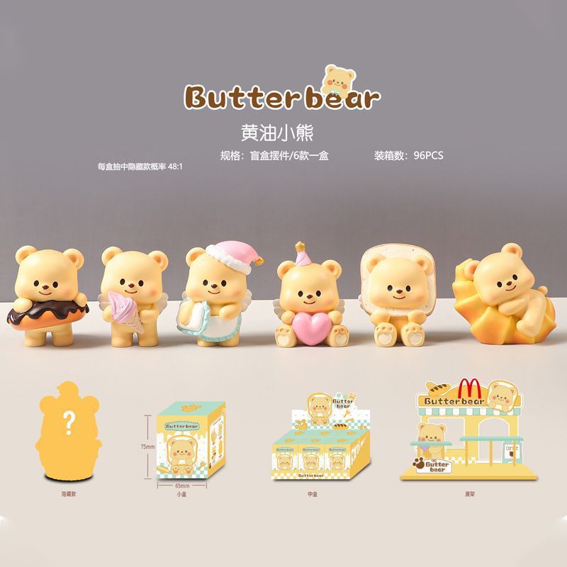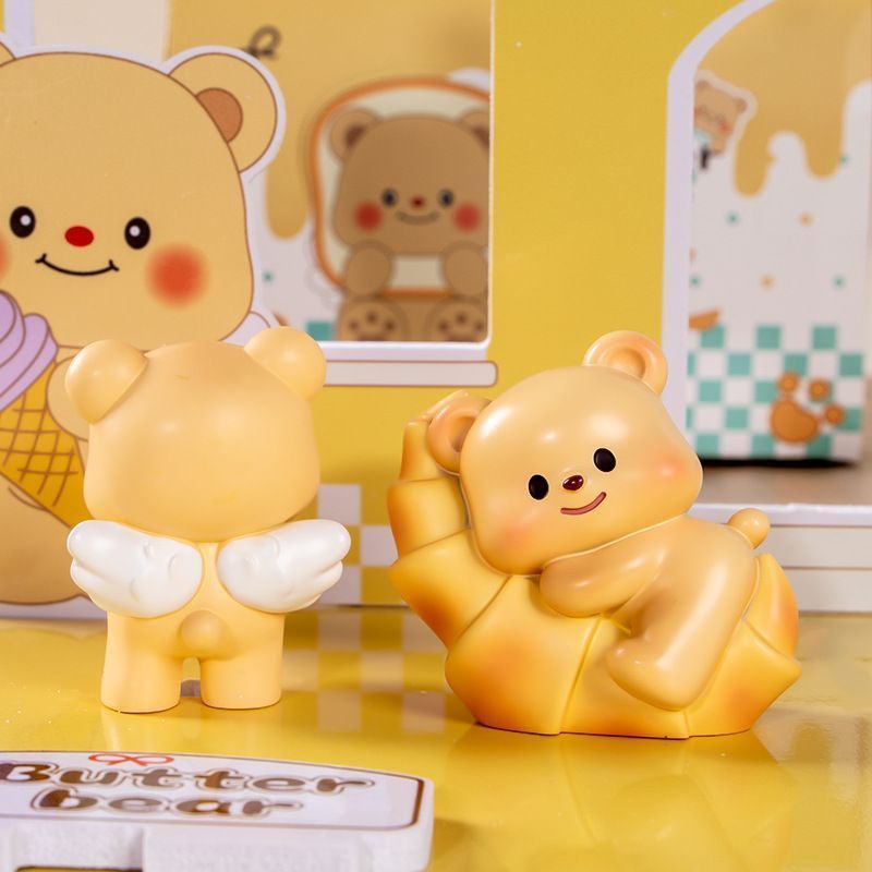 爆款黄油小熊盲盒奶呼呼小熊手办卡通玩偶可爱车载桌面摆件女礼物