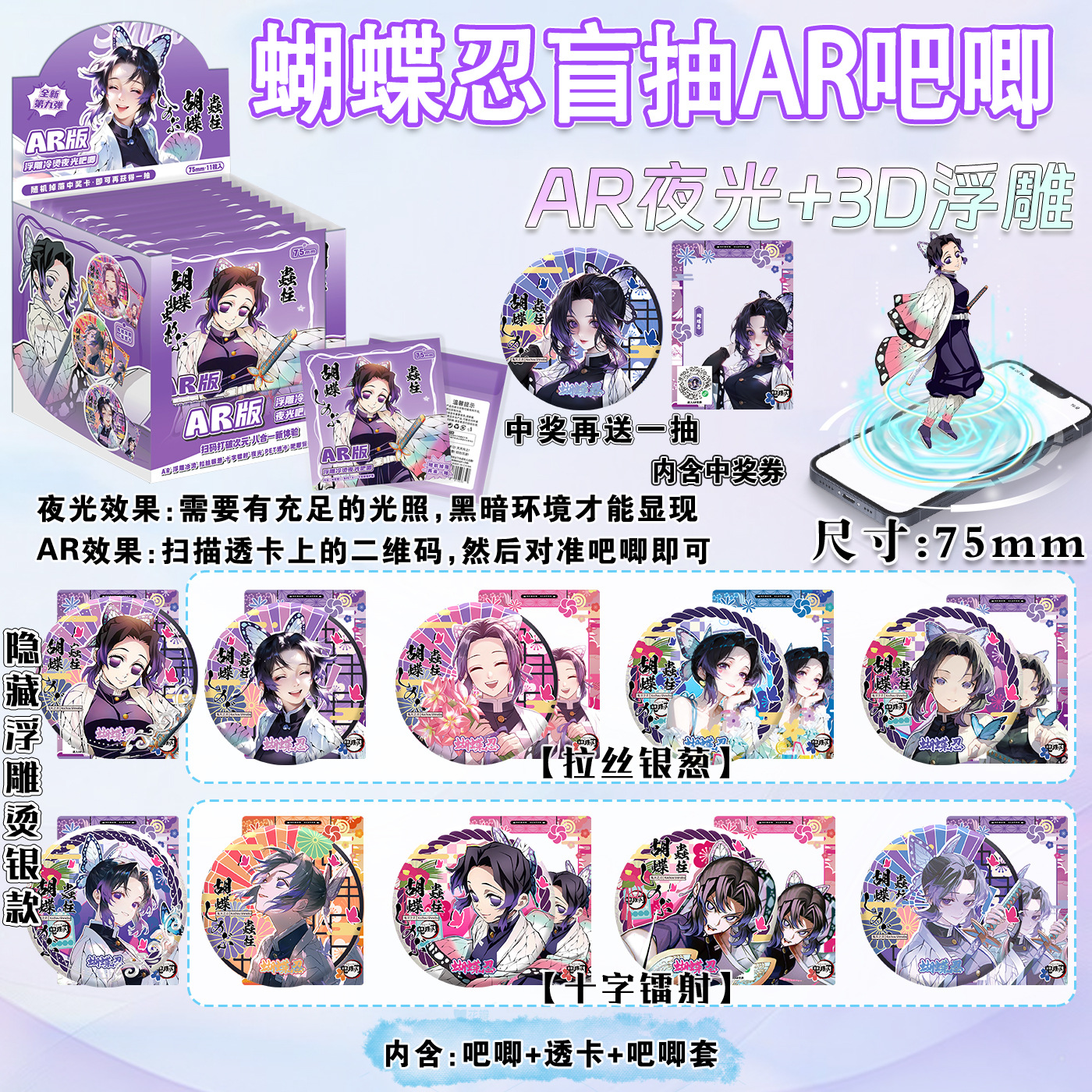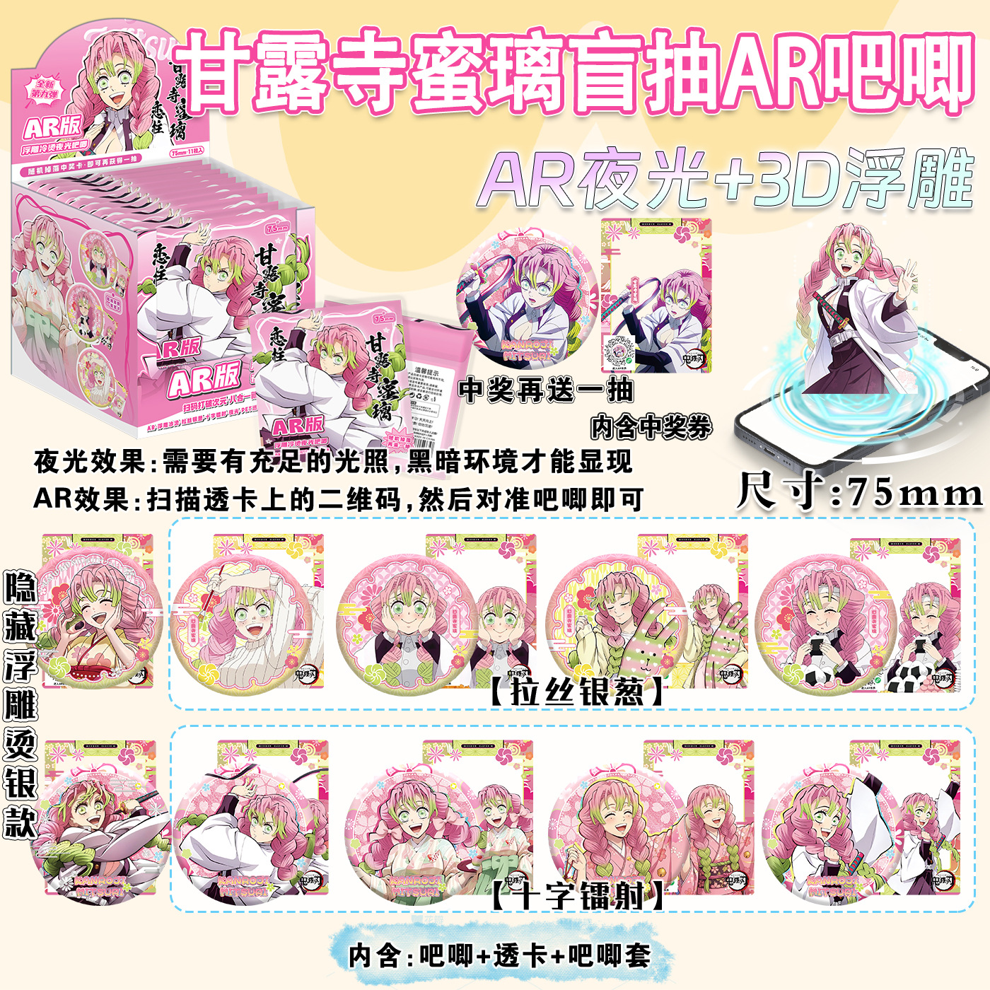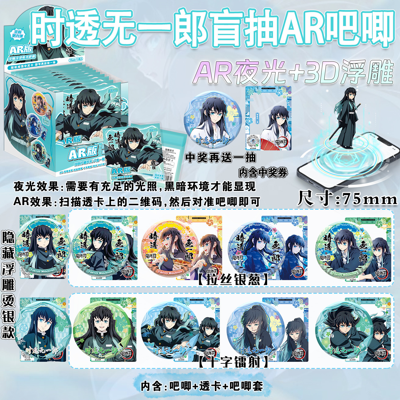 二次元动漫75mm双闪徽章咒术小卡盲抽谷子马口铁吧唧盲盒镭射盲袋