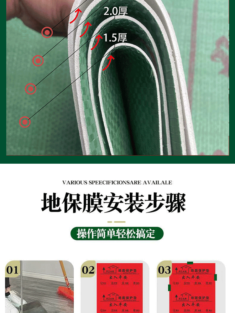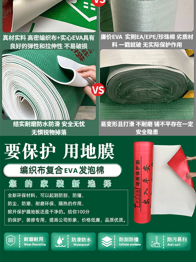 装修地面保护膜加厚地膜木地板瓷砖地砖防护膜eva批发红色保护垫