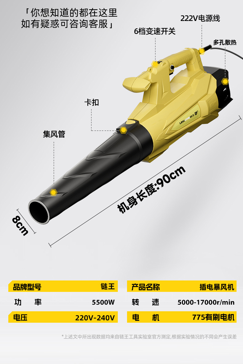 链王插电式鼓风机吹风机大功率220V吹雪机暴风枪吹灰除尘器厂家