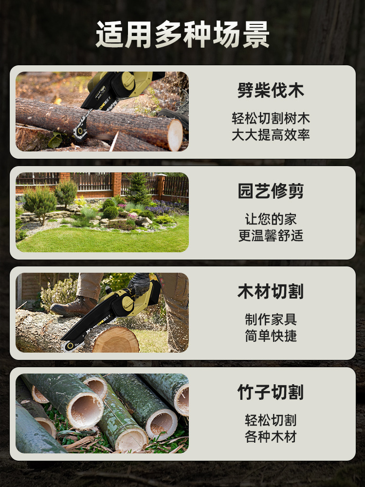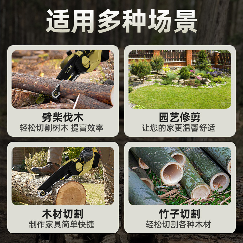 跨境供应锂电锯6寸8寸家用手持锯充电式户外伐木电动锯木枝条树枝