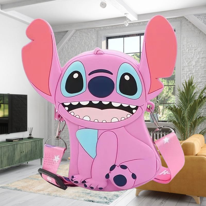 跨境新款可爱卡通史迪仔儿童包包时尚斜挎公主包迷你包硅胶零钱包
