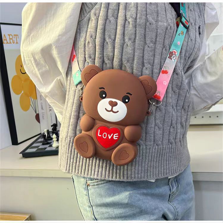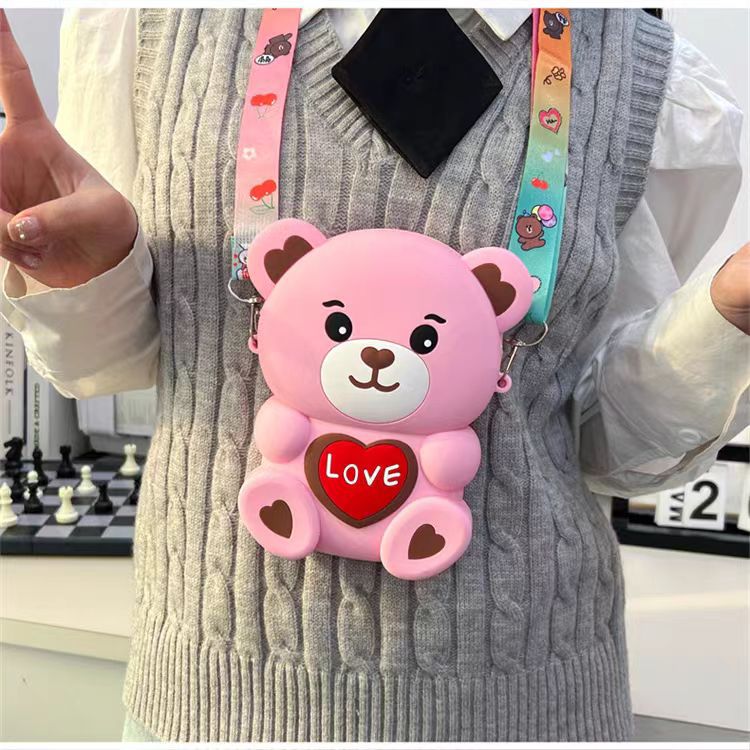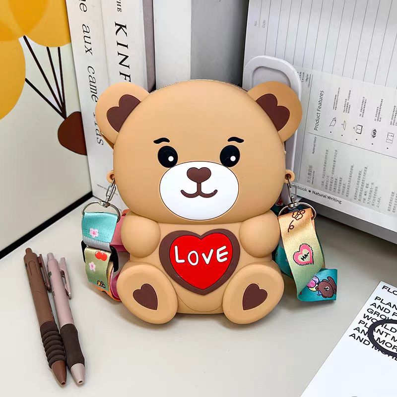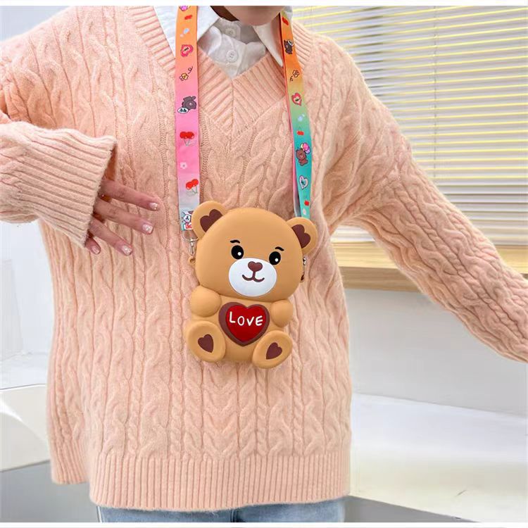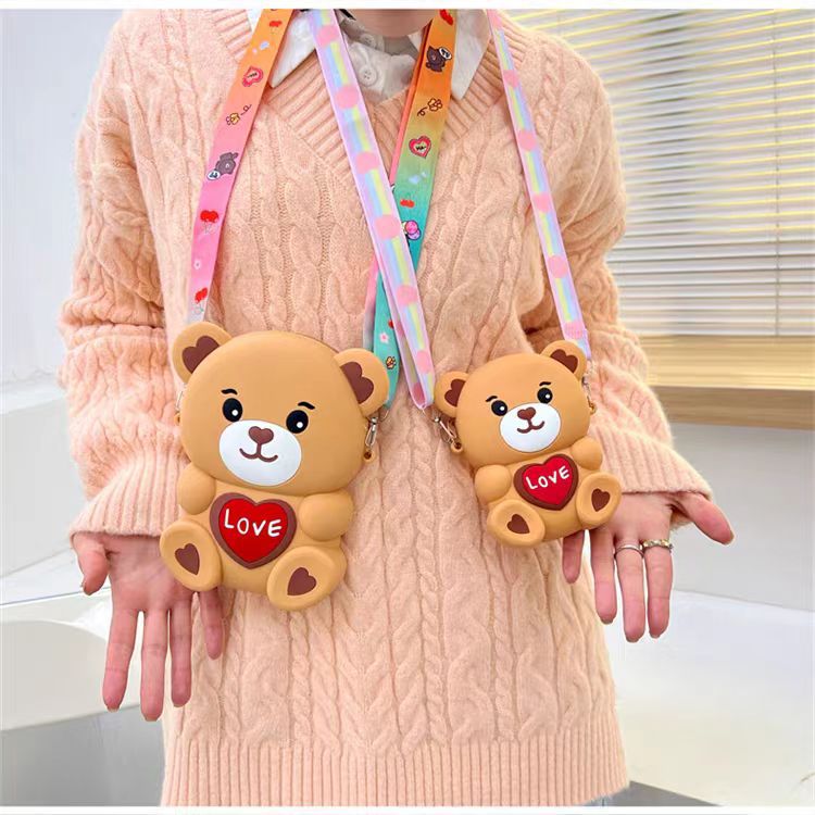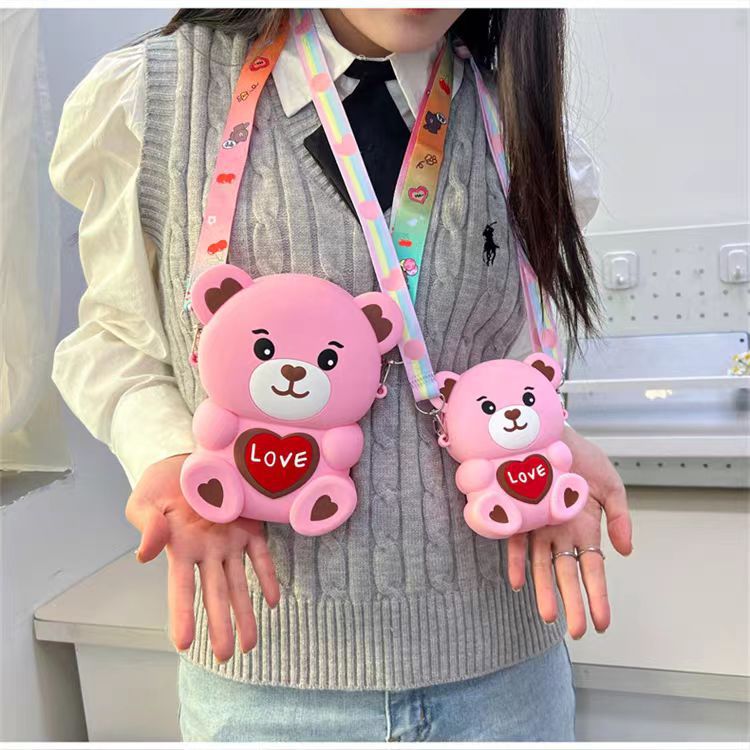2024新款硅胶包包卡通零钱包可爱LOVE熊减压斜挎女士包