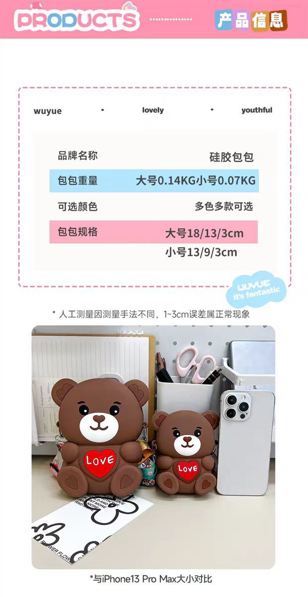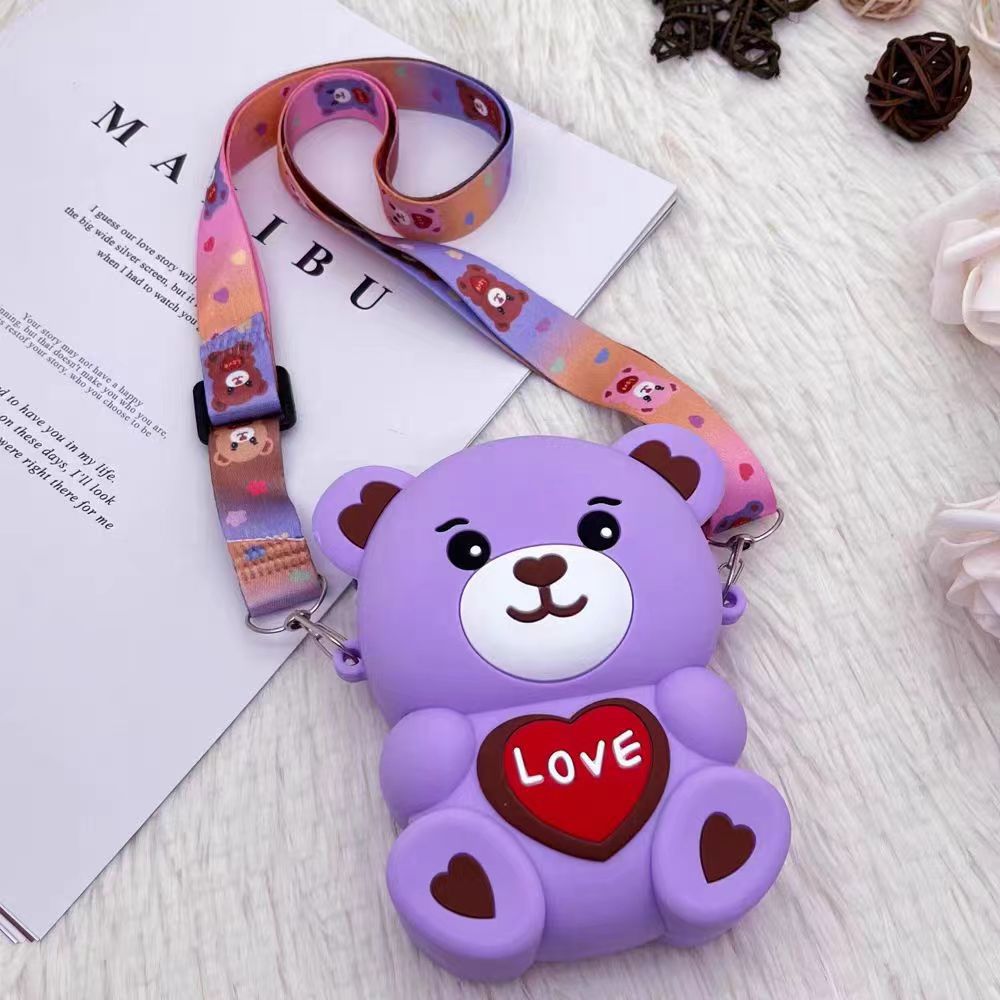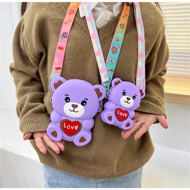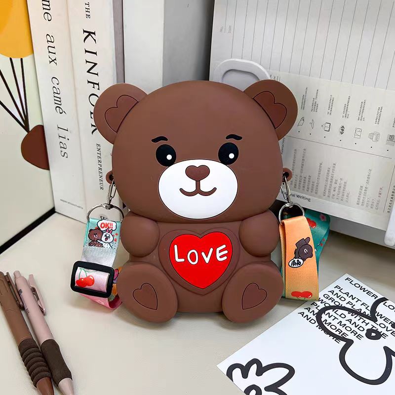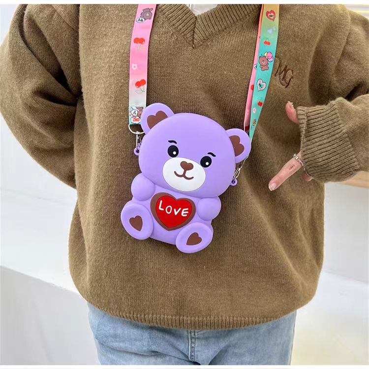 2024新款硅胶包包卡通零钱包可爱LOVE熊减压斜挎女士包