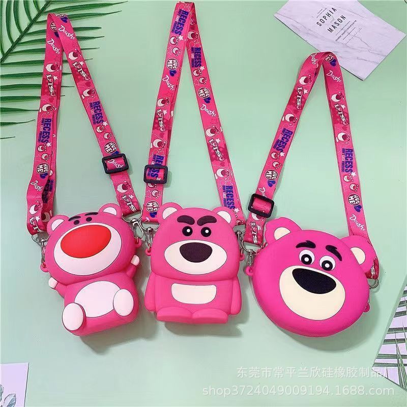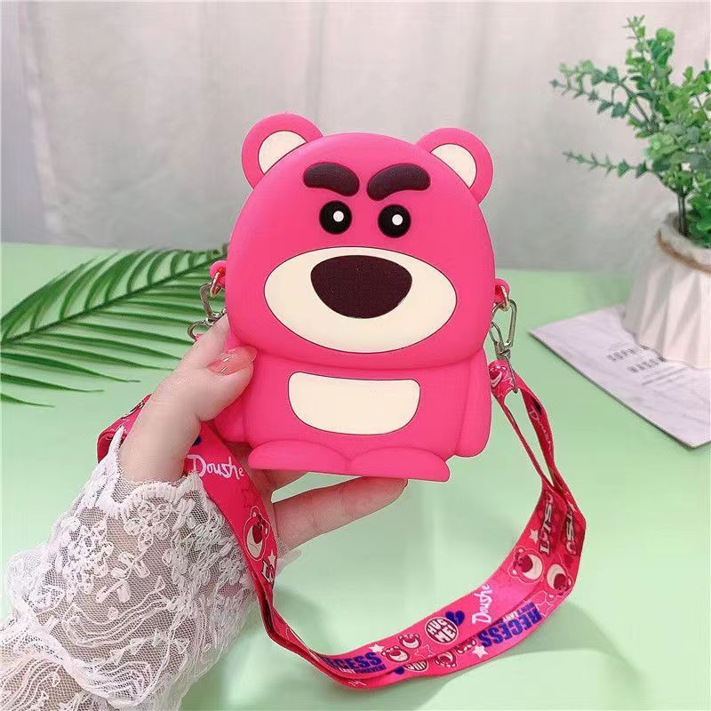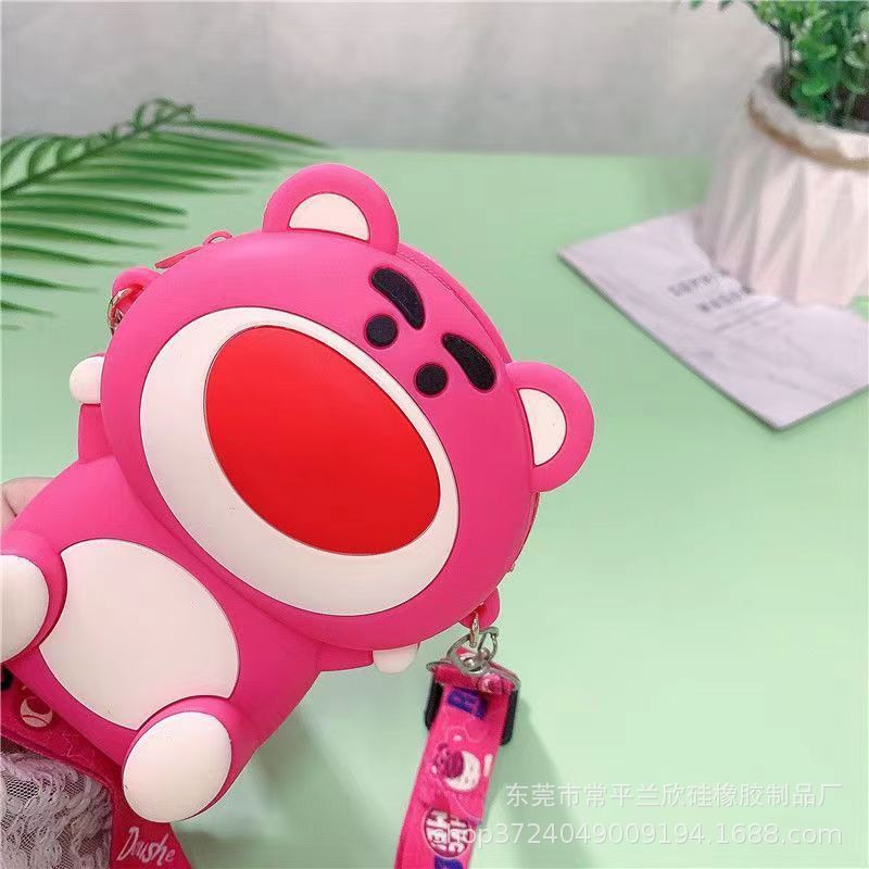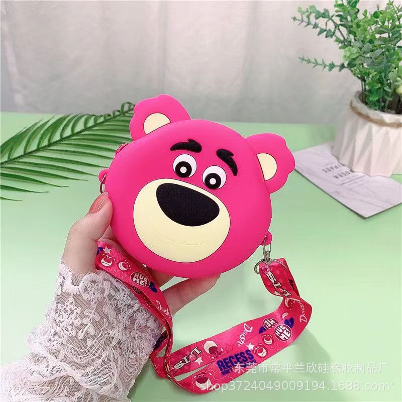 儿童包包草莓熊卡通硅胶包单肩斜挎包潮流配饰女童零钱包批发小包