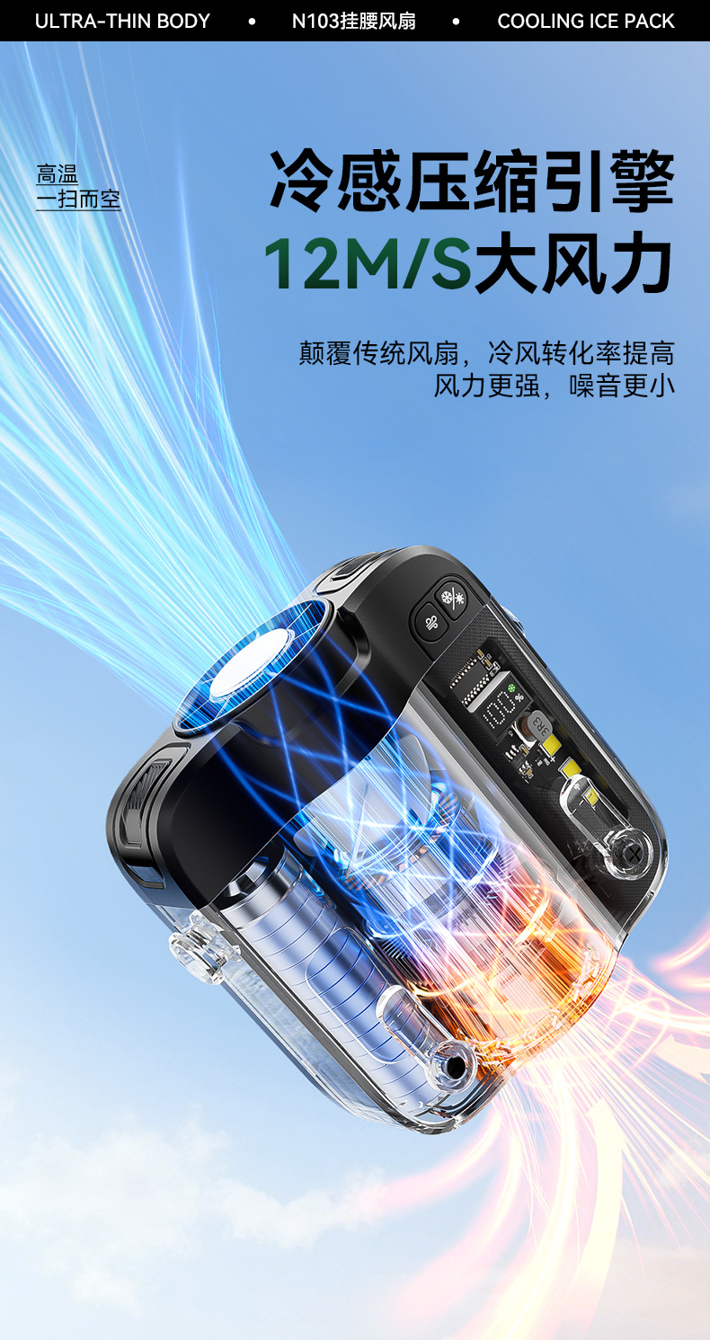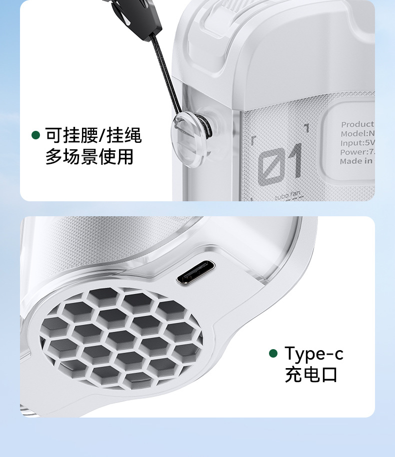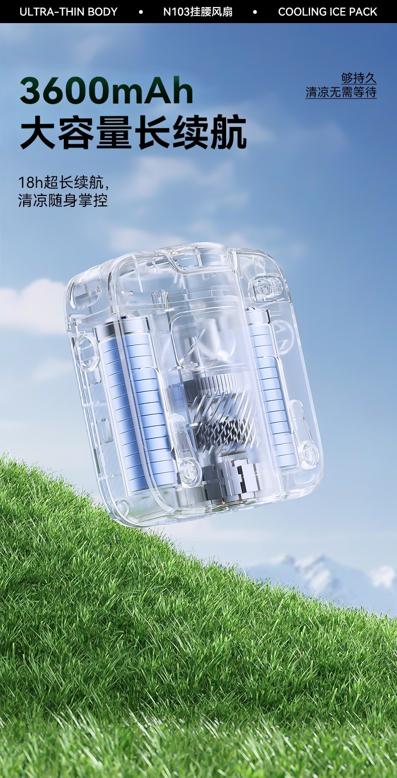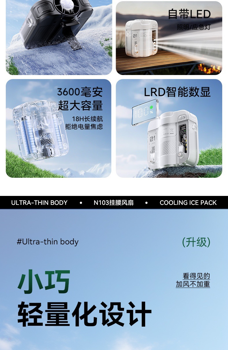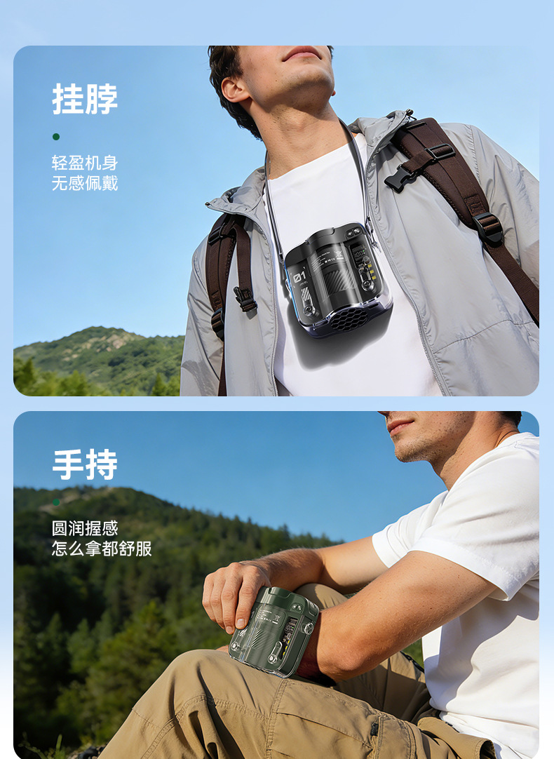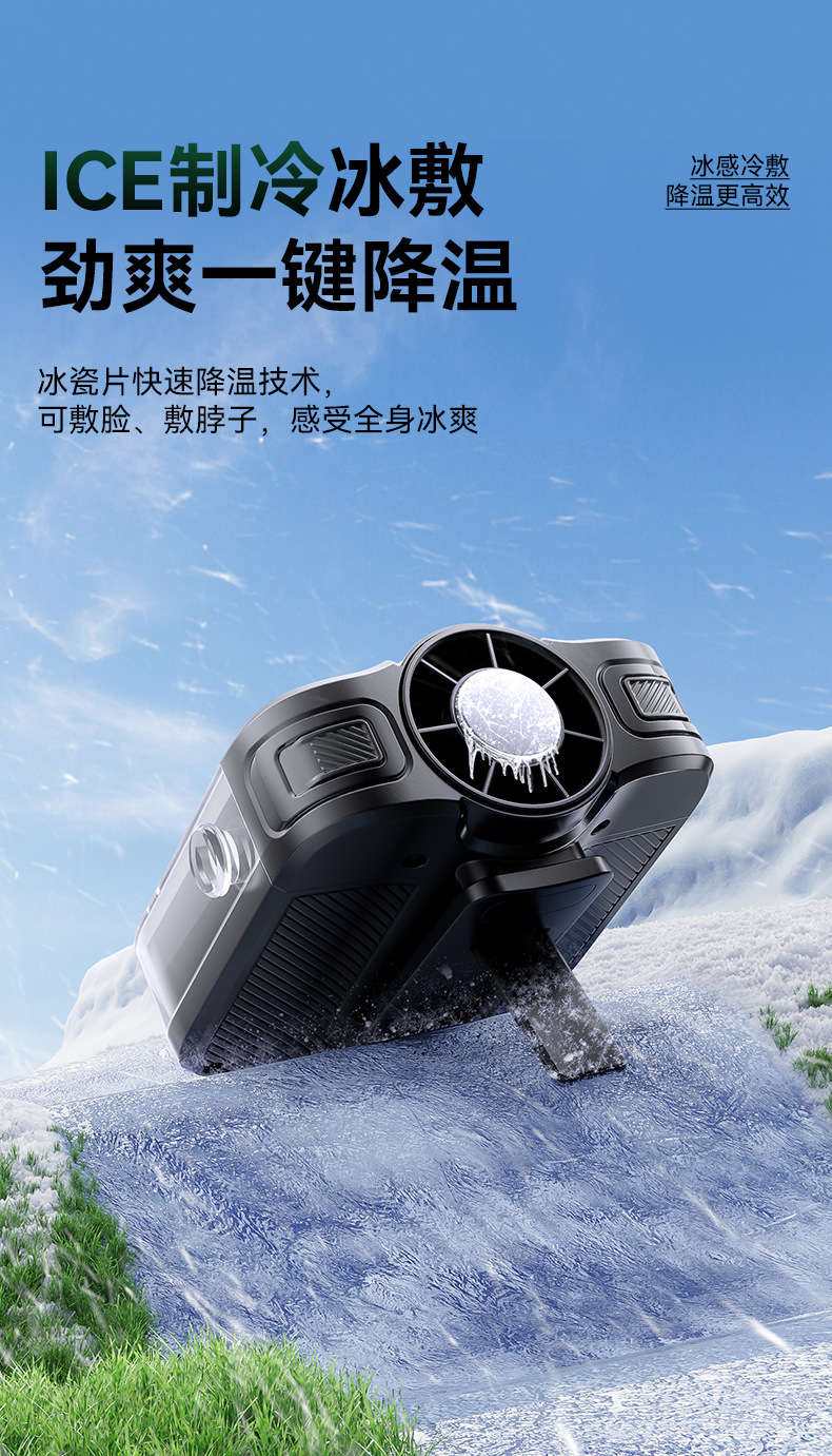 2026新款冰敷制冷挂腰风扇小型挂脖手持小风扇便携式大容量长续航