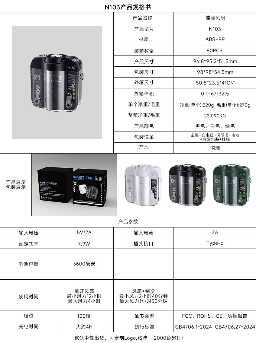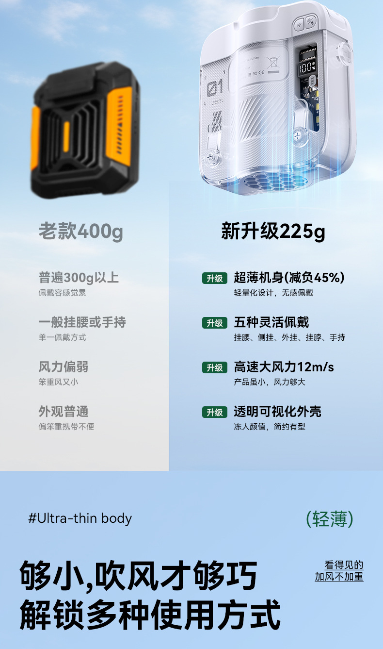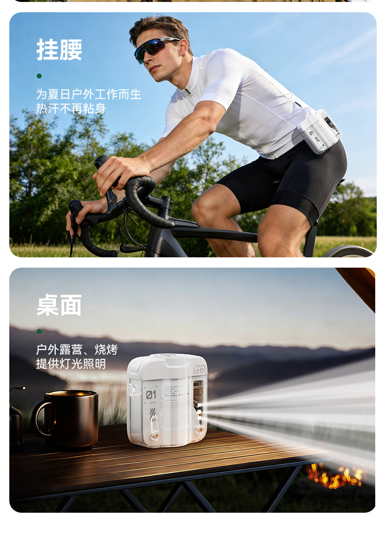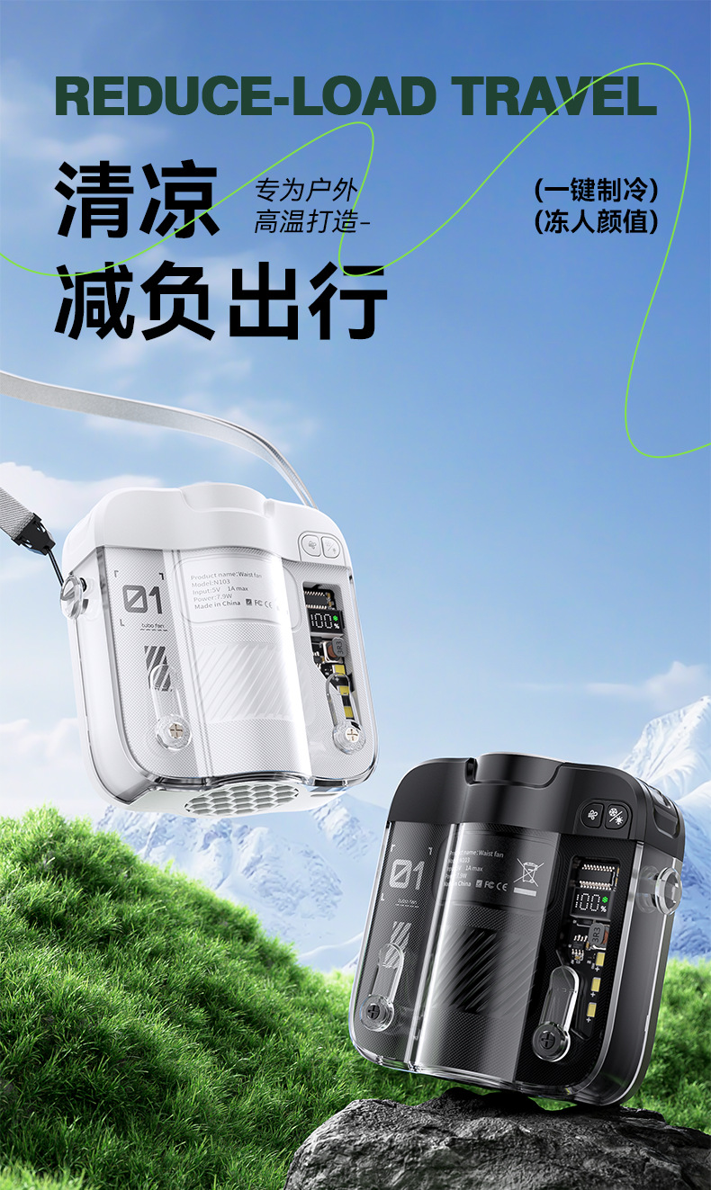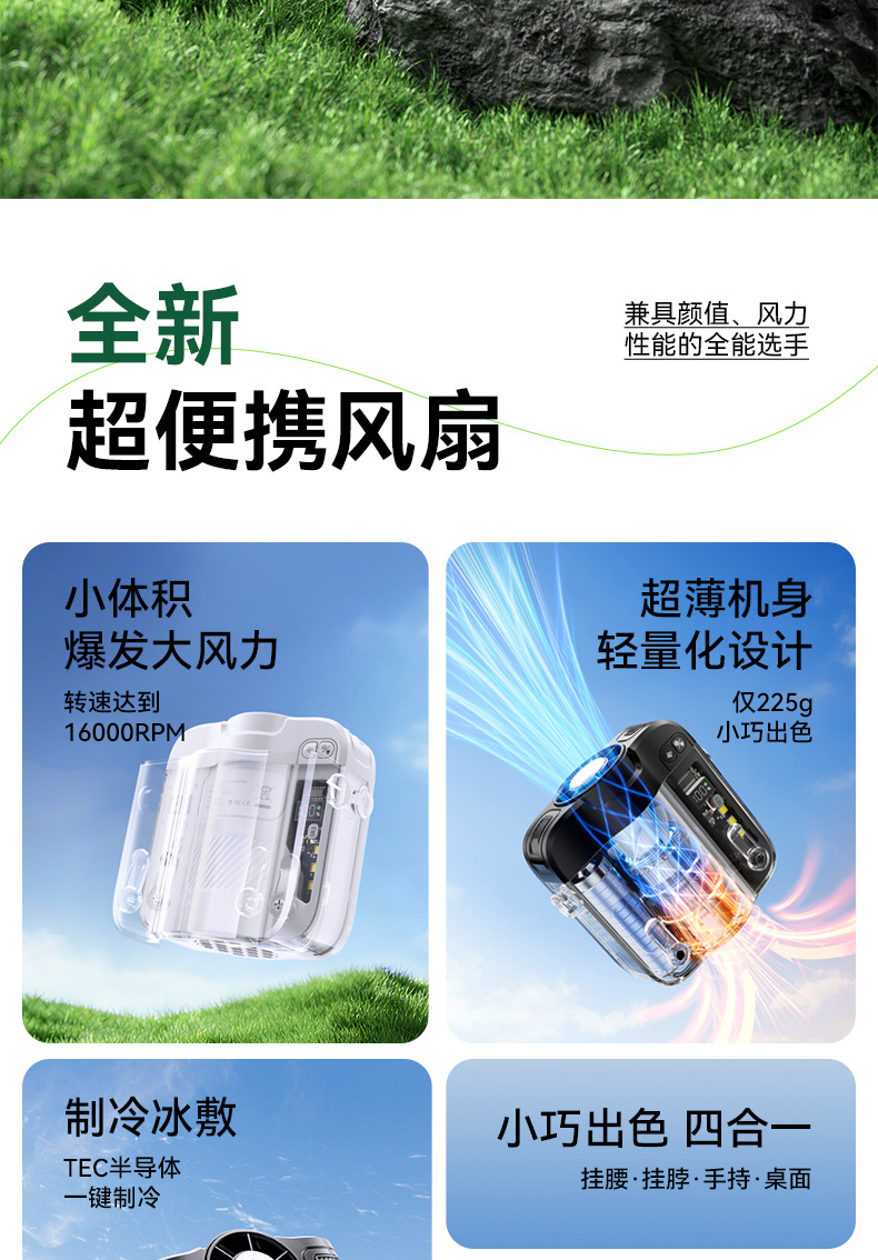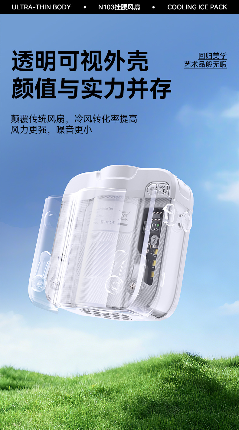 2026新款冰敷制冷挂腰风扇小型挂脖手持小风扇便携式大容量长续航