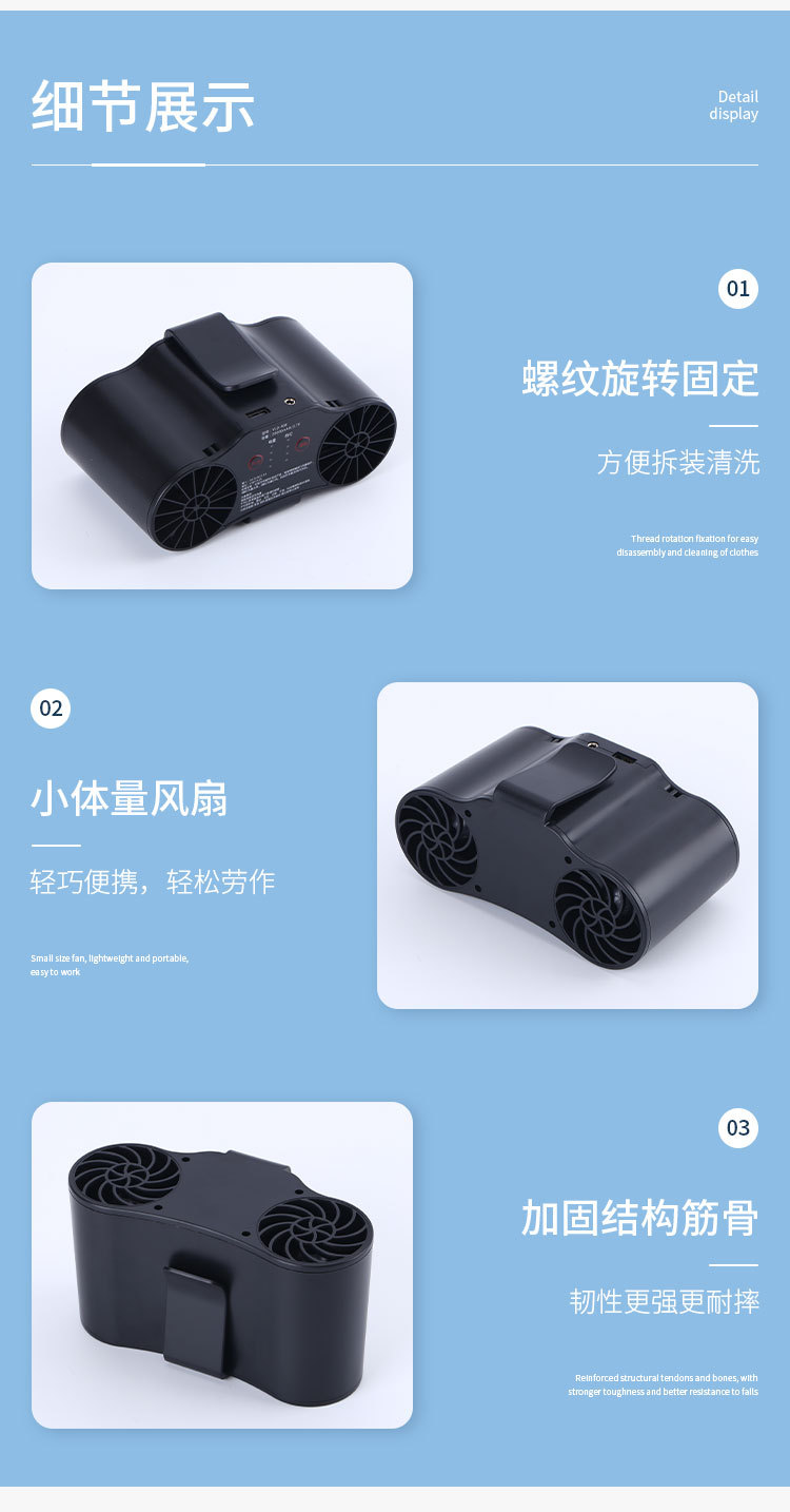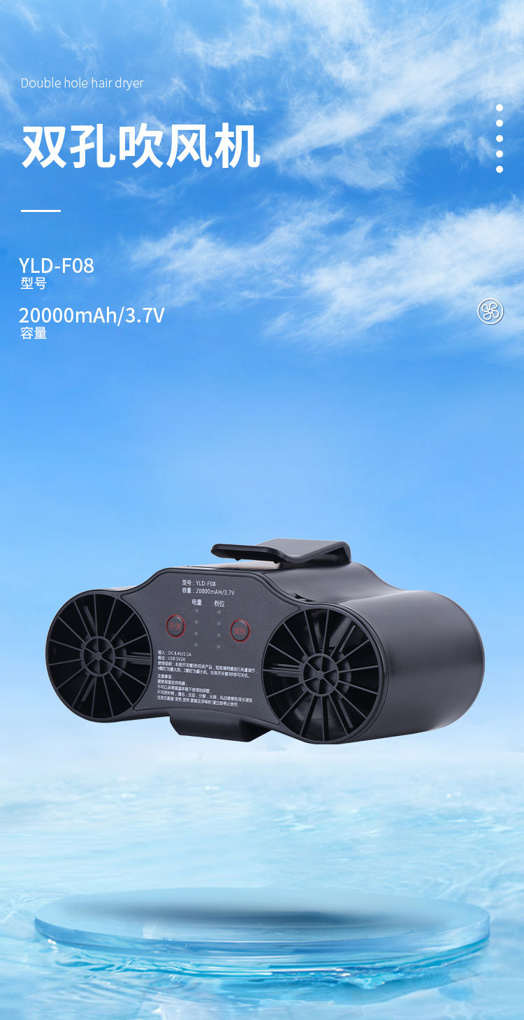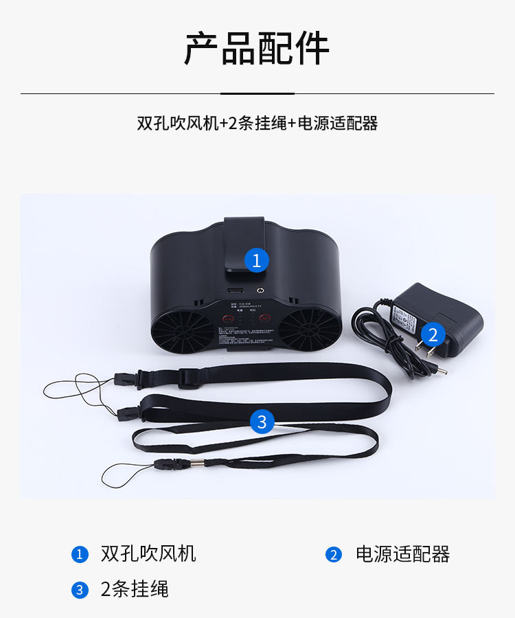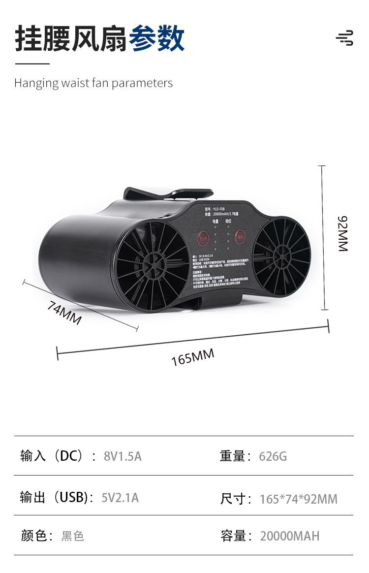 工厂直销双筒挂腰风扇2万毫安可充电随身风扇多功能户外工地降温