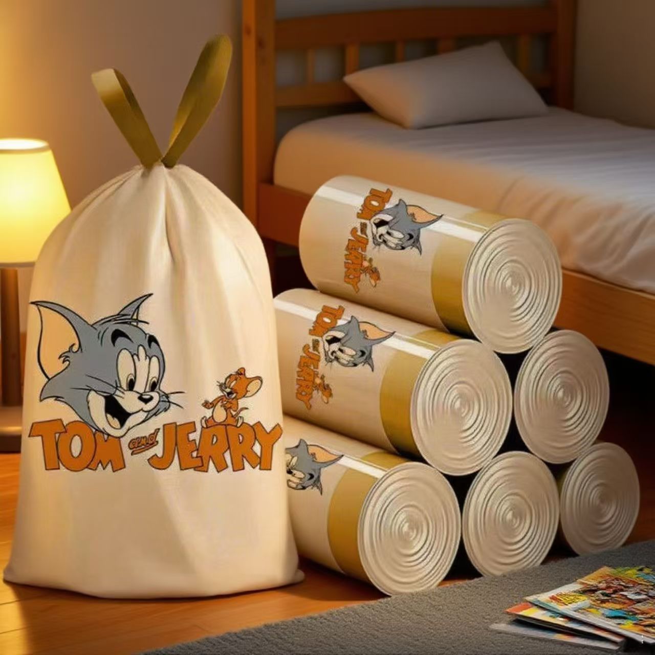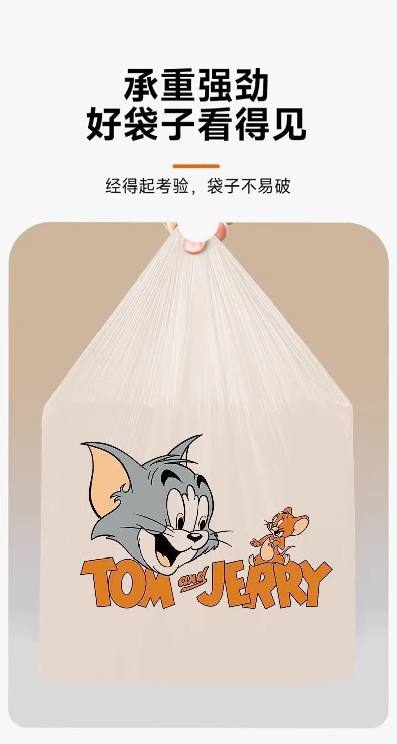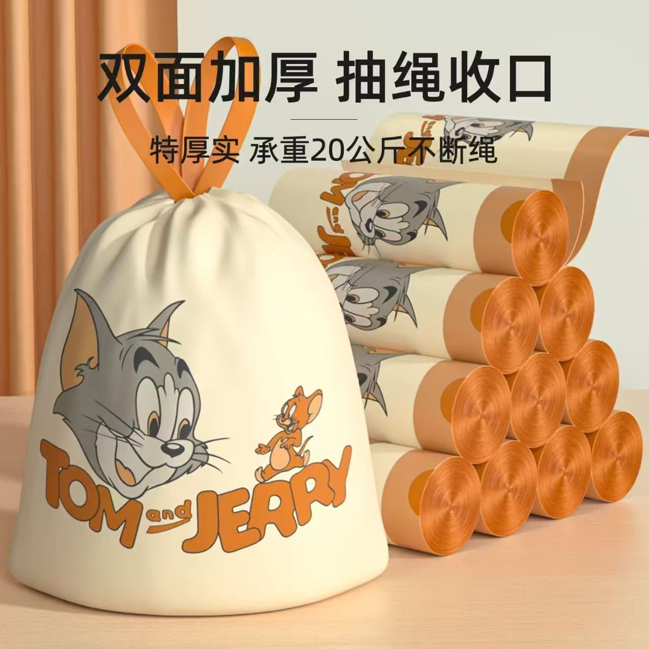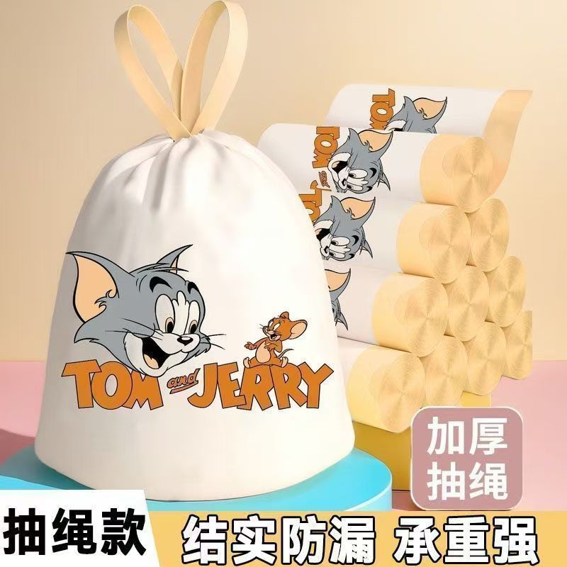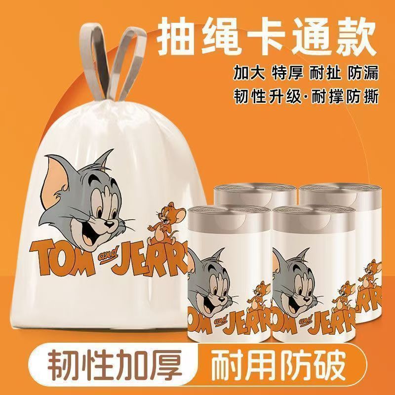 新款猫和老鼠印花家用大号收纳加厚抽绳手提式卧室厨房清洁垃圾袋