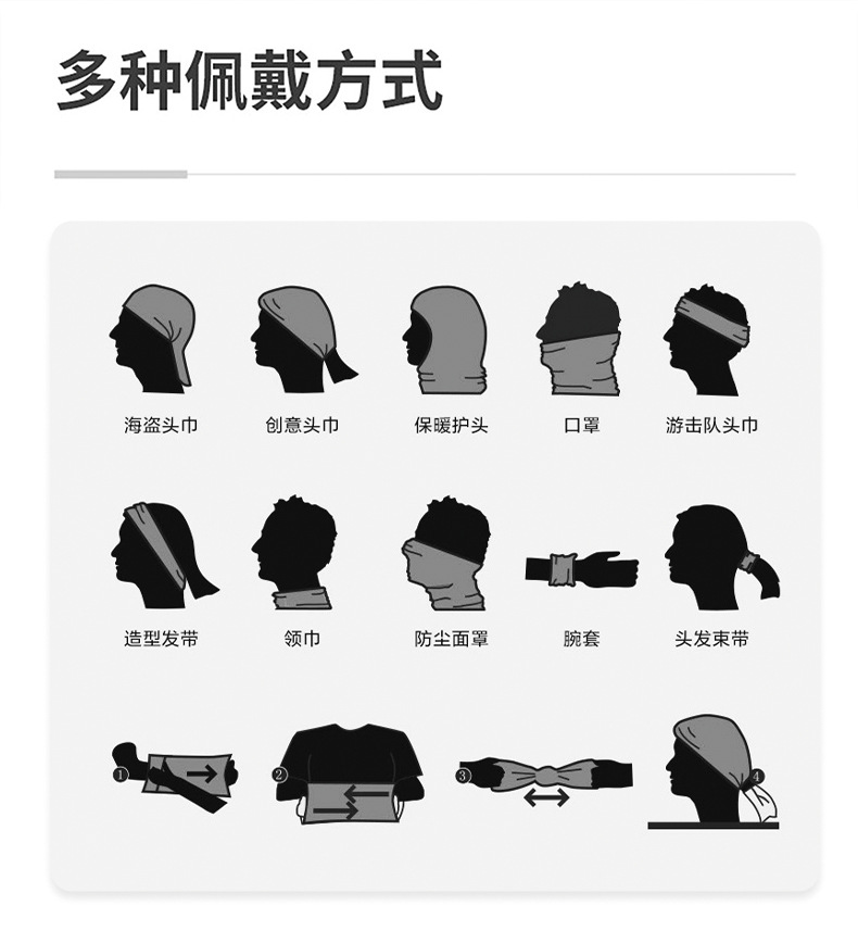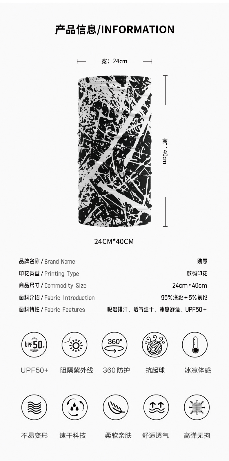 无缝冰丝凉感魔术头巾 户外骑行面罩UPF50+防晒围脖登山徒步头巾