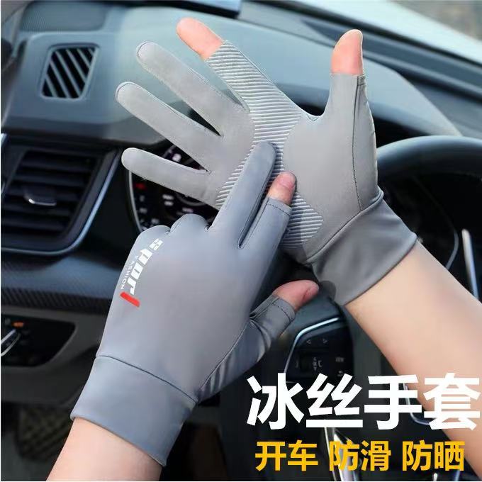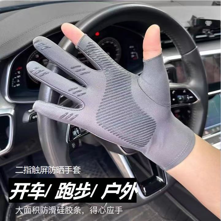 开车骑行钓鱼专用防晒手套漏二指冰丝透气防滑可触屏男女式手套