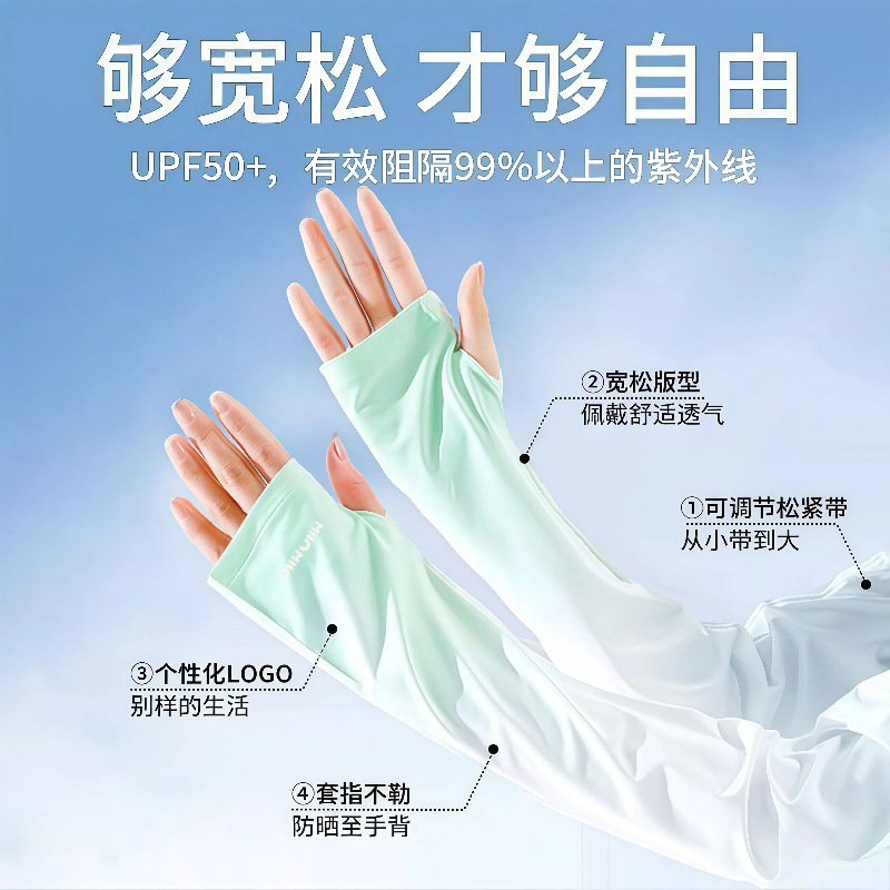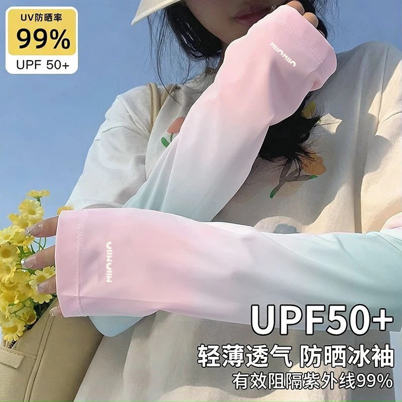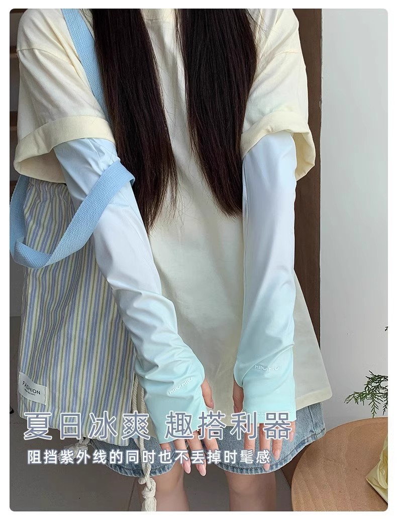 渐变冰丝防晒袖套女夏季防紫外线宽松透气户外骑车护臂薄护袖手套
