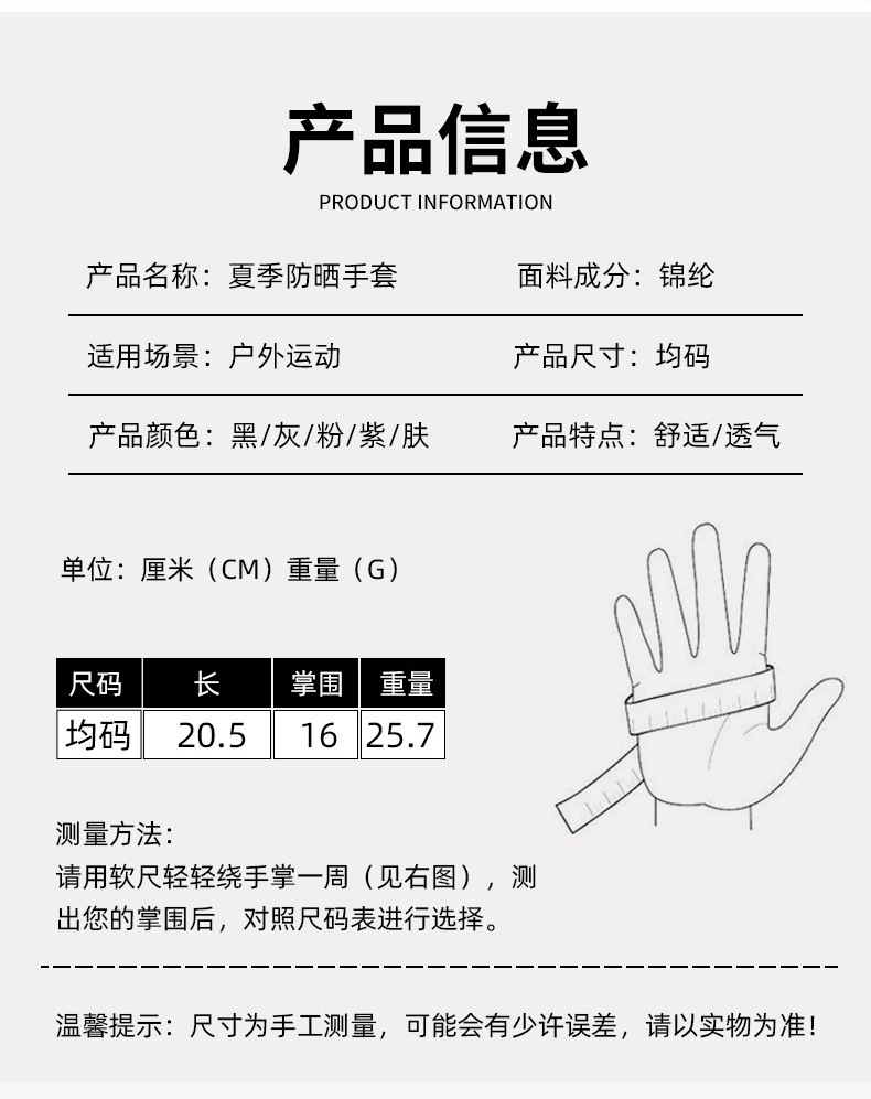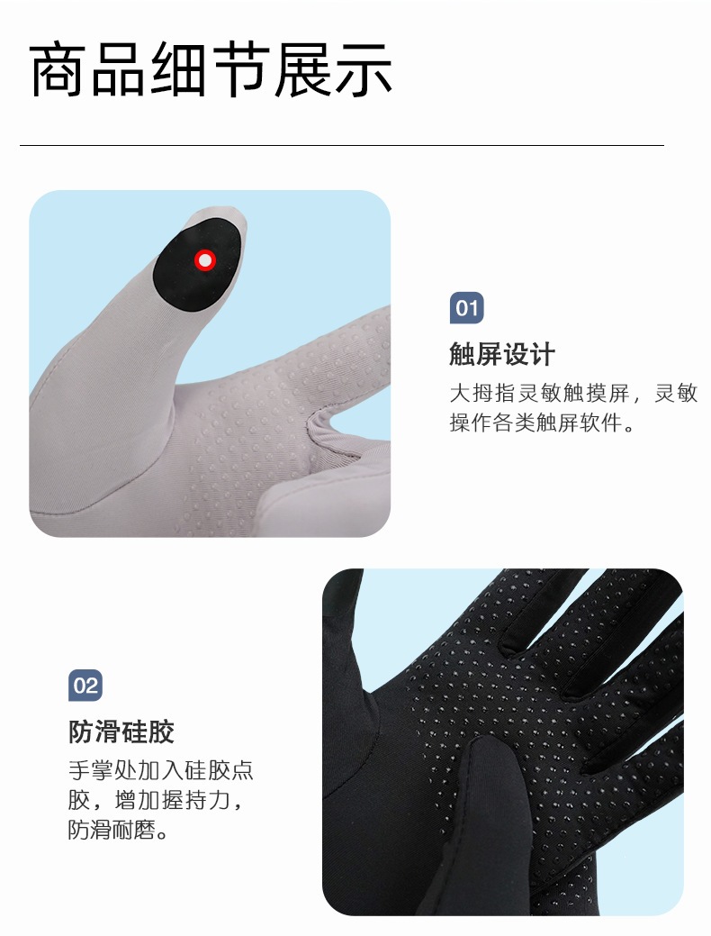 夏季防紫外线冰丝凉感防晒手套男女户外开车运动骑行防滑透气手套