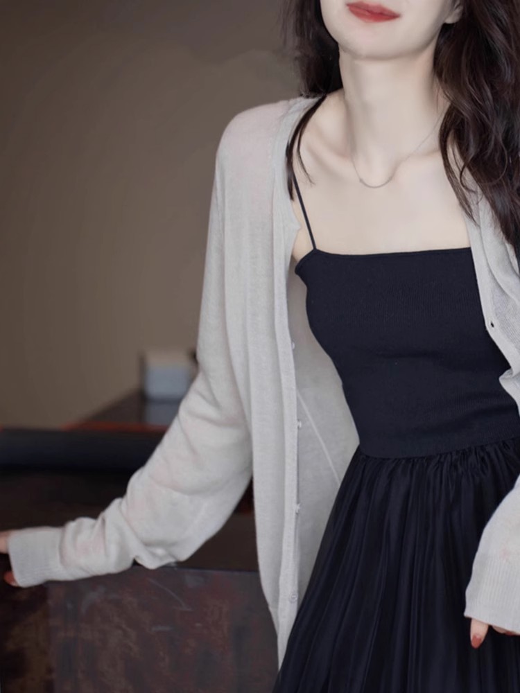 SS STUDIO 含真丝 满分亲肤感 芥米灰 空调 防晒针织衫