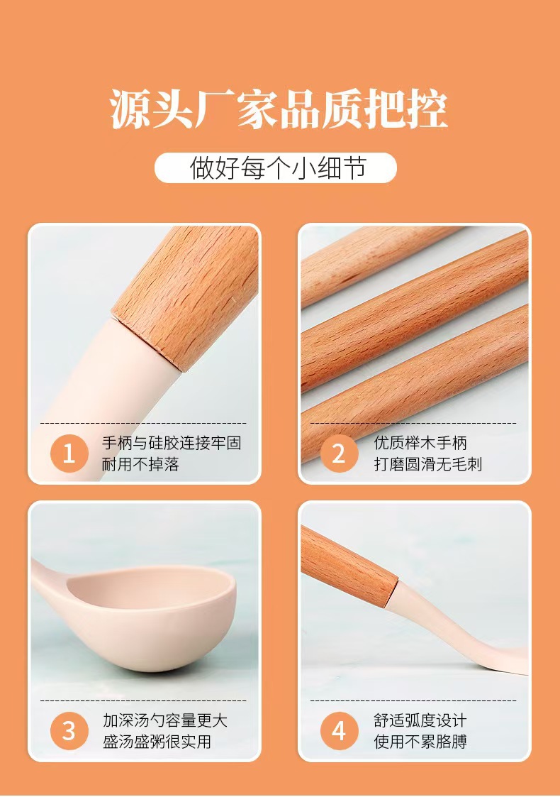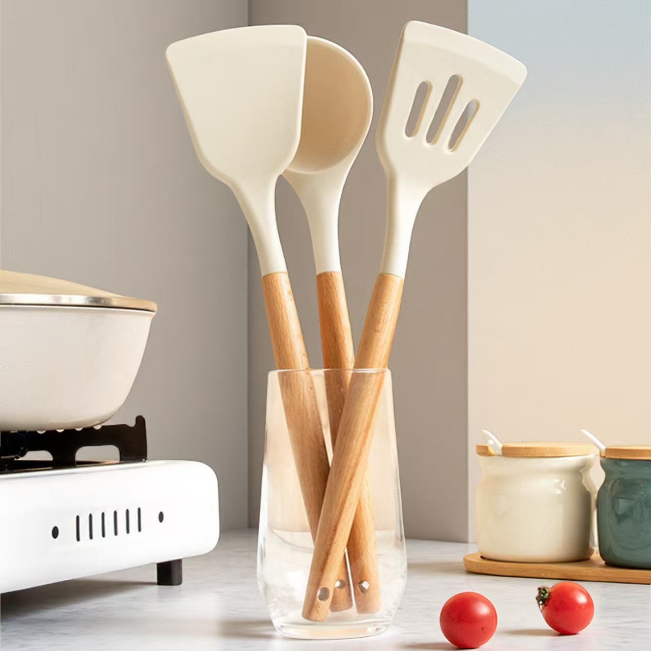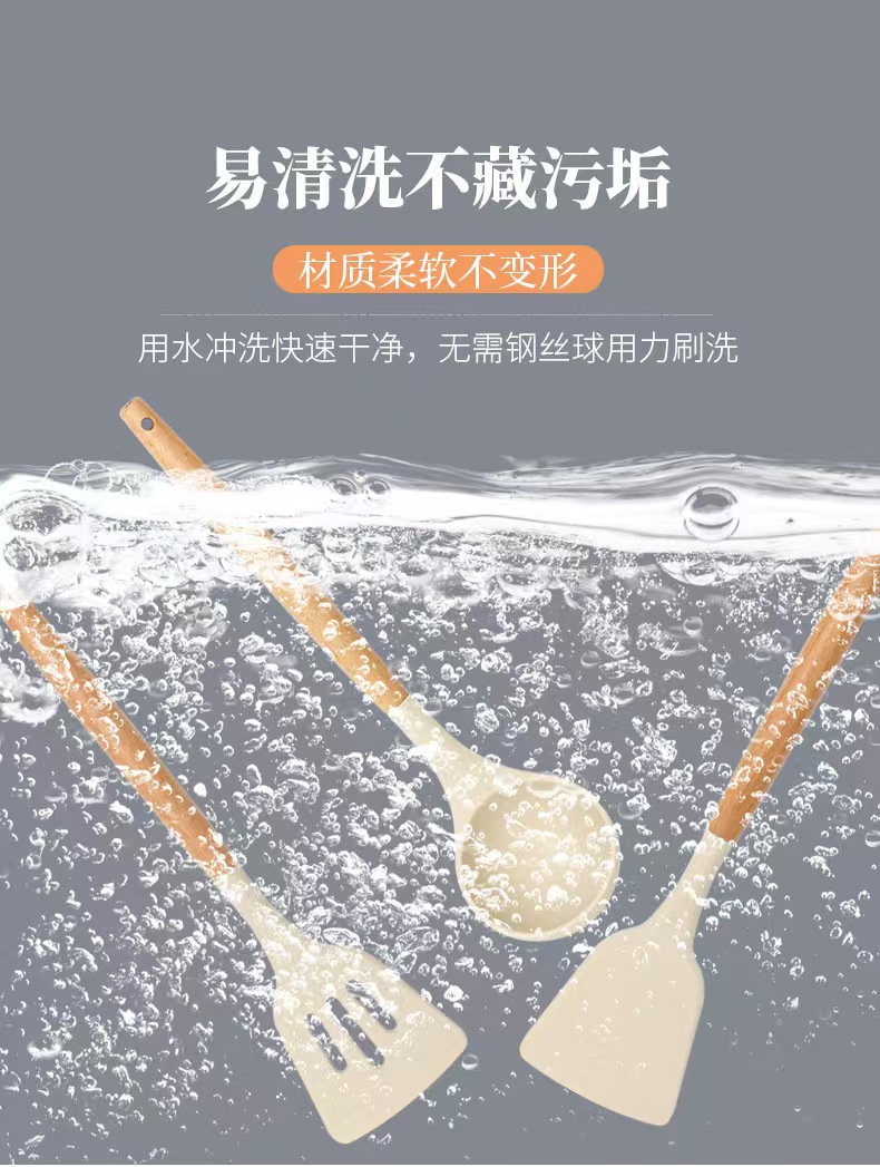 厨具木柄日用餐厨硅胶锅铲耐高温硅胶铲勺不粘锅烹厨房工具炒菜铲