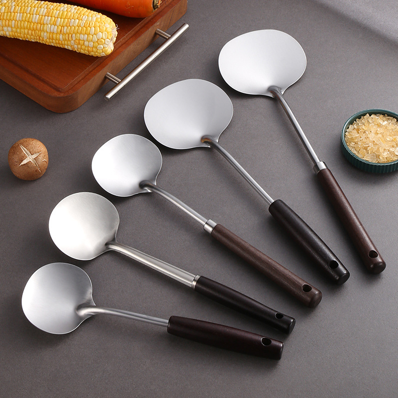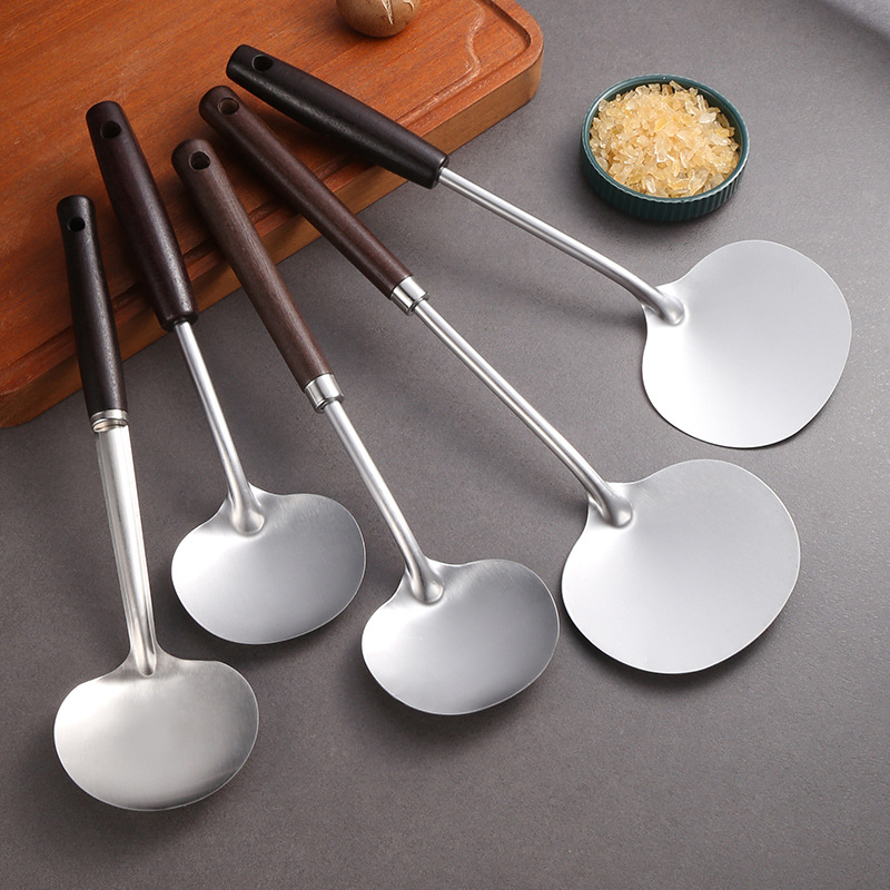 日用餐厨蘑菇锅铲不锈钢厨具加长防滑加厚耐高温木柄家用厨具套装