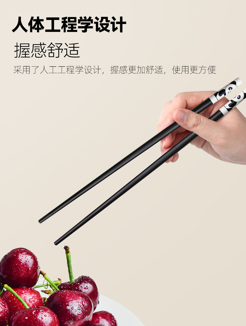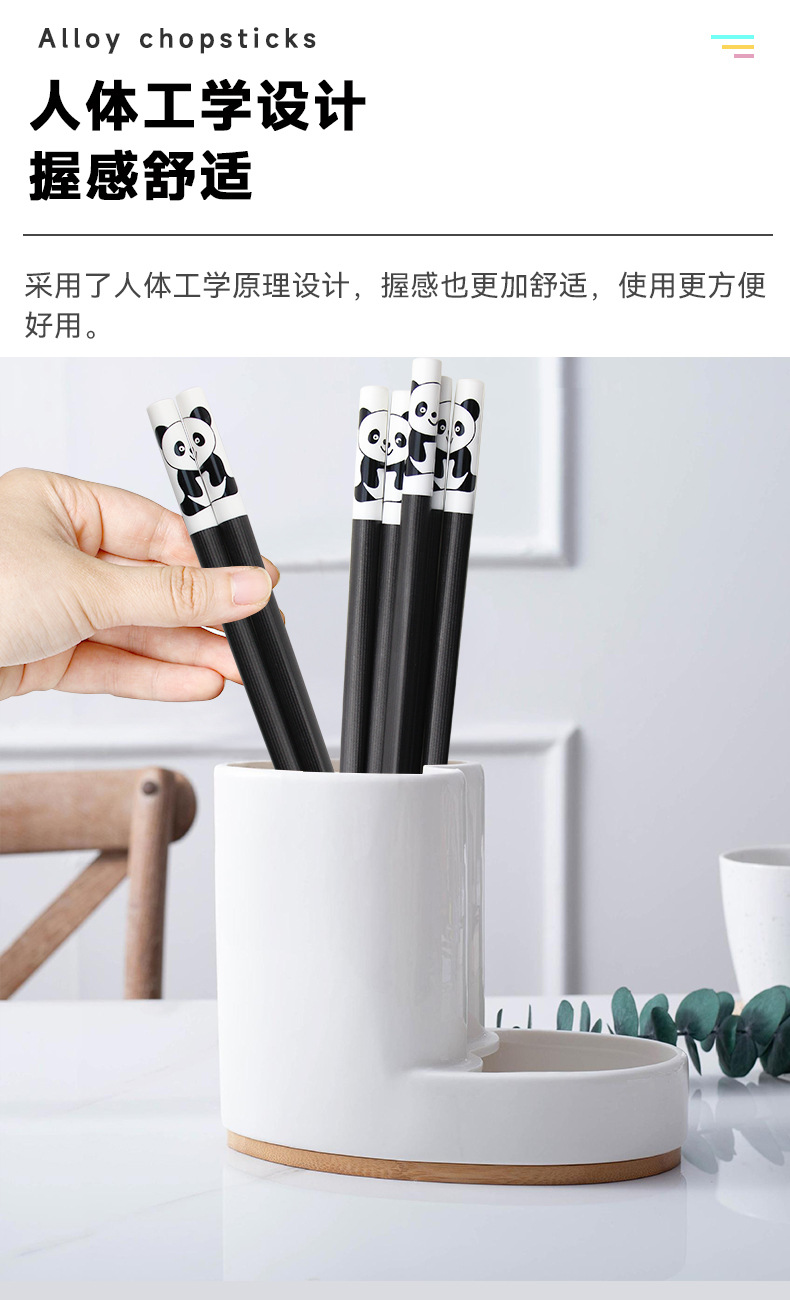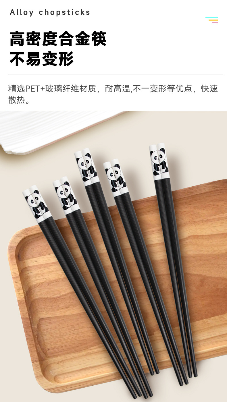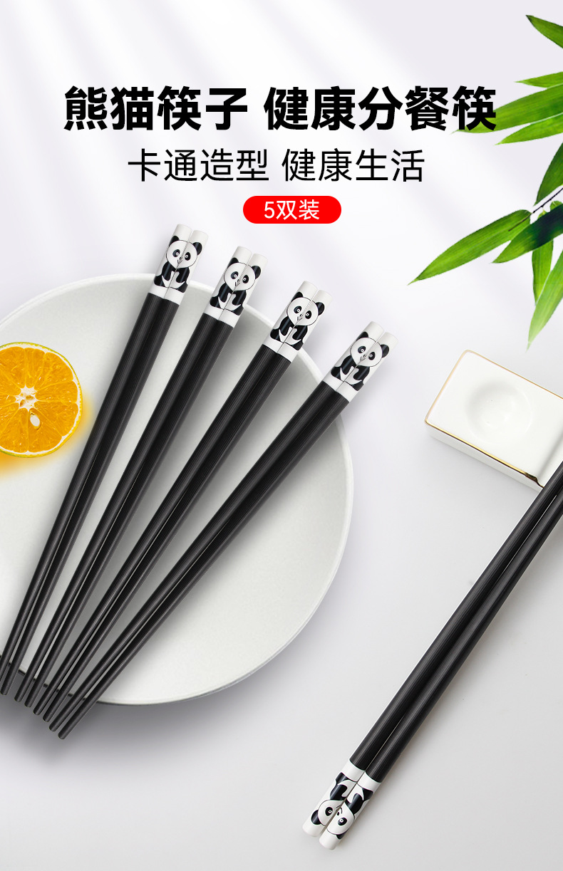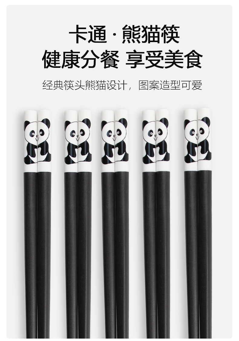 食福乐热销熊猫筷子高档家用日用餐厨可爱国宝合金筷防滑霉耐高温