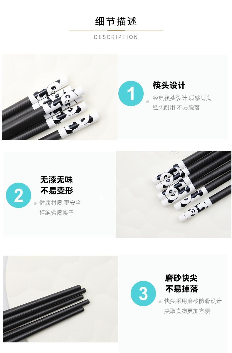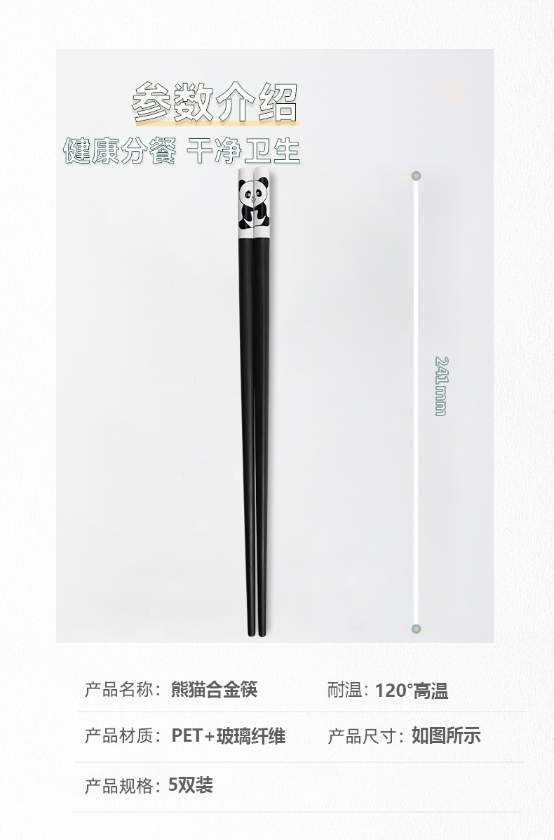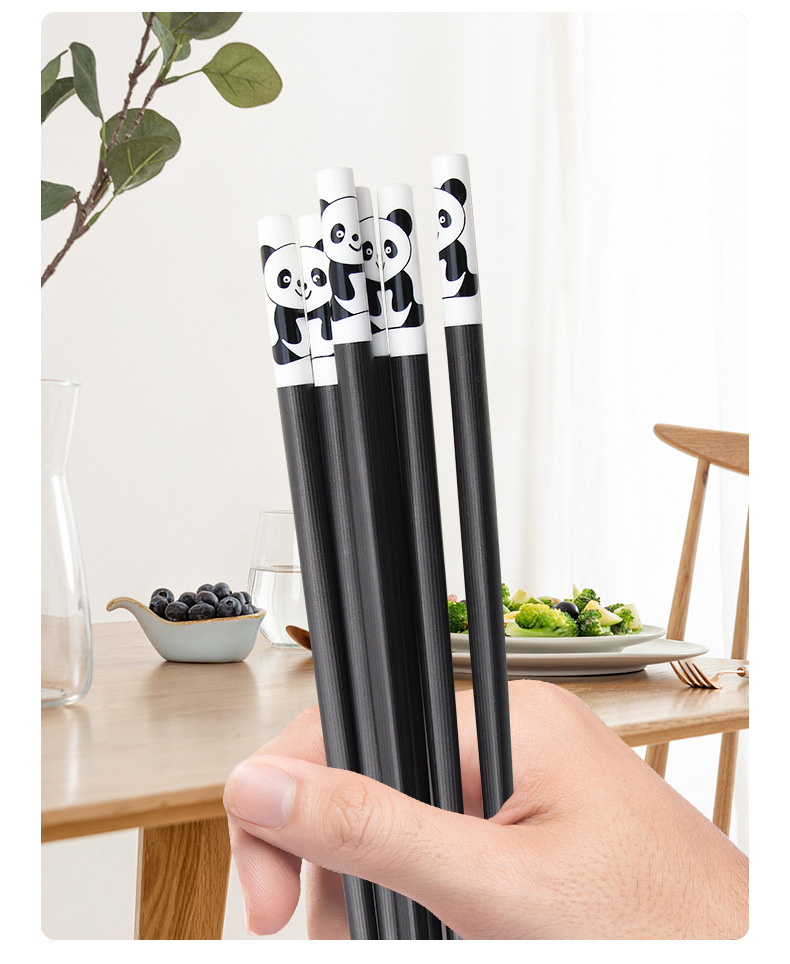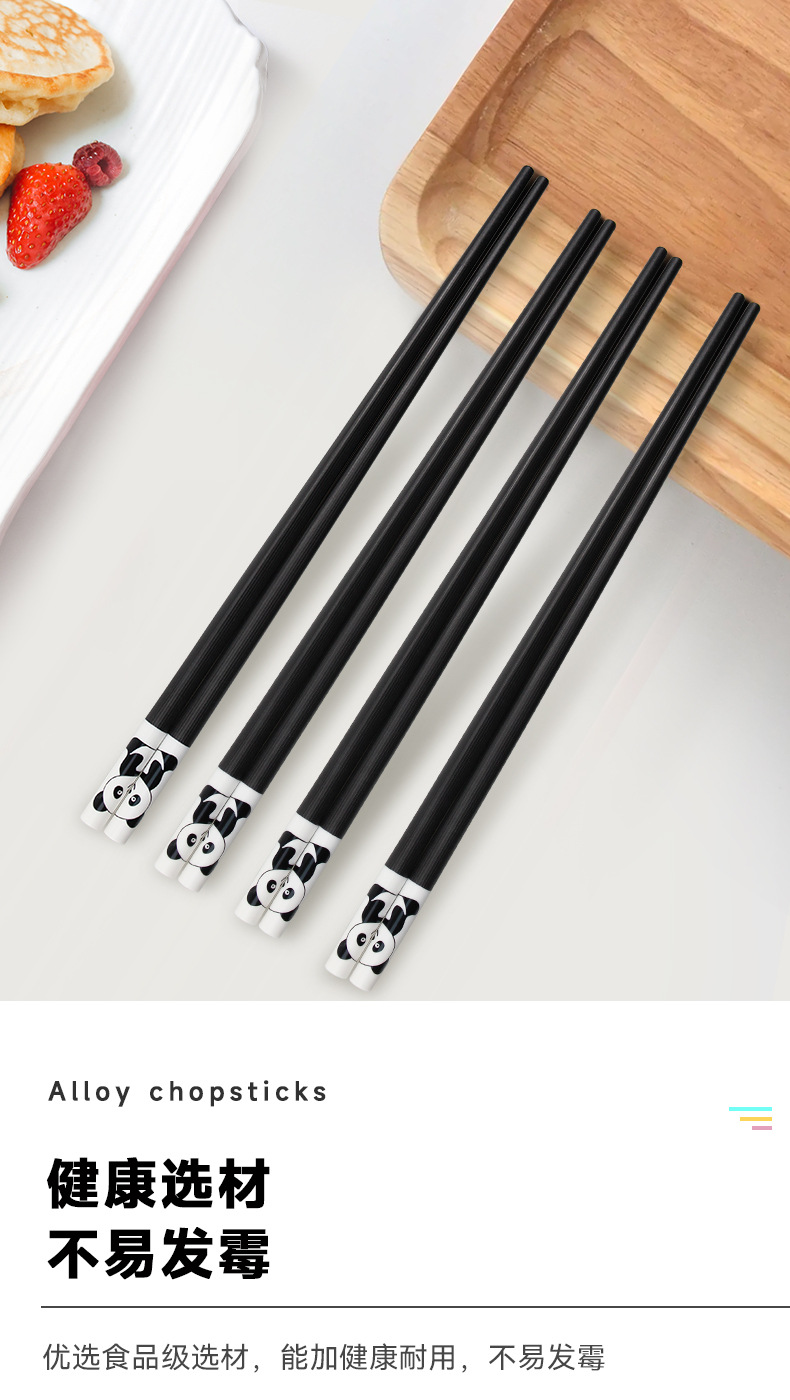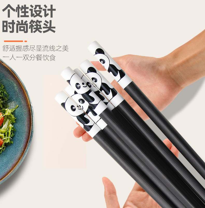 食福乐热销熊猫筷子高档家用日用餐厨可爱国宝合金筷防滑霉耐高温