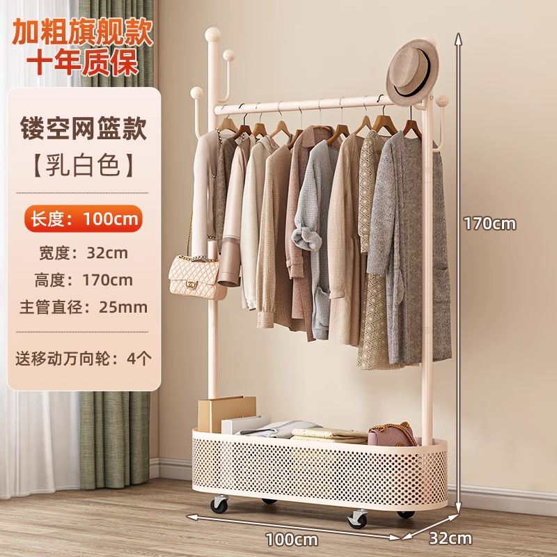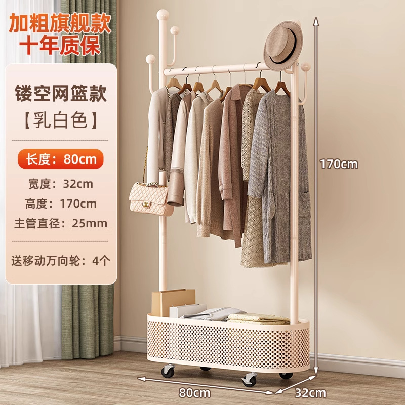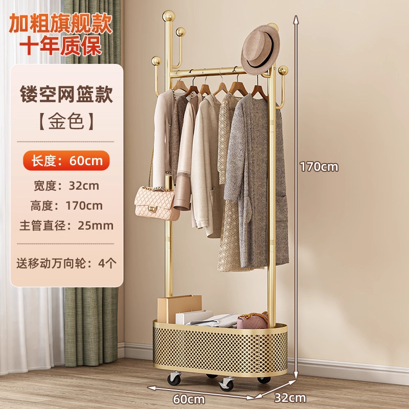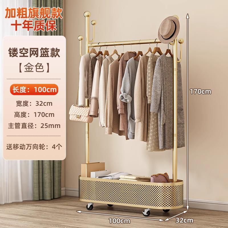 挂衣架卧室落地带轮衣帽架多功能可移动加厚加粗家用挂包包置物架