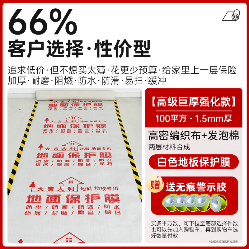 装修地面保护膜地砖瓷砖木地板防护垫加厚耐磨地膜家装一次性铺地